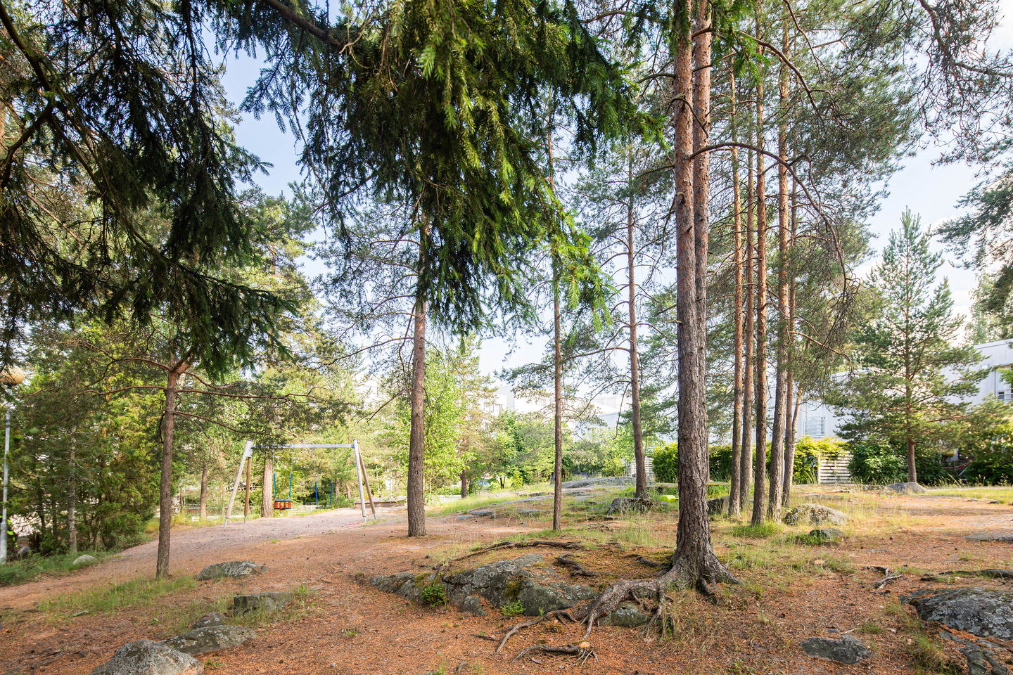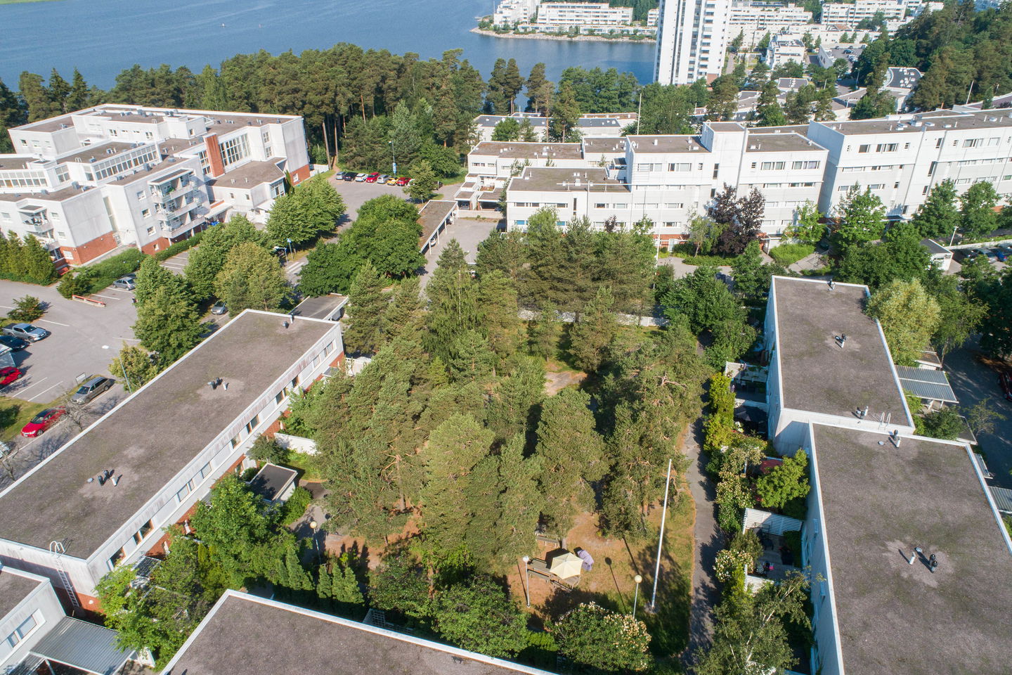 Lähellä on koulut, ruokakaupat ja kaksi metroasemaa. Hyvät kulkuyhteydet myös omalla autolla Länsiväylää pitkin. Kesällä merenlahden rantaraitit ja uimarannat kutsuvat viettämään aikaa ulkona.