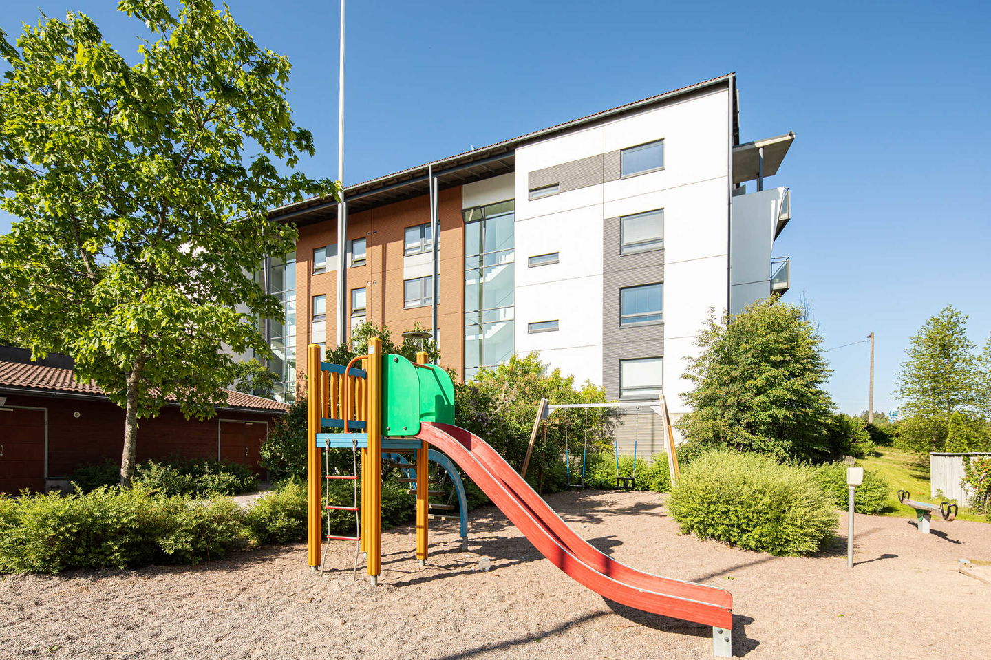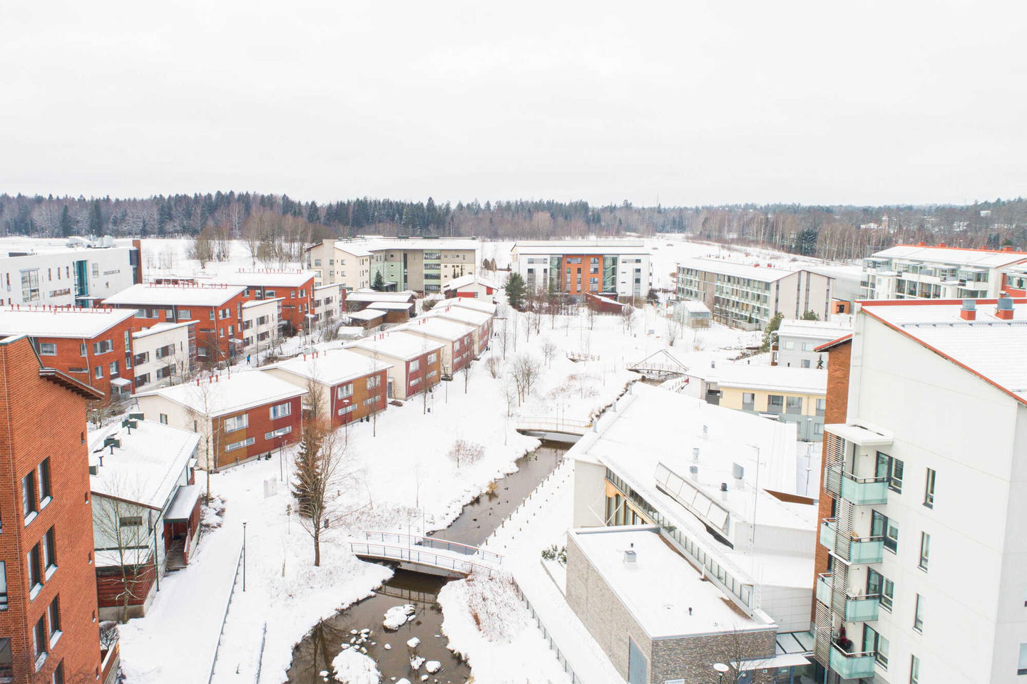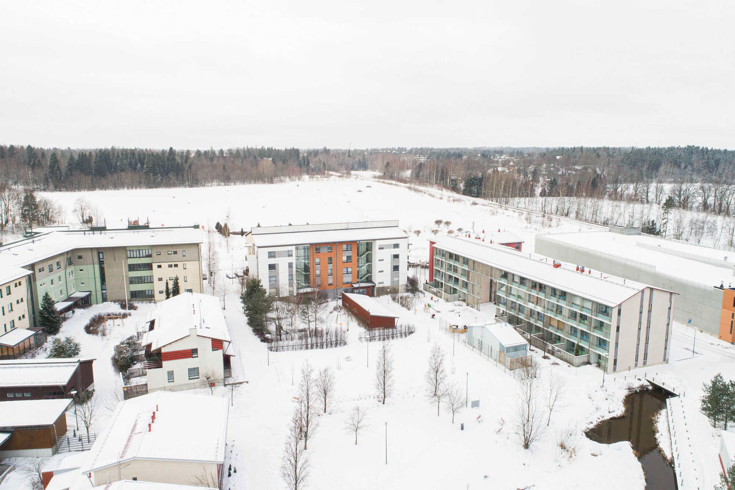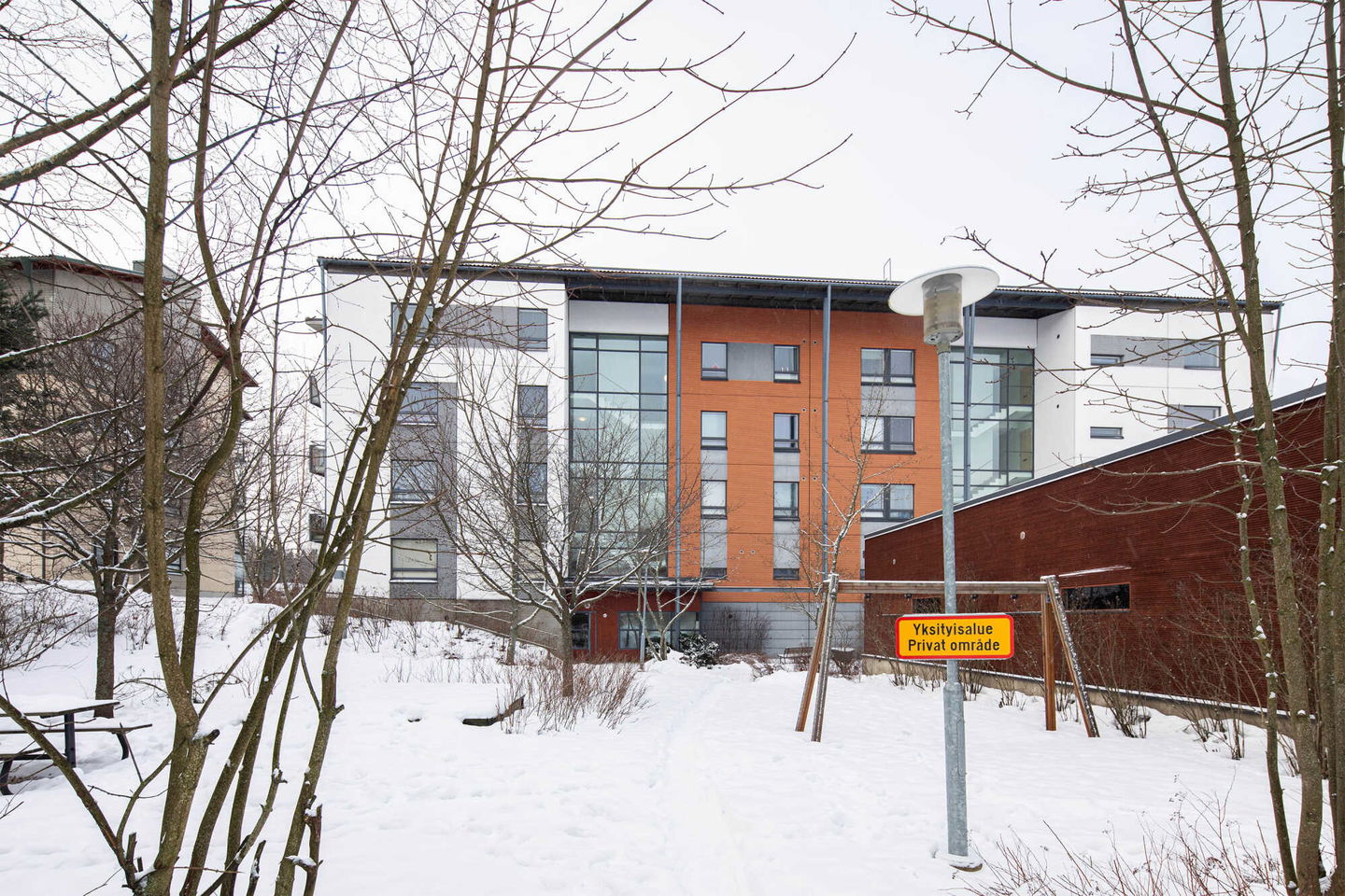 Puistojen välissä sijaitseva kerrostalokohde Leppävaarassa. Kaikissa asunnoissa on oma sauna ja osassa myös parveke.