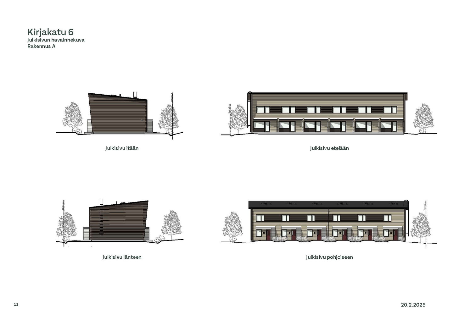 Asunnon sisäänkäynti sijaitsee Kirjakadun puolella. Alakerran keittiö ja olohuone ovat yhtenäistä, avointa tilaa, jonne on mukava kerääntyä viettämään aikaa perheen kesken. Olohuoneesta on kulku asunnon aurinkoiselle, etelään päin avautuvalle terassille.