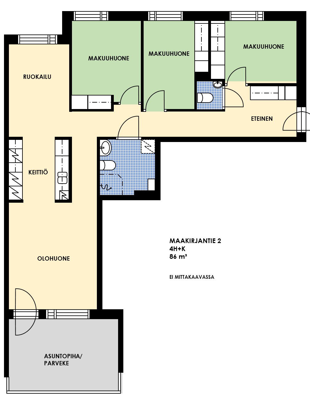 Makuuhuone on tilava ja valoisa, tarjoten oivalliset puitteet rentoutumiseen ja levolliseen yöuneen.