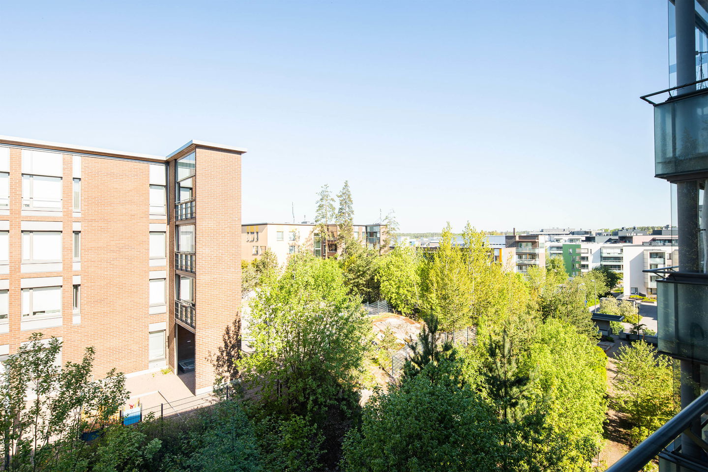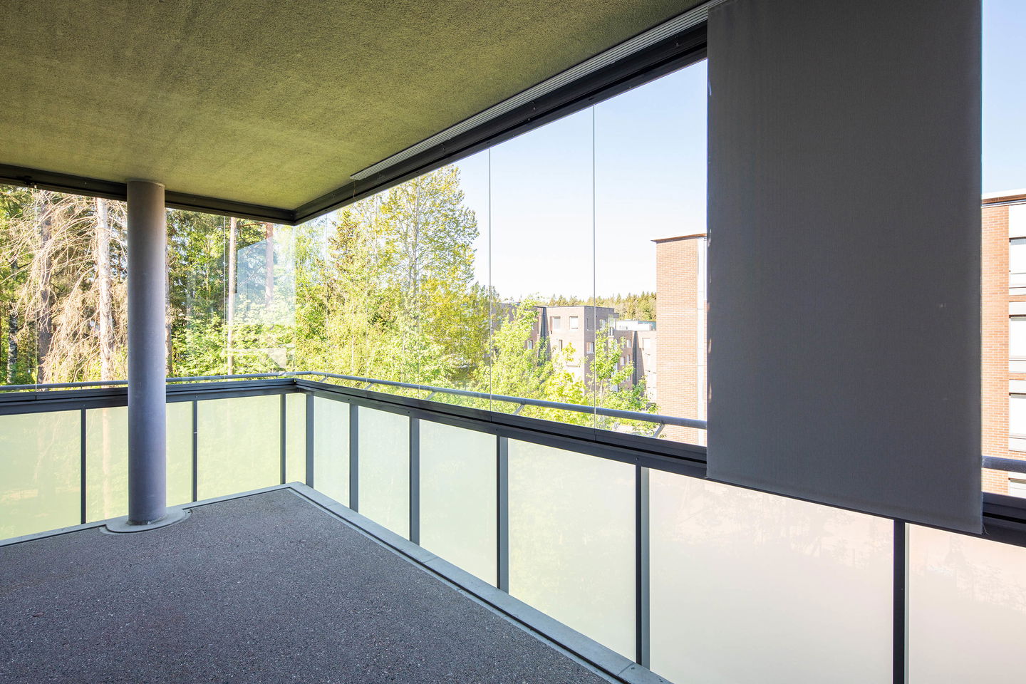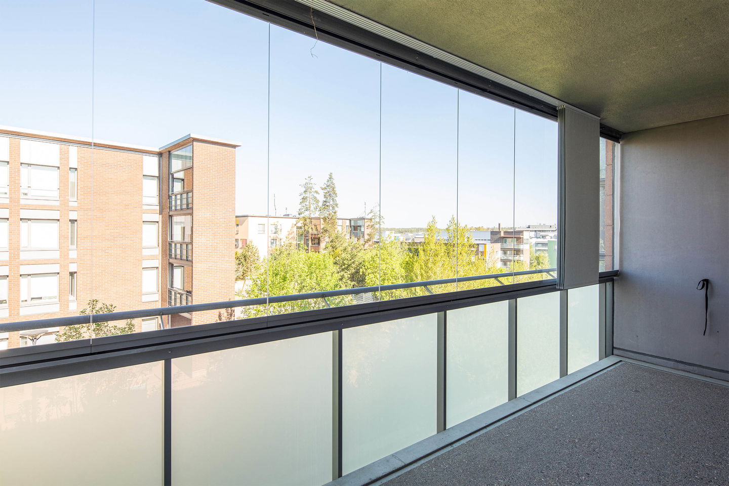Olohuoneesta on käynti lasitetulle parvekkeelle, joka tuo lisätilaa ja mahdollisuuden nauttia ulkoilmasta säällä kuin säällä. Kylpyhuoneessa on tilaa myös pyykinpesukoneelle.