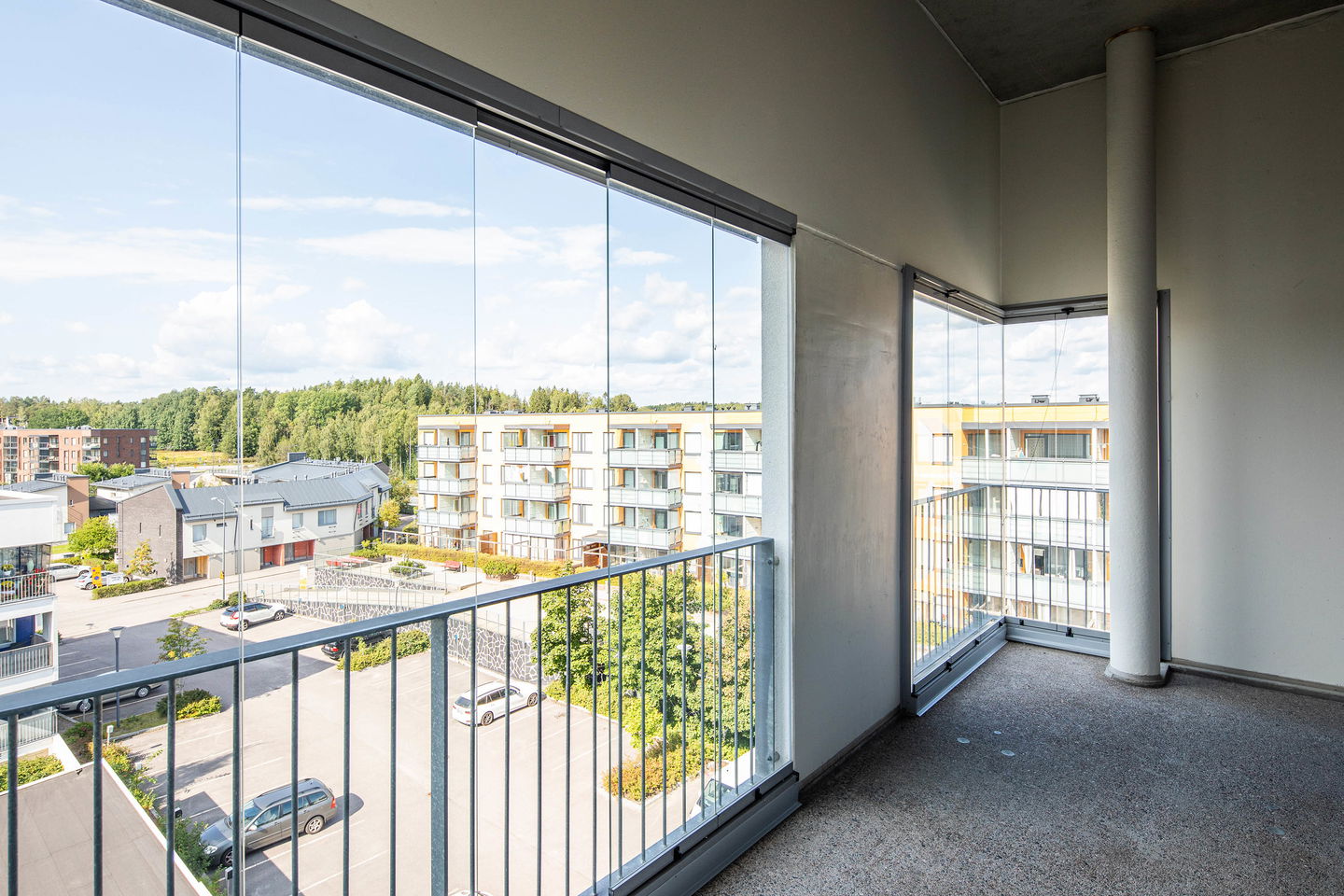 Kivana lisänä on koko huoneiston levyinen lasitettu parveke, jossa voit nauttia aamukahvisi tai rentoutua ilta-auringossa ympäri vuoden. Taloyhtiössä on lisäksi asukkaiden käytössä sauna.