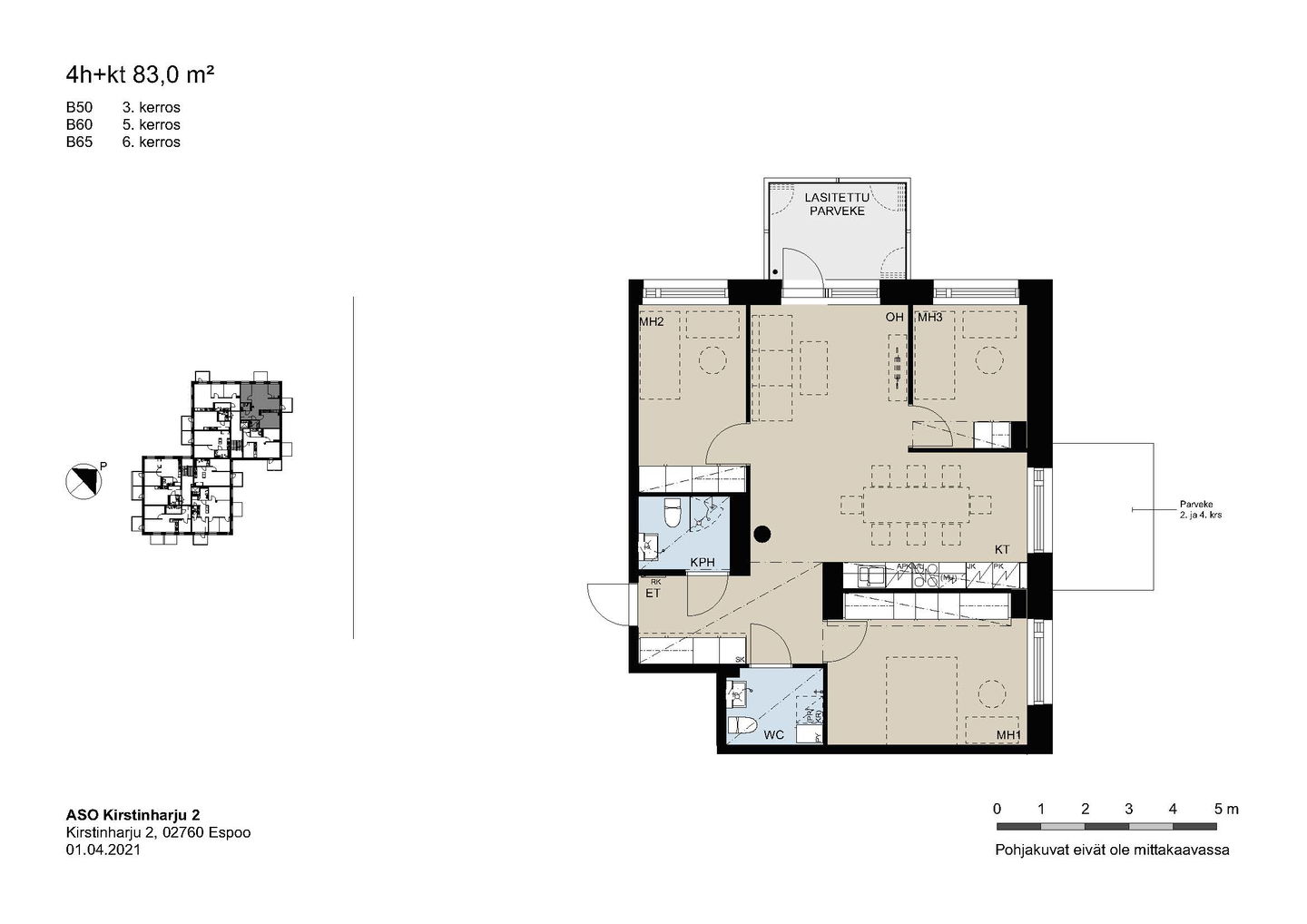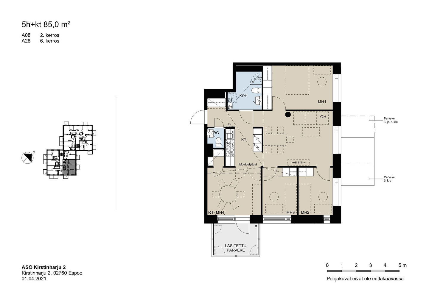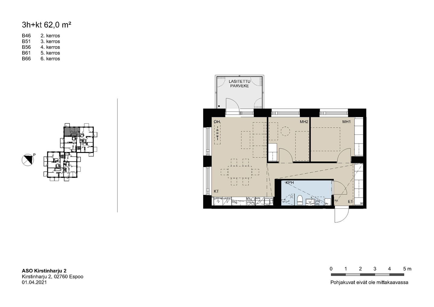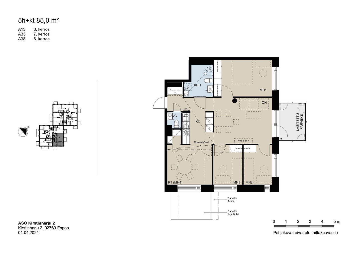 Kaikissa asunnoissa on lasitettu parveke, vakiona astianpesukone, keraaminen liesi ja sälekaihtimet.