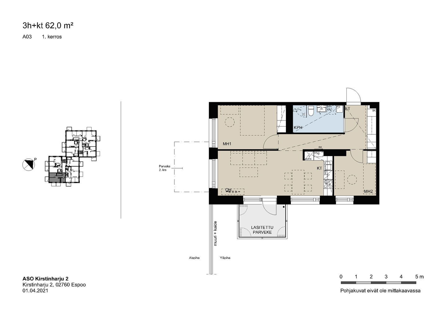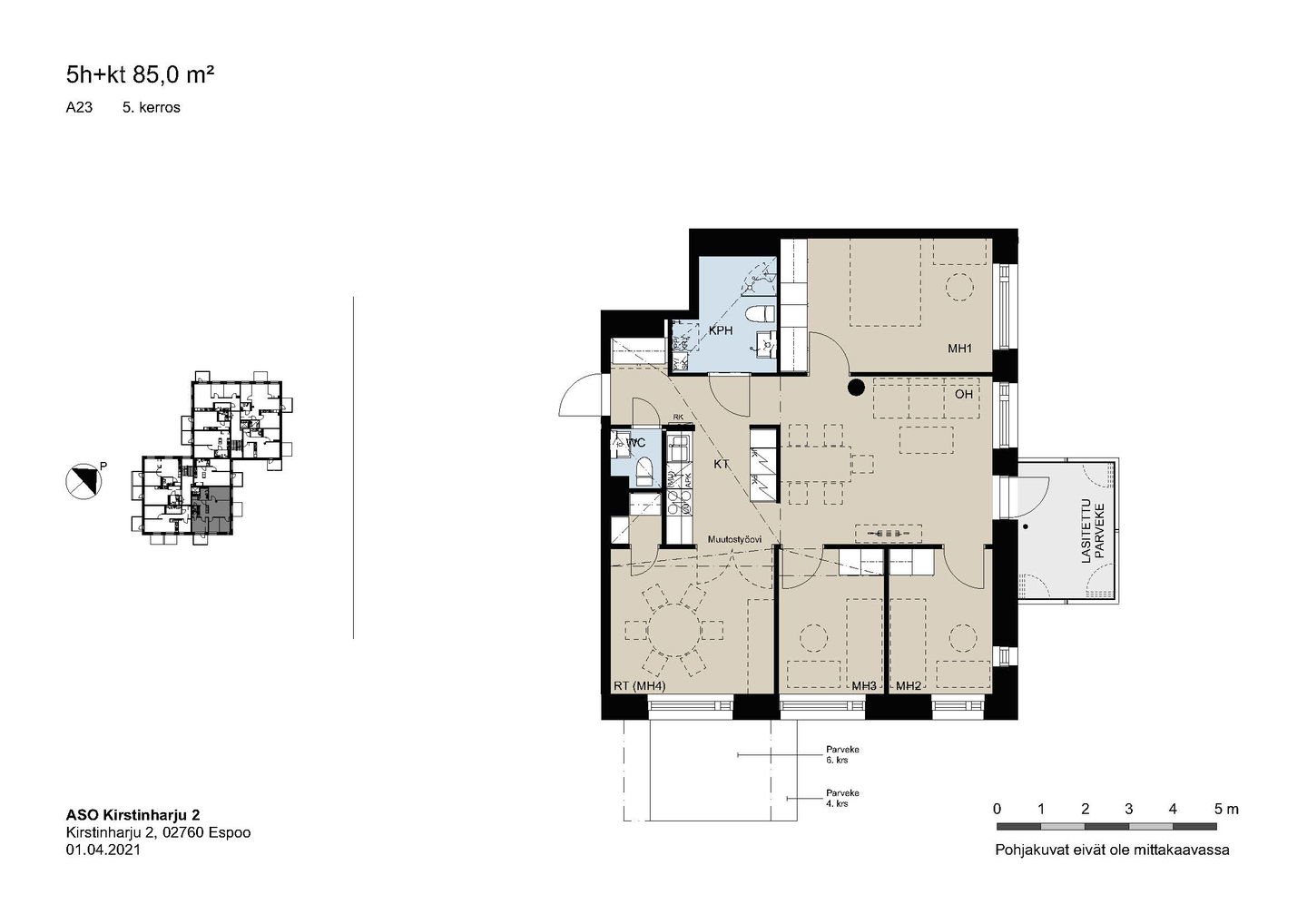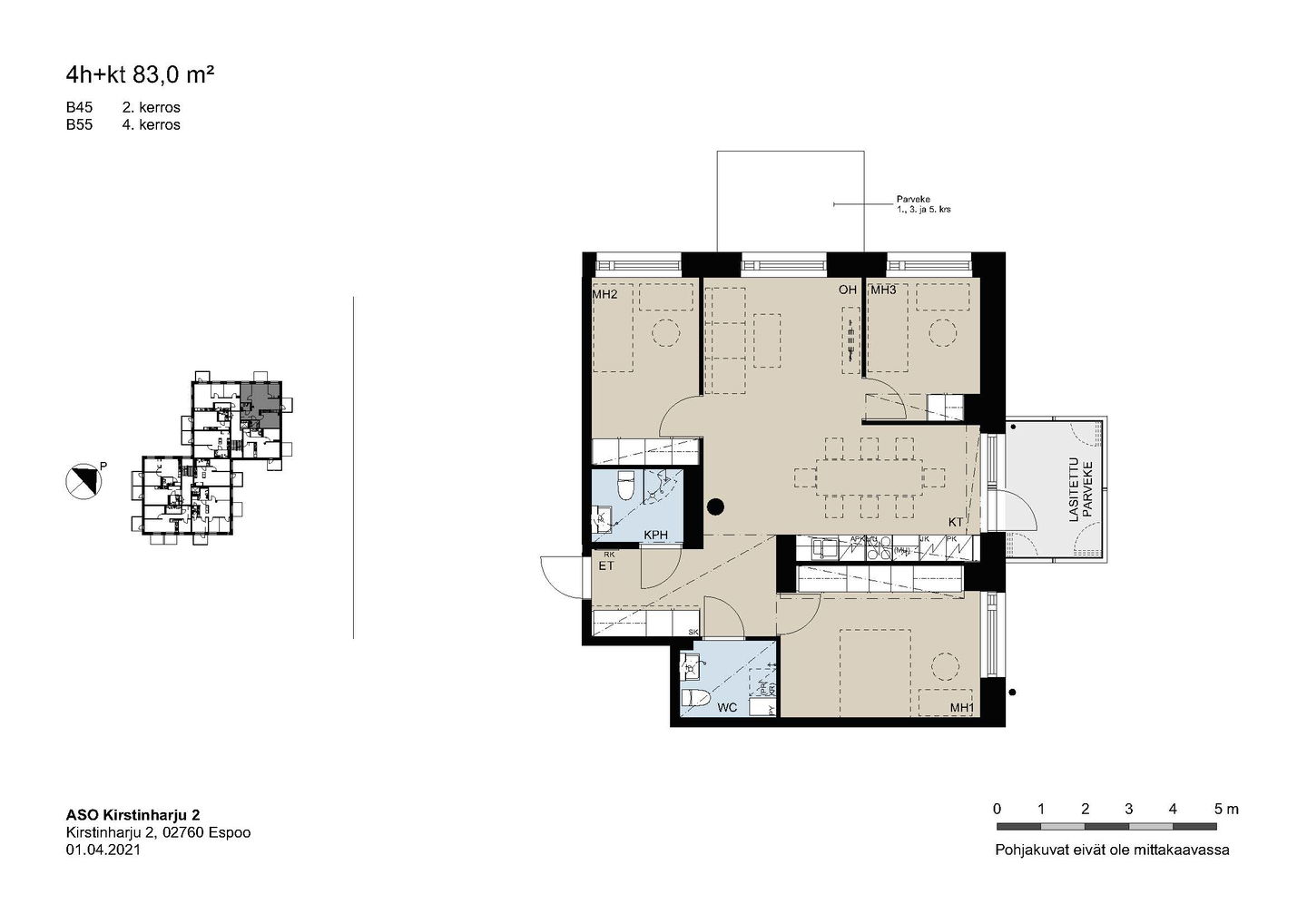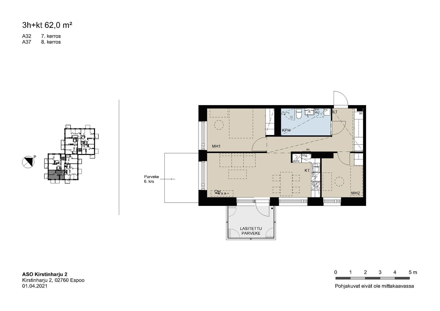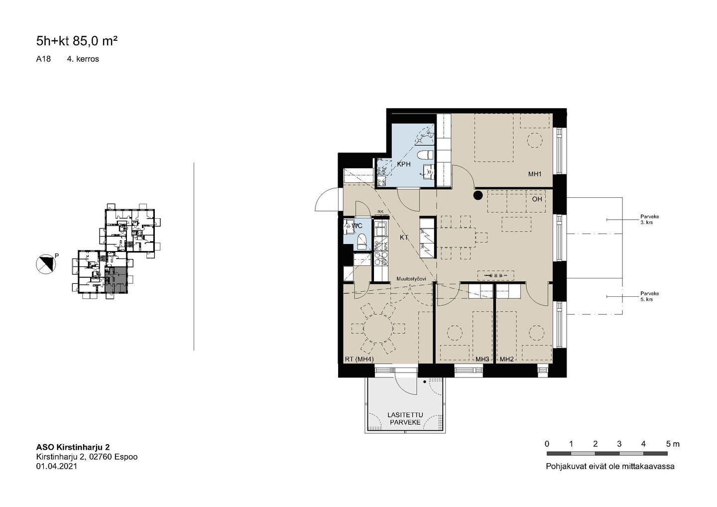 Kaikissa asunnoissa on lasitettu parveke, vakiona astianpesukone, keraaminen liesi ja sälekaihtimet.