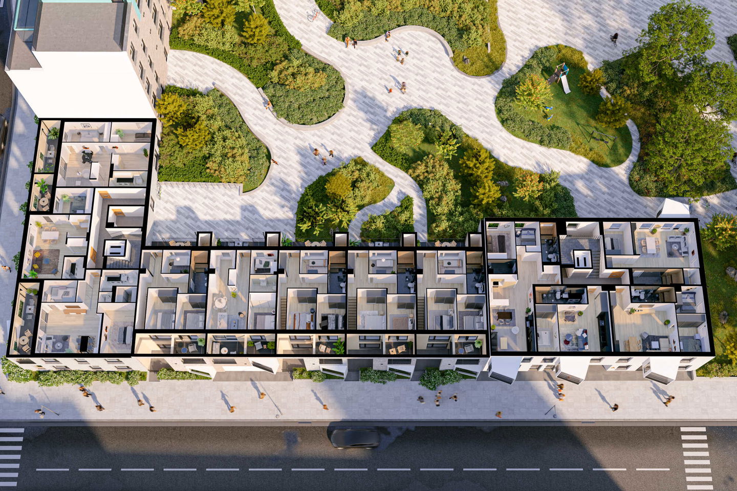 Kaksioista tilaviin, viiden huoneen asuntoihin vaihtelevissa kodeissa on useita erilaisia asuntopohjia, jotka inspiroivat kokenuttakin sisustajaa. Kaikissa asunnoissa on lasitetut parvekkeet tai terassit ja keittiön varusteluun sisältyy astianpesukone. Kodit kylpevät luonnonvalossa ja ylimmistä kerroksista löytyvät tämän kohteen helmet: kaksikerroksiset parviasunnot, joissa on koko huoneiston levyinen parveke sekä kattoterassi. Osassa koteja on oma sauna ja ikkuna myös kylpyhuoneessa, sekä muutamissa pihatason kodeissa istutusten ympäröimät lasitetut terassit.