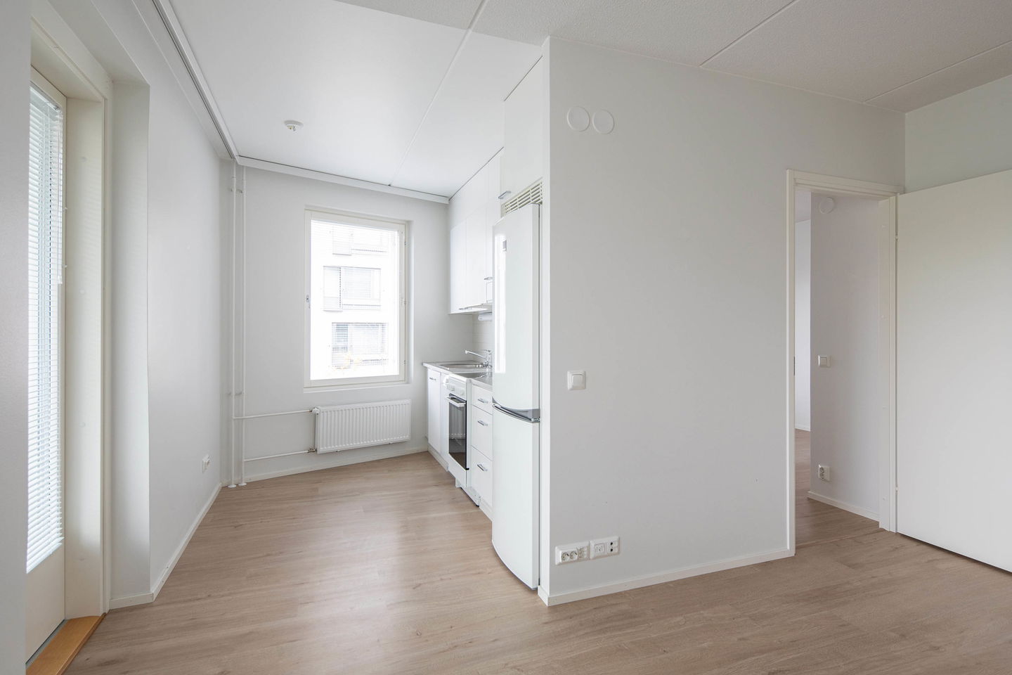 Kruunuvuorenrantaan toukokuussa 2019 valmistunut asumisoikeuskohde. Selkeäpohjainen kaksio vaaleilla pinnoilla ja isolla lasitetulla parvekkeella 2.kerroksessa.