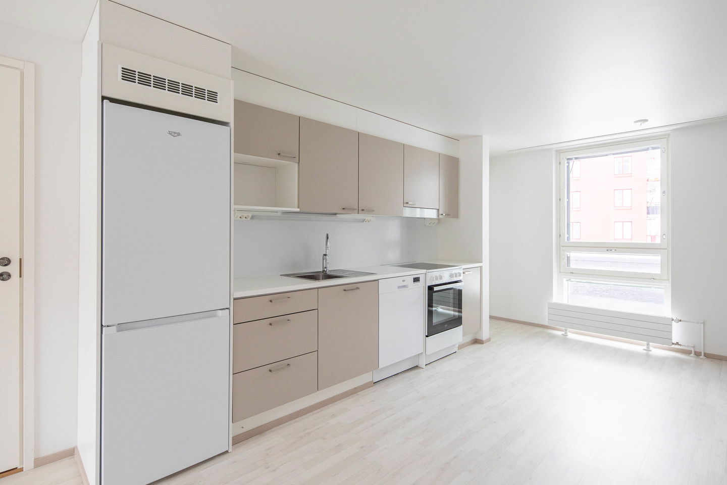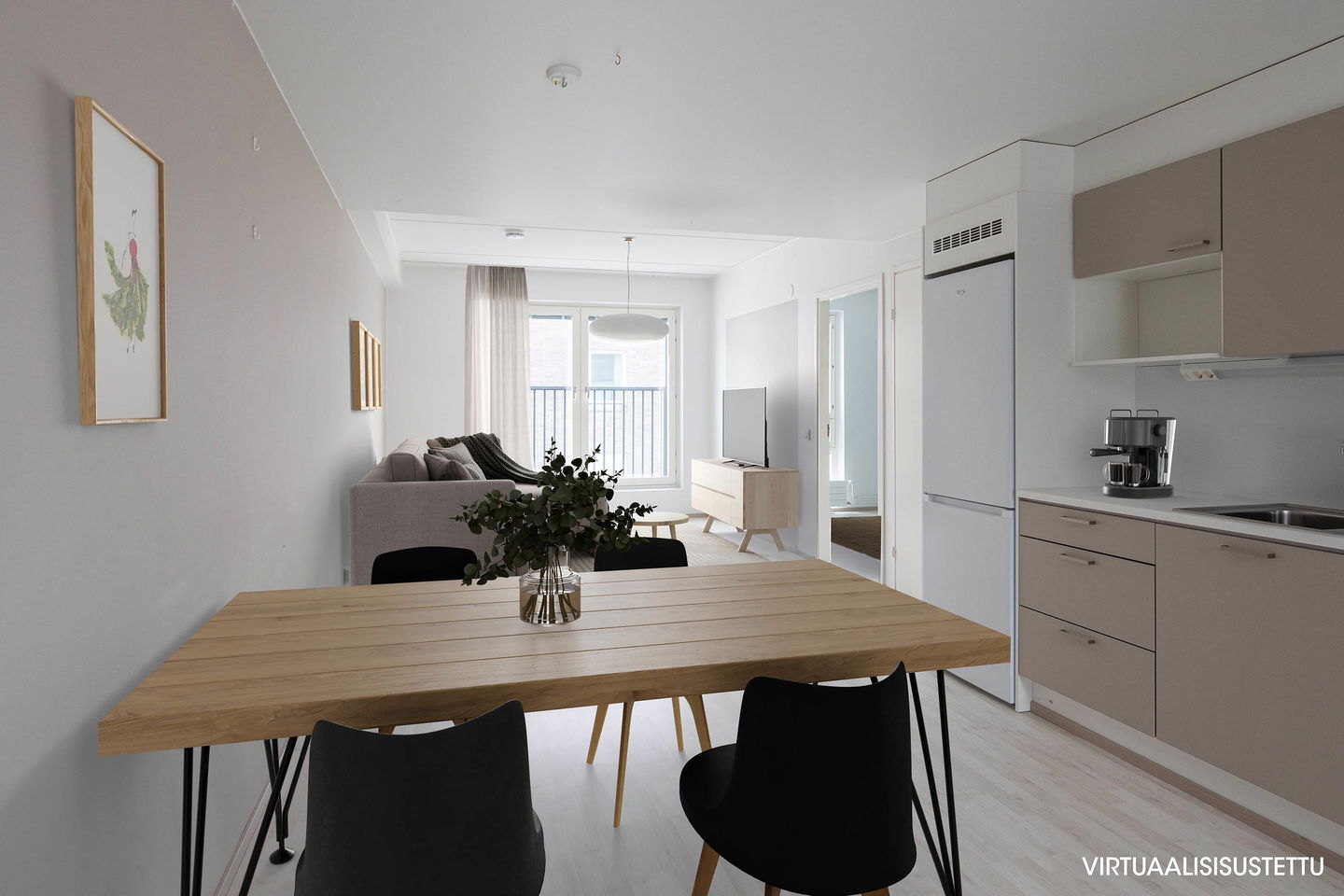 Avoin olohuone-keittiöratkaisu luo avaruutta ja mahdollistaa mukavan yhdessäolon. Keittiö on moderni ja hyvin varusteltu, mikä tekee ruoanlaitosta vaivatonta. Asunnon ehdoton helmi on tunnelmallinen ranskalainen parveke, joka tuo asuntoon ilmavuutta ja lisää viihtyisyyttä.