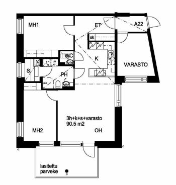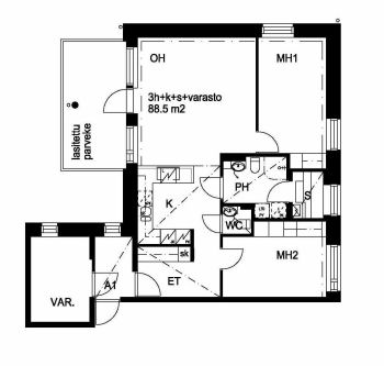 Huoneistot ja pohjakuvat: Teerisuontie 5, Piharakennus, Kerrostalo