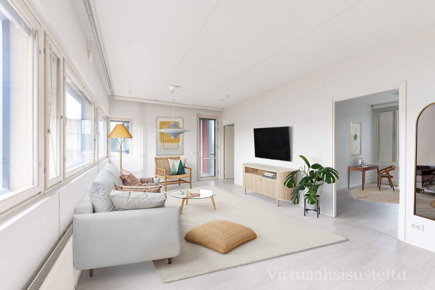 Viidennen kerroksen kolmio! Asunnossa oma sauna ja erillinen keittokomero. Molemmissa makuuhuoneissa reilusti kaapistoja. Jätä hakemus asuntoon osoitteessa asuntosaatio.fi.