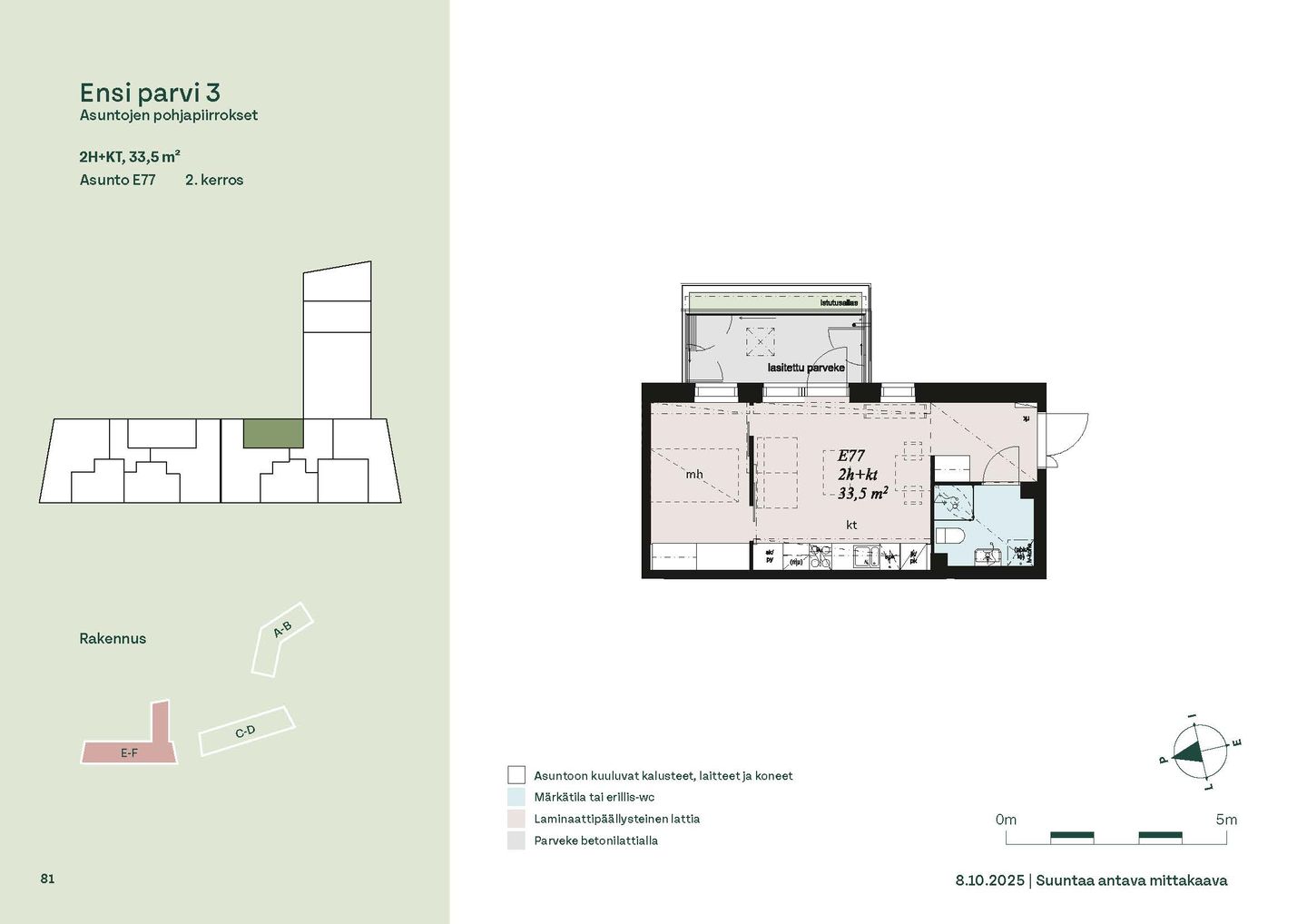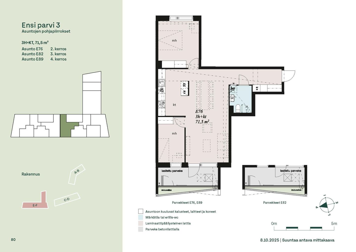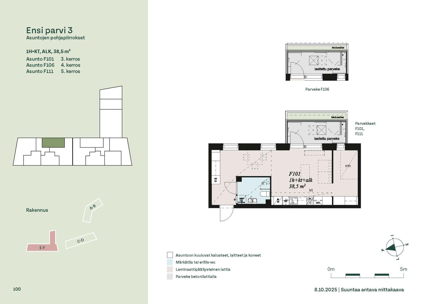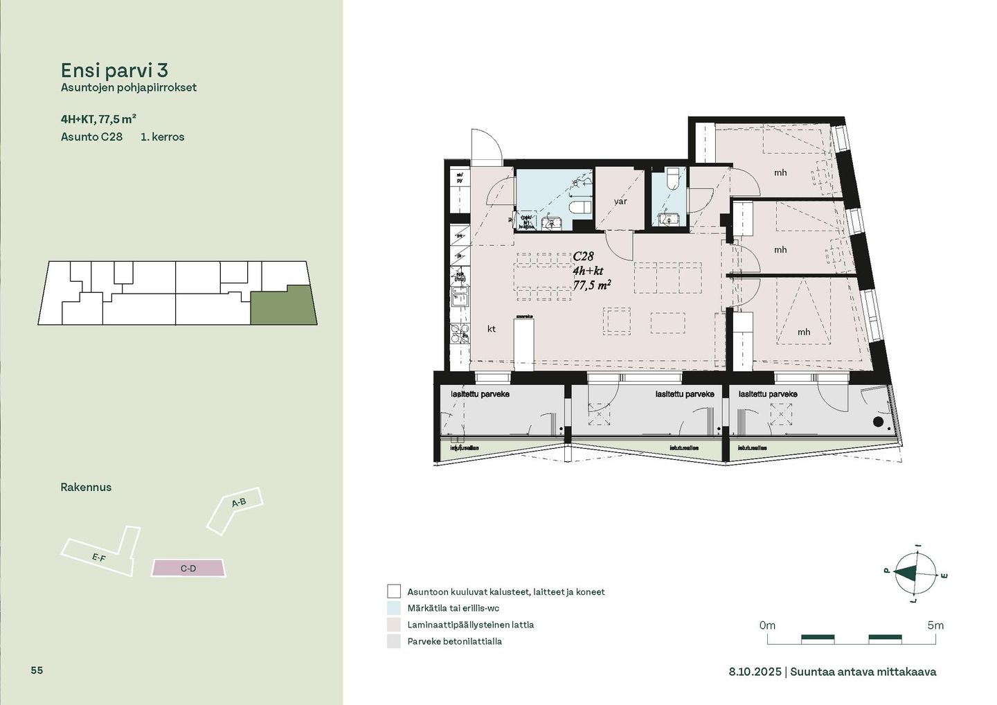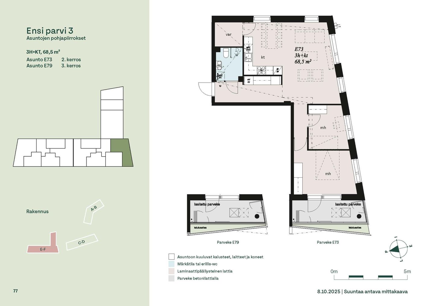 Ensi parven upeat, valoisat kodit tarjoavat rauhallisen asuinympäristön kaupungin kupeessa, arvostettujen luontokohteiden äärellä. Kolmeen 5-6 -kerroksiseen taloon valmistuu yhteensä 115 hyvin suunniteltua asumisoikeuskotia. Huoneistojen koot vaihtelevat 32-neliöisistä yksiöistä lähes sadan neliön viisihuoneisiin perheasuntoihin. Monipuoliset huoneistopohjat ja toimivat pohjaratkaisut inspiroivat sisustajaa – näistä asunnoista jokainen saa luotua juuri omannäköisen kodin.