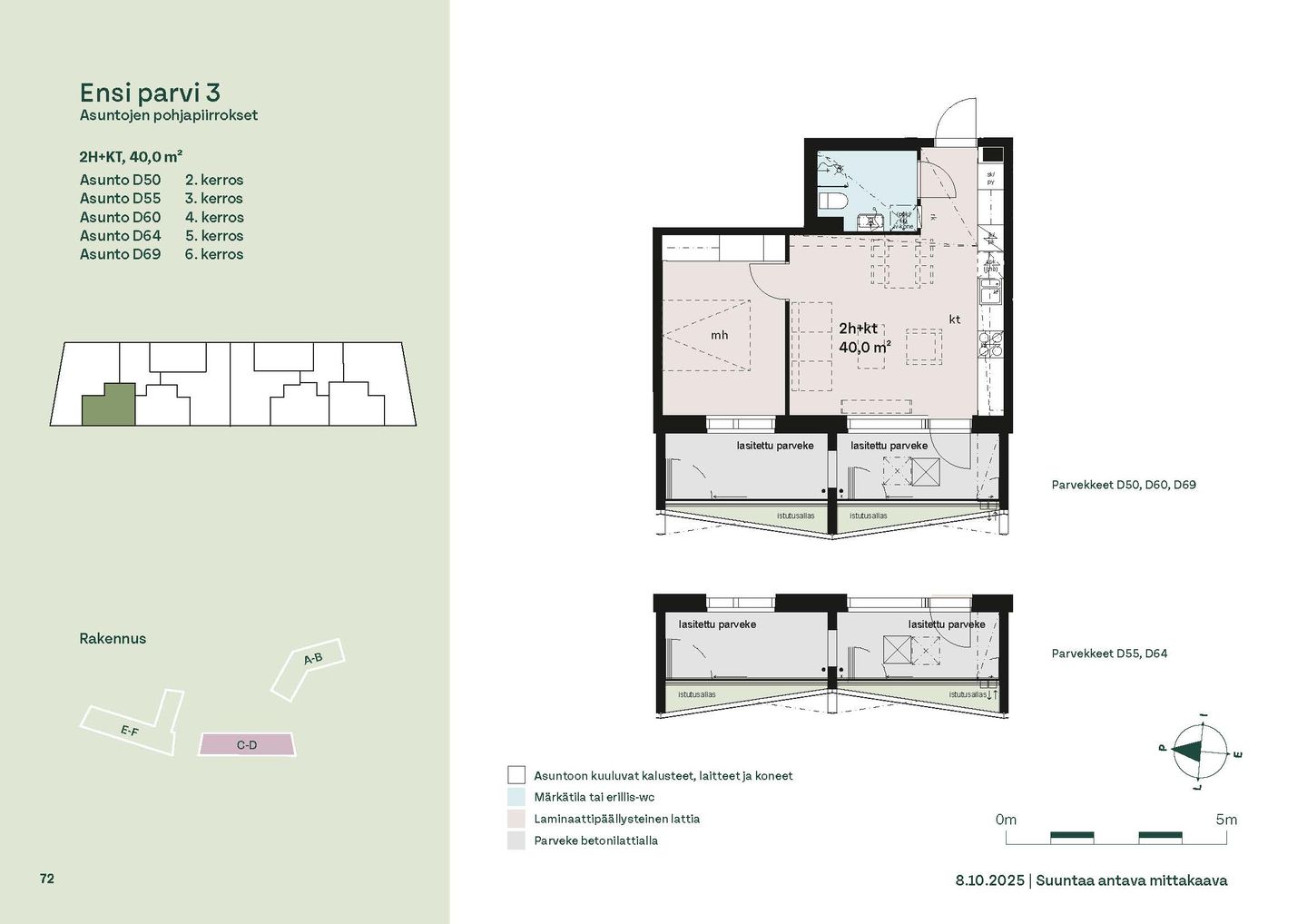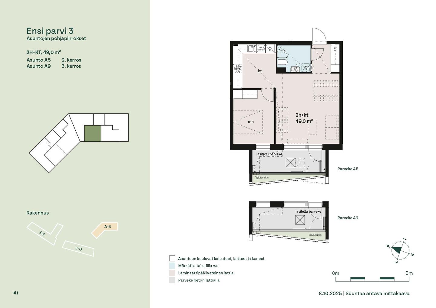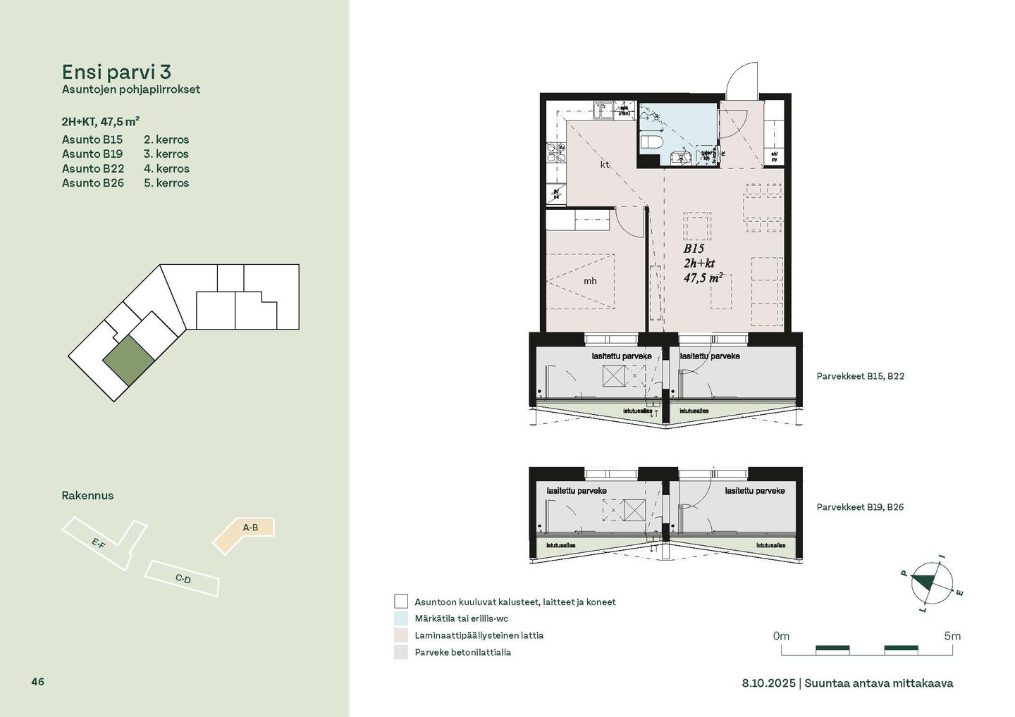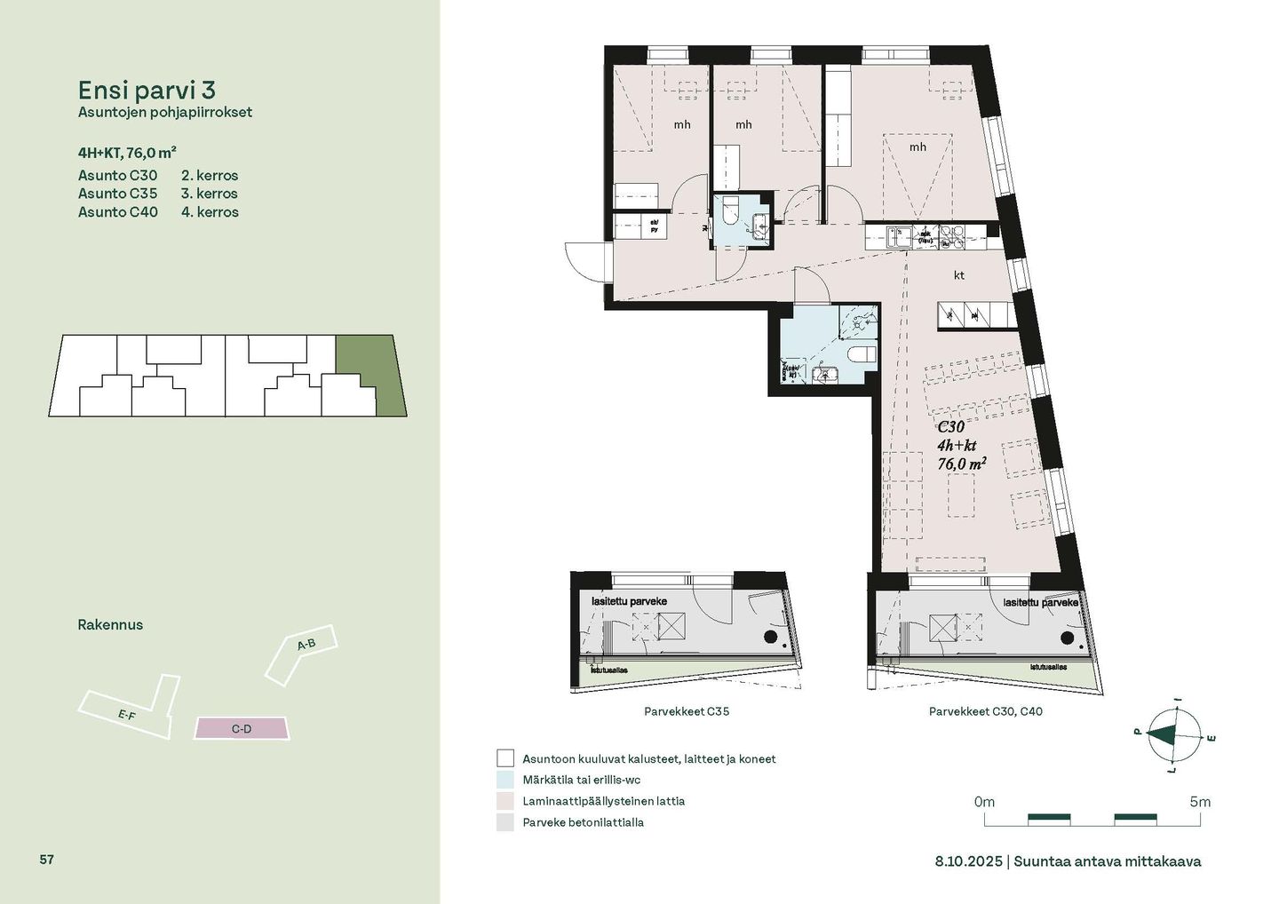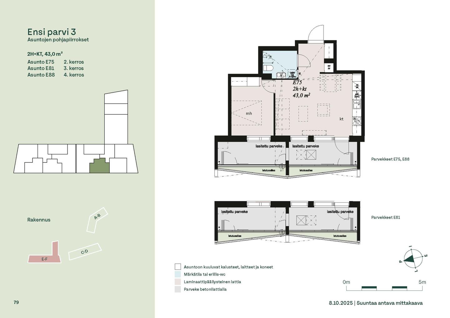 Ensi parven upeat, valoisat kodit tarjoavat rauhallisen asuinympäristön kaupungin kupeessa, arvostettujen luontokohteiden äärellä. Kolmeen 5-6 -kerroksiseen taloon valmistuu yhteensä 115 hyvin suunniteltua asumisoikeuskotia. Huoneistojen koot vaihtelevat 32-neliöisistä yksiöistä lähes sadan neliön viisihuoneisiin perheasuntoihin. Monipuoliset huoneistopohjat ja toimivat pohjaratkaisut inspiroivat sisustajaa – näistä asunnoista jokainen saa luotua juuri omannäköisen kodin.