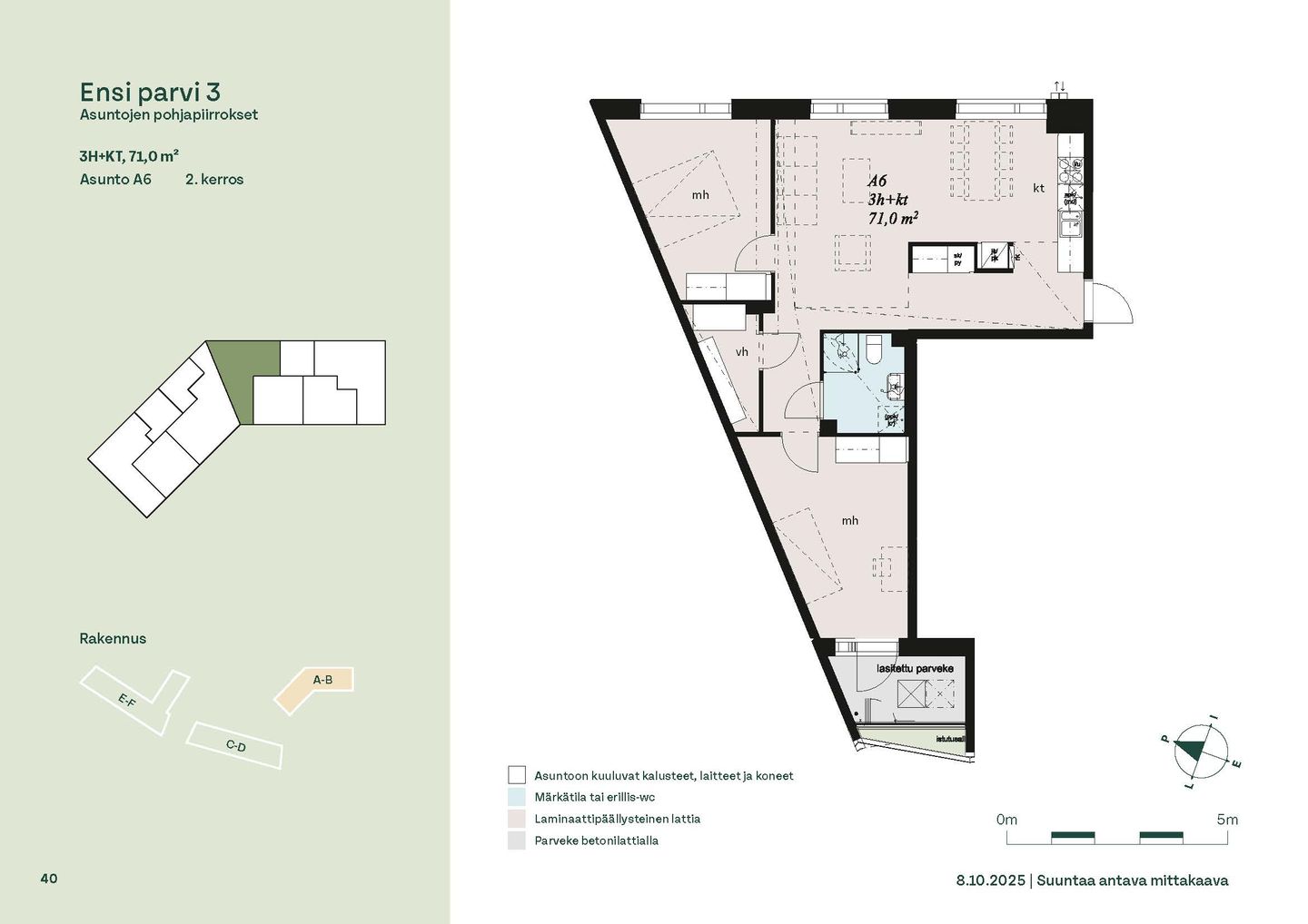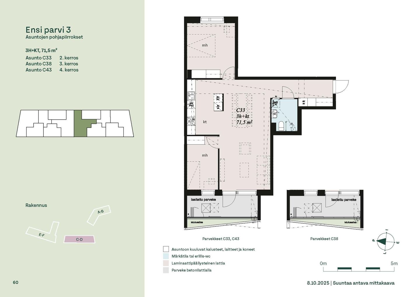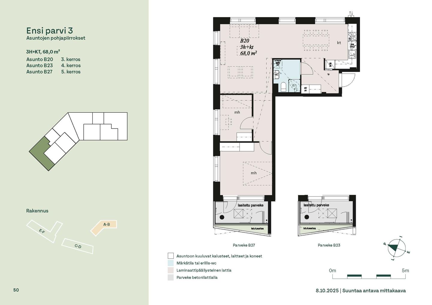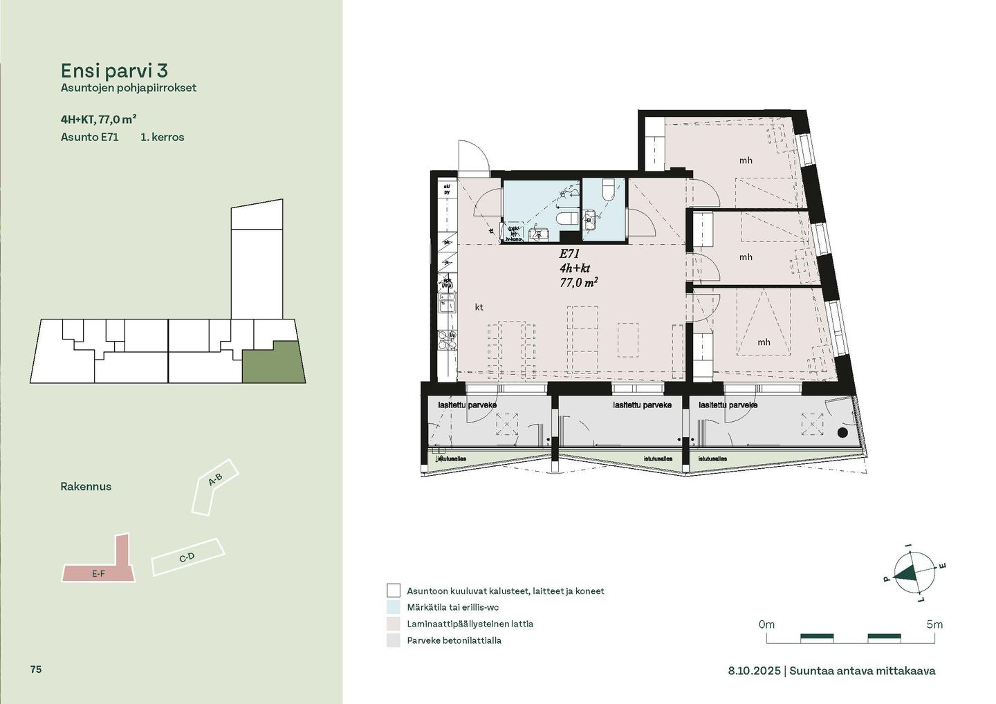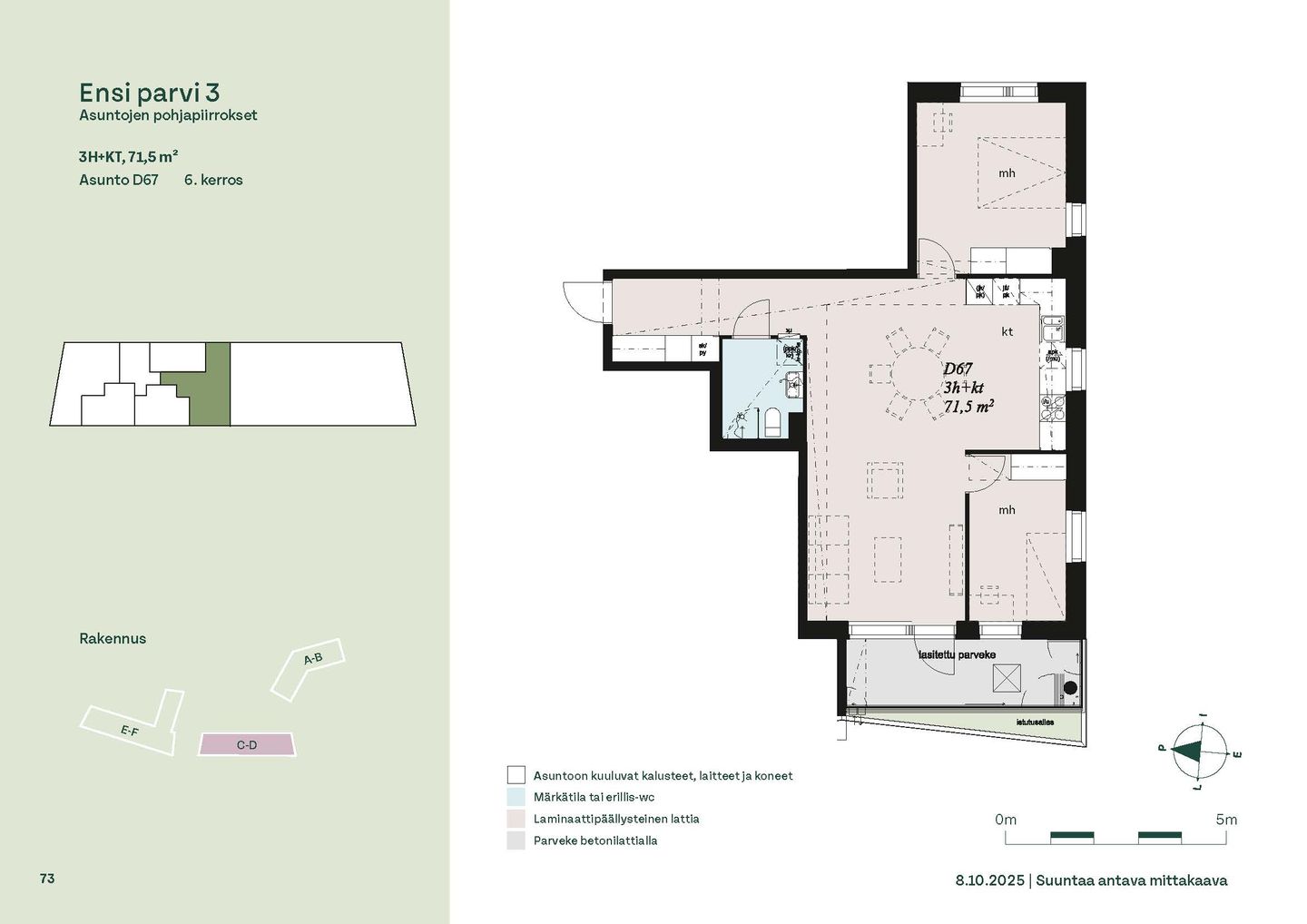 Ensi parven upeat, valoisat kodit tarjoavat rauhallisen asuinympäristön kaupungin kupeessa, arvostettujen luontokohteiden äärellä. Kolmeen 5-6 -kerroksiseen taloon valmistuu yhteensä 115 hyvin suunniteltua asumisoikeuskotia. Huoneistojen koot vaihtelevat 32-neliöisistä yksiöistä lähes sadan neliön viisihuoneisiin perheasuntoihin. Monipuoliset huoneistopohjat ja toimivat pohjaratkaisut inspiroivat sisustajaa – näistä asunnoista jokainen saa luotua juuri omannäköisen kodin.