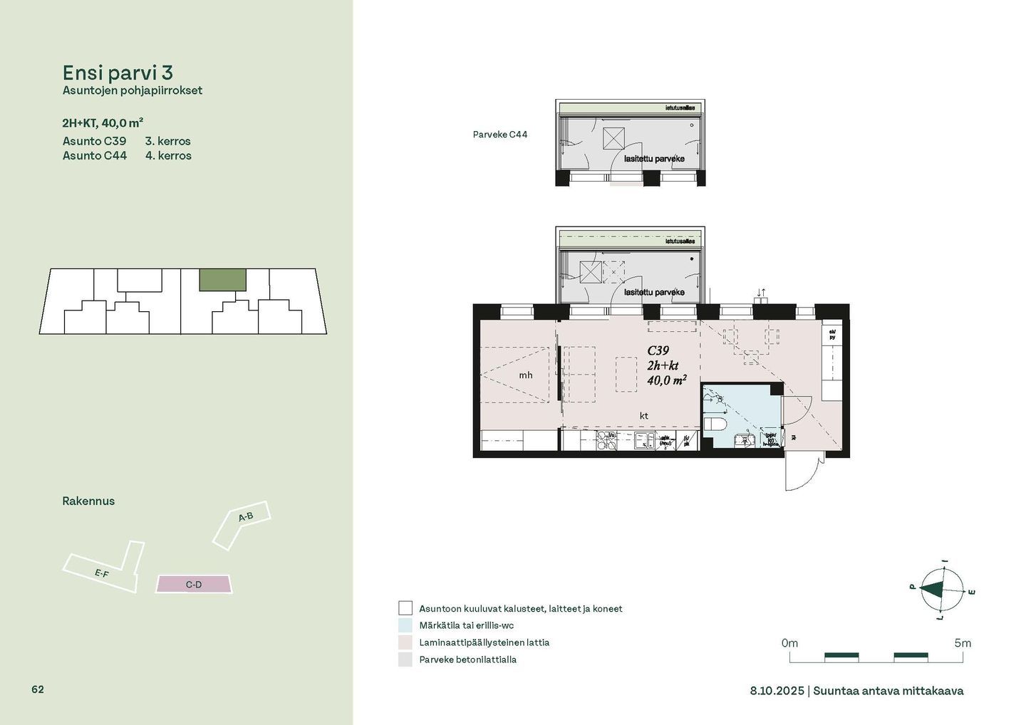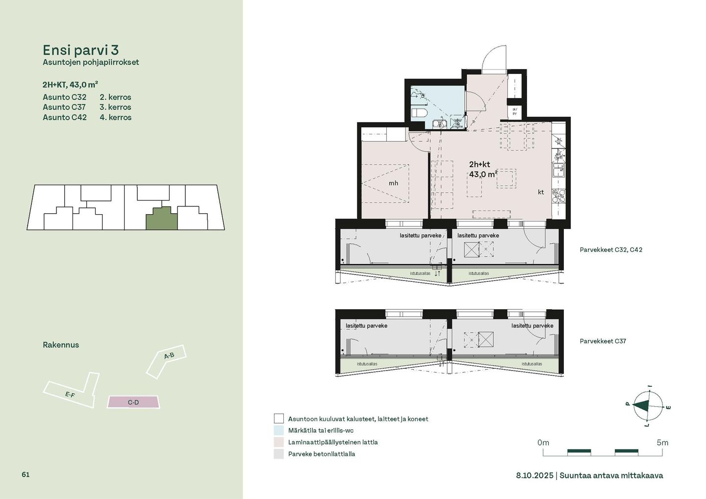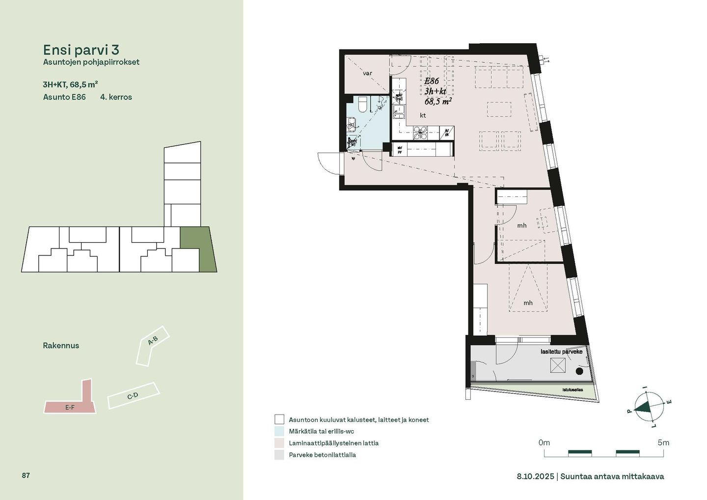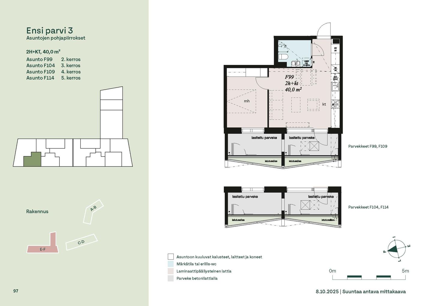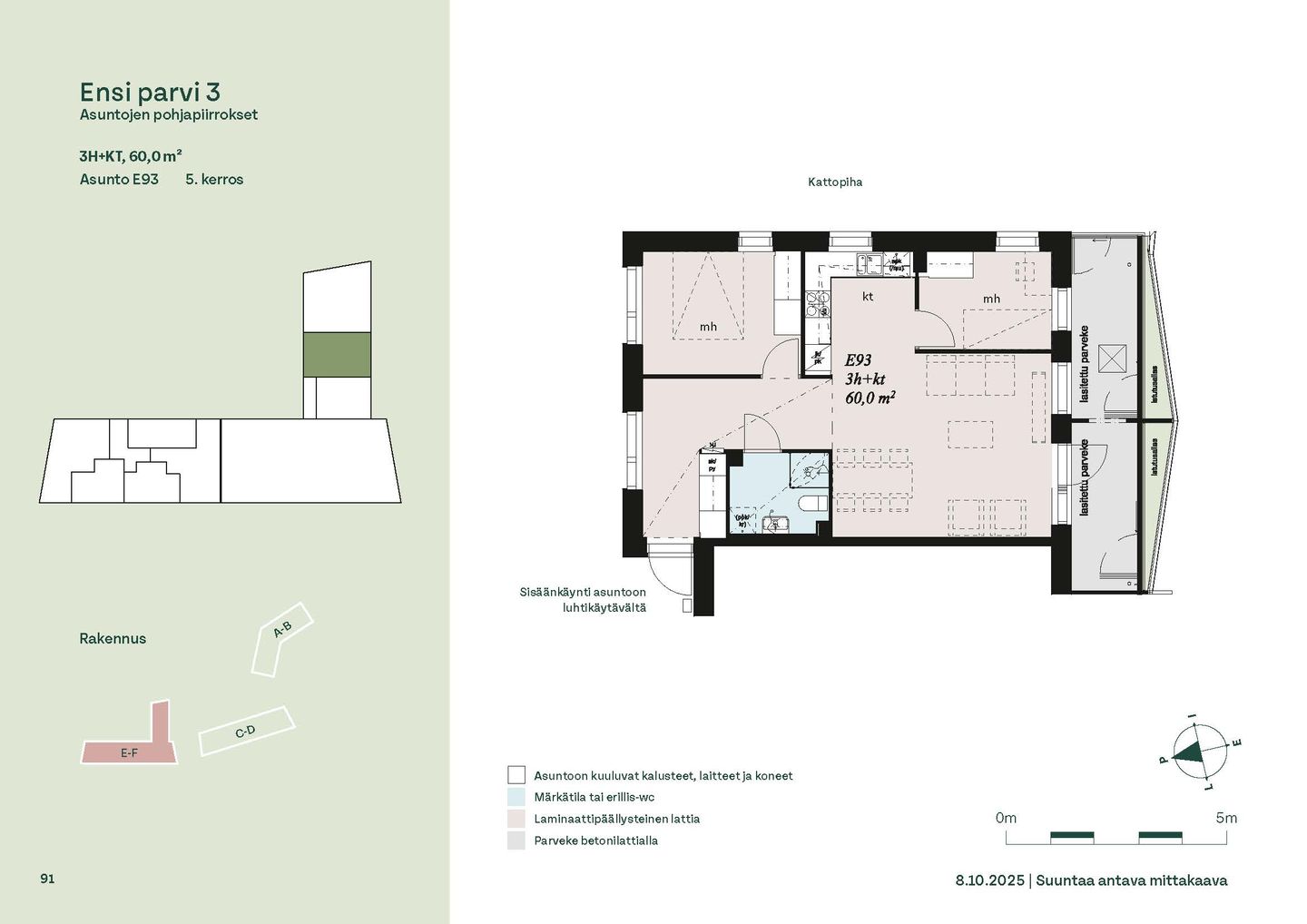 Ensi parven upeat, valoisat kodit tarjoavat rauhallisen asuinympäristön kaupungin kupeessa, arvostettujen luontokohteiden äärellä. Kolmeen 5-6 -kerroksiseen taloon valmistuu yhteensä 115 hyvin suunniteltua asumisoikeuskotia. Huoneistojen koot vaihtelevat 32-neliöisistä yksiöistä lähes sadan neliön viisihuoneisiin perheasuntoihin. Monipuoliset huoneistopohjat ja toimivat pohjaratkaisut inspiroivat sisustajaa – näistä asunnoista jokainen saa luotua juuri omannäköisen kodin.