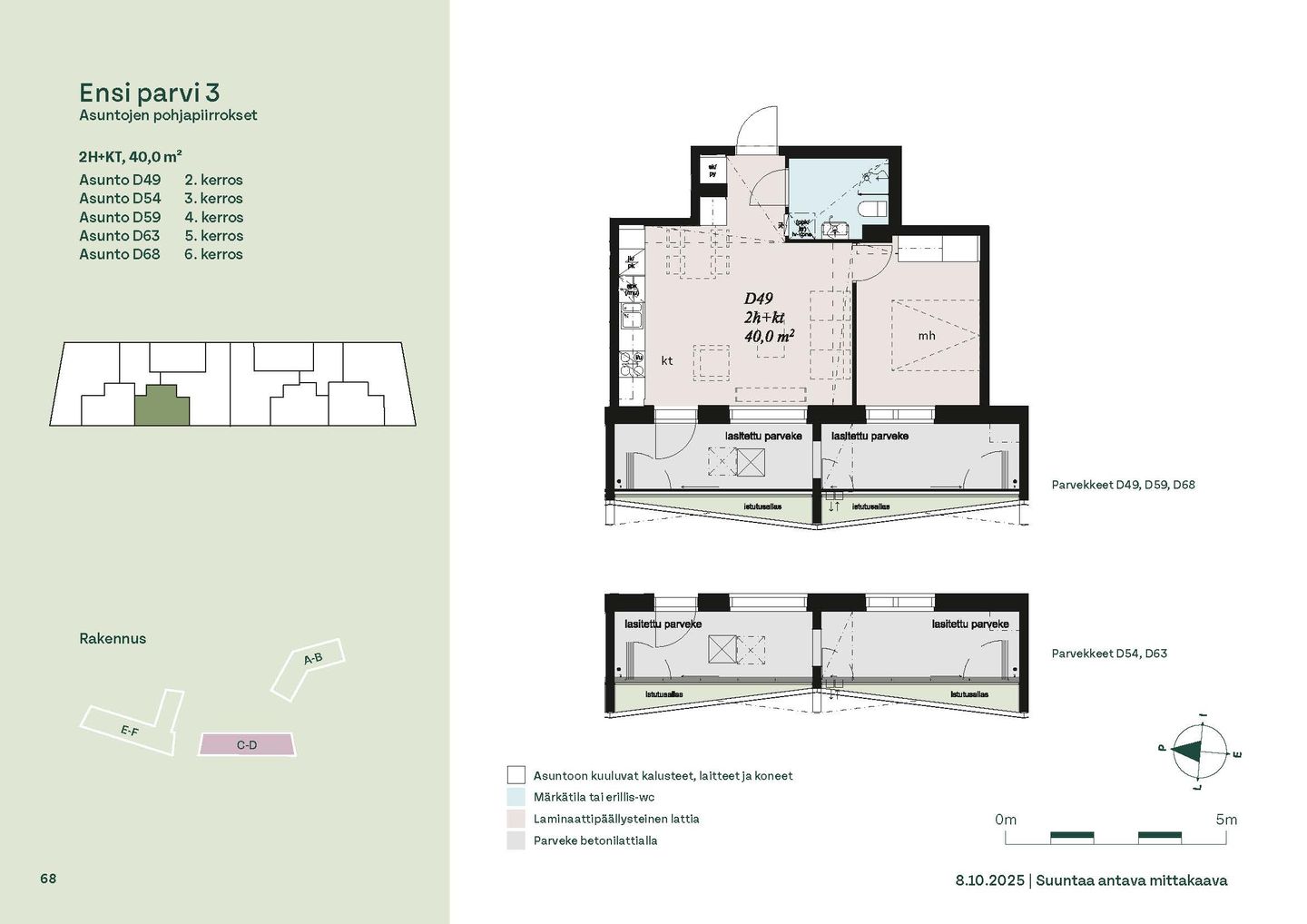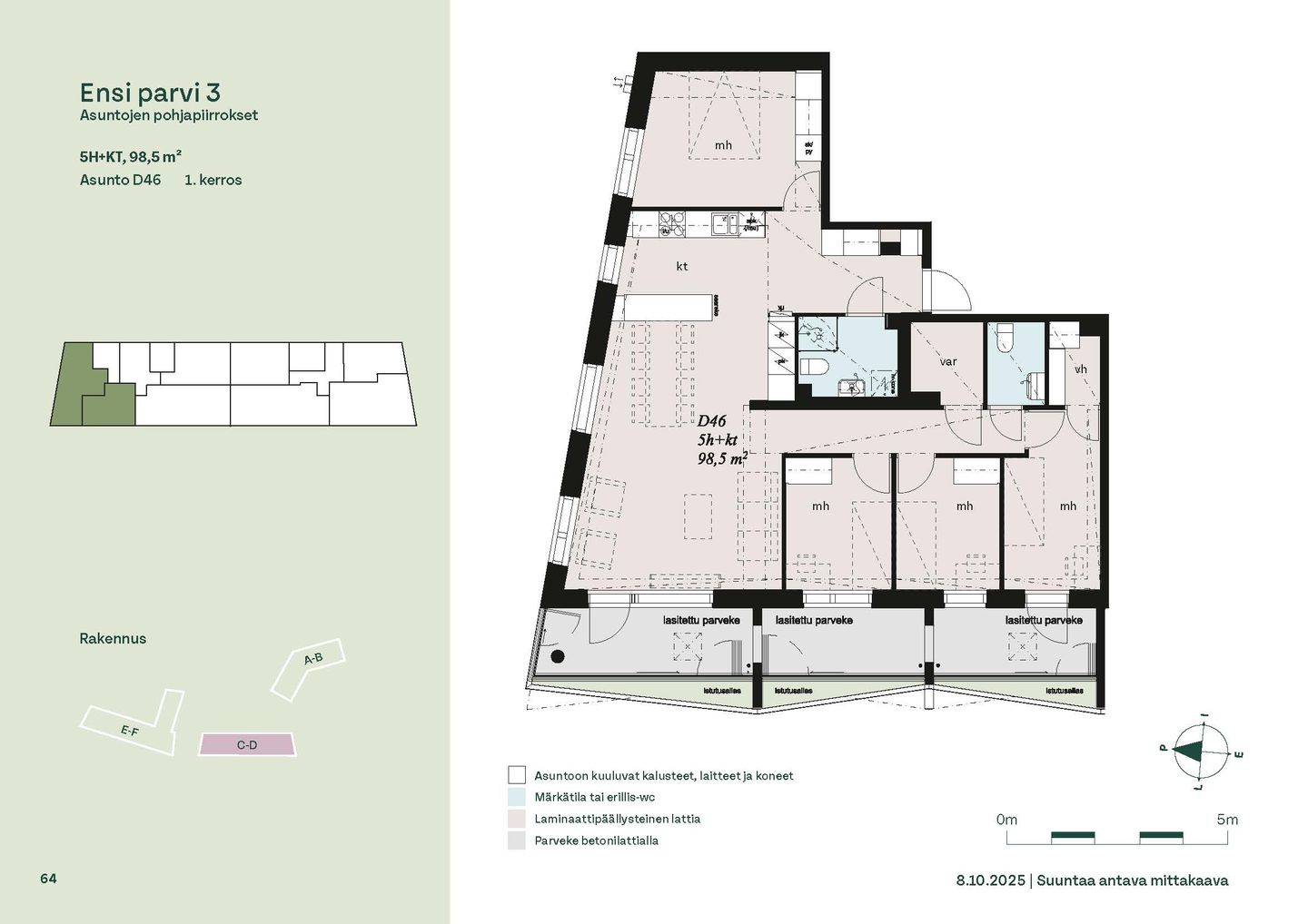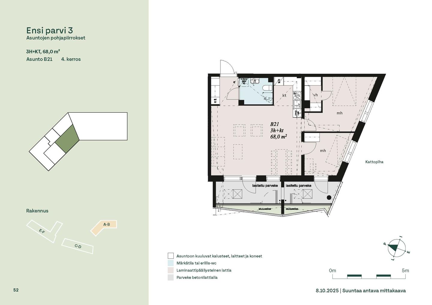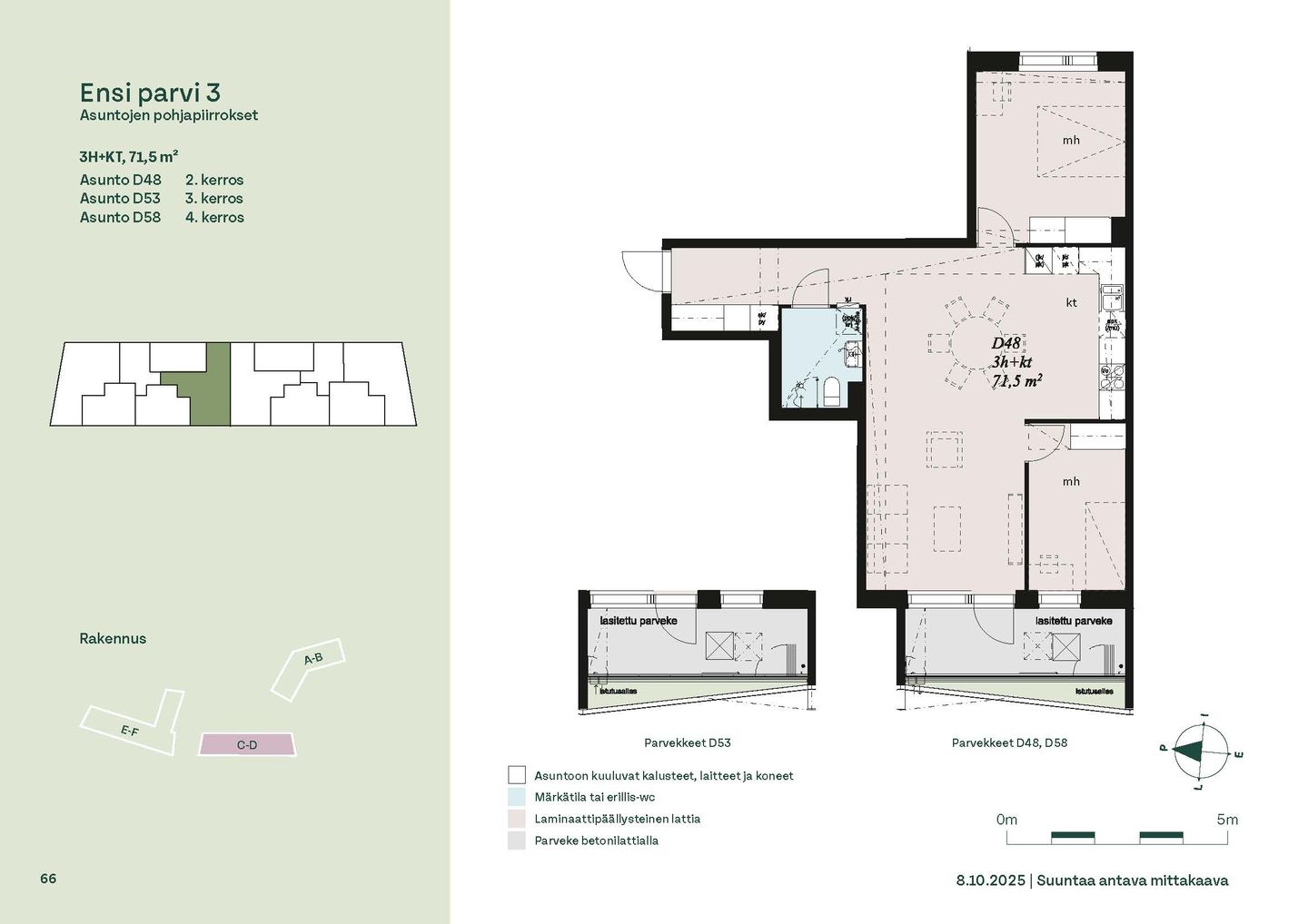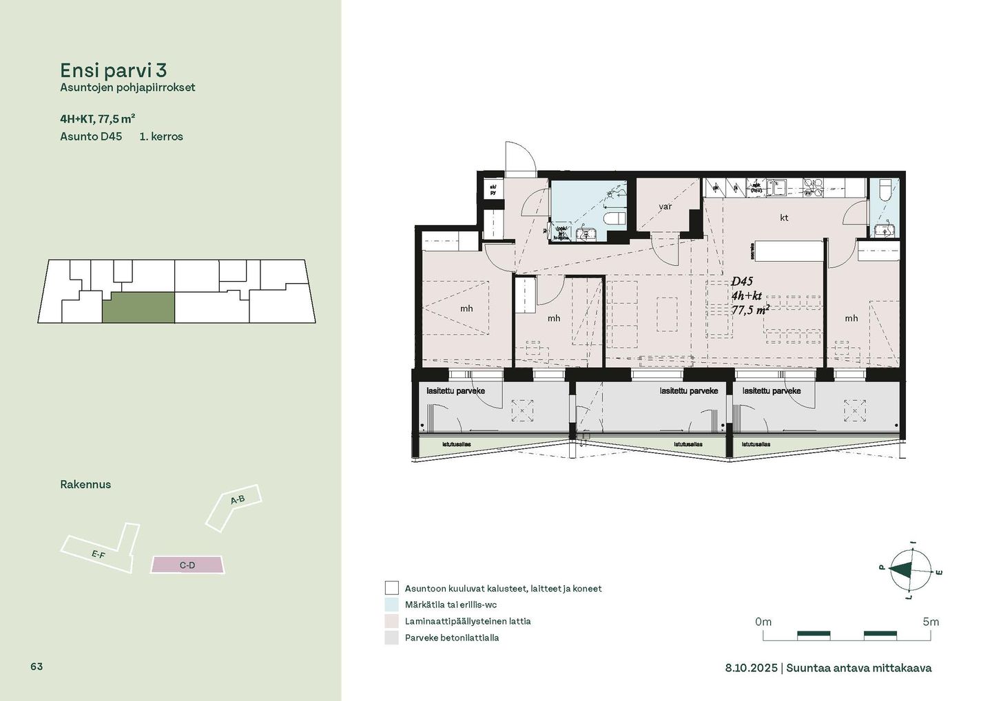 Ensi parven upeat, valoisat kodit tarjoavat rauhallisen asuinympäristön kaupungin kupeessa, arvostettujen luontokohteiden äärellä. Kolmeen 5-6 -kerroksiseen taloon valmistuu yhteensä 115 hyvin suunniteltua asumisoikeuskotia. Huoneistojen koot vaihtelevat 32-neliöisistä yksiöistä lähes sadan neliön viisihuoneisiin perheasuntoihin. Monipuoliset huoneistopohjat ja toimivat pohjaratkaisut inspiroivat sisustajaa – näistä asunnoista jokainen saa luotua juuri omannäköisen kodin.
