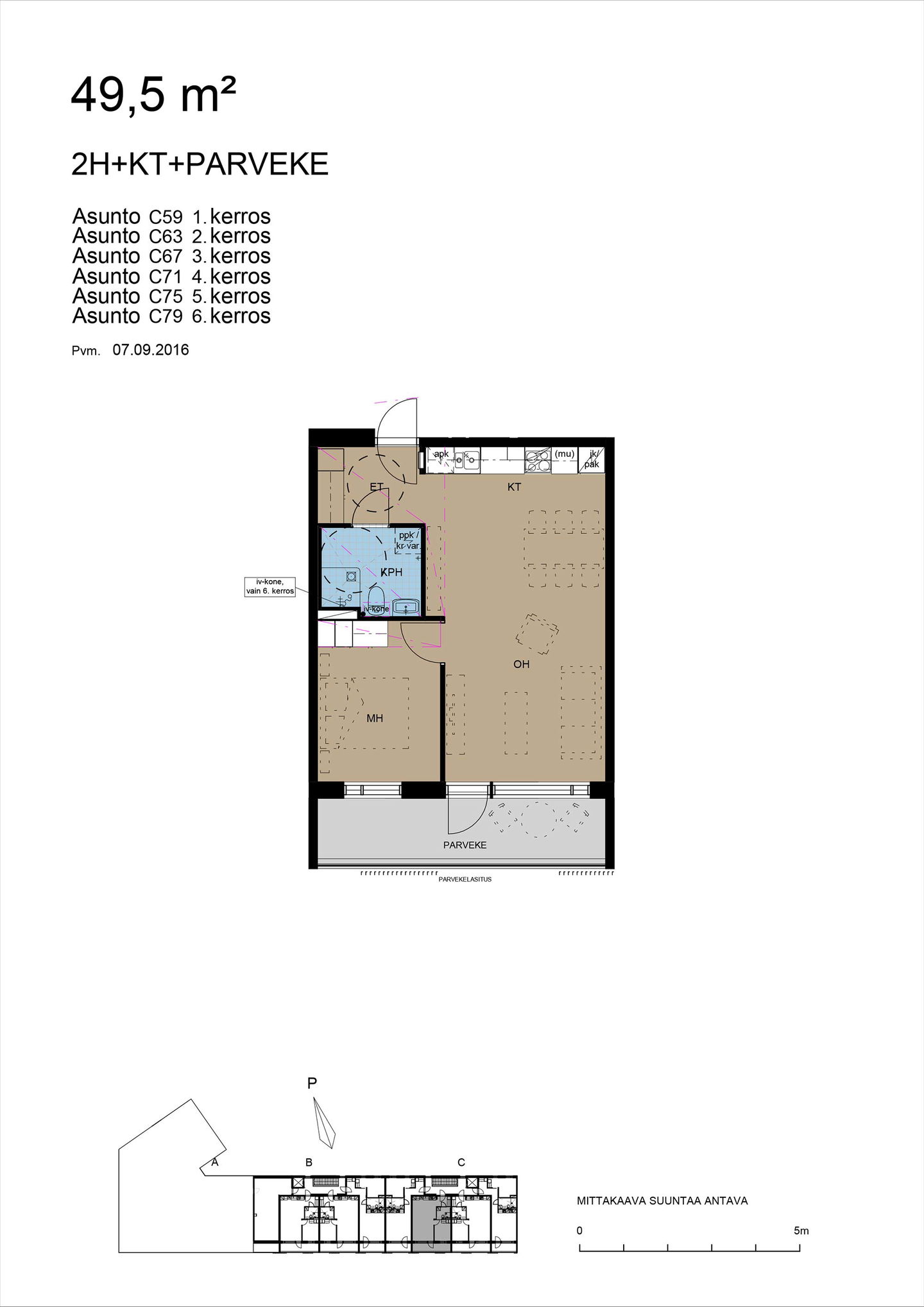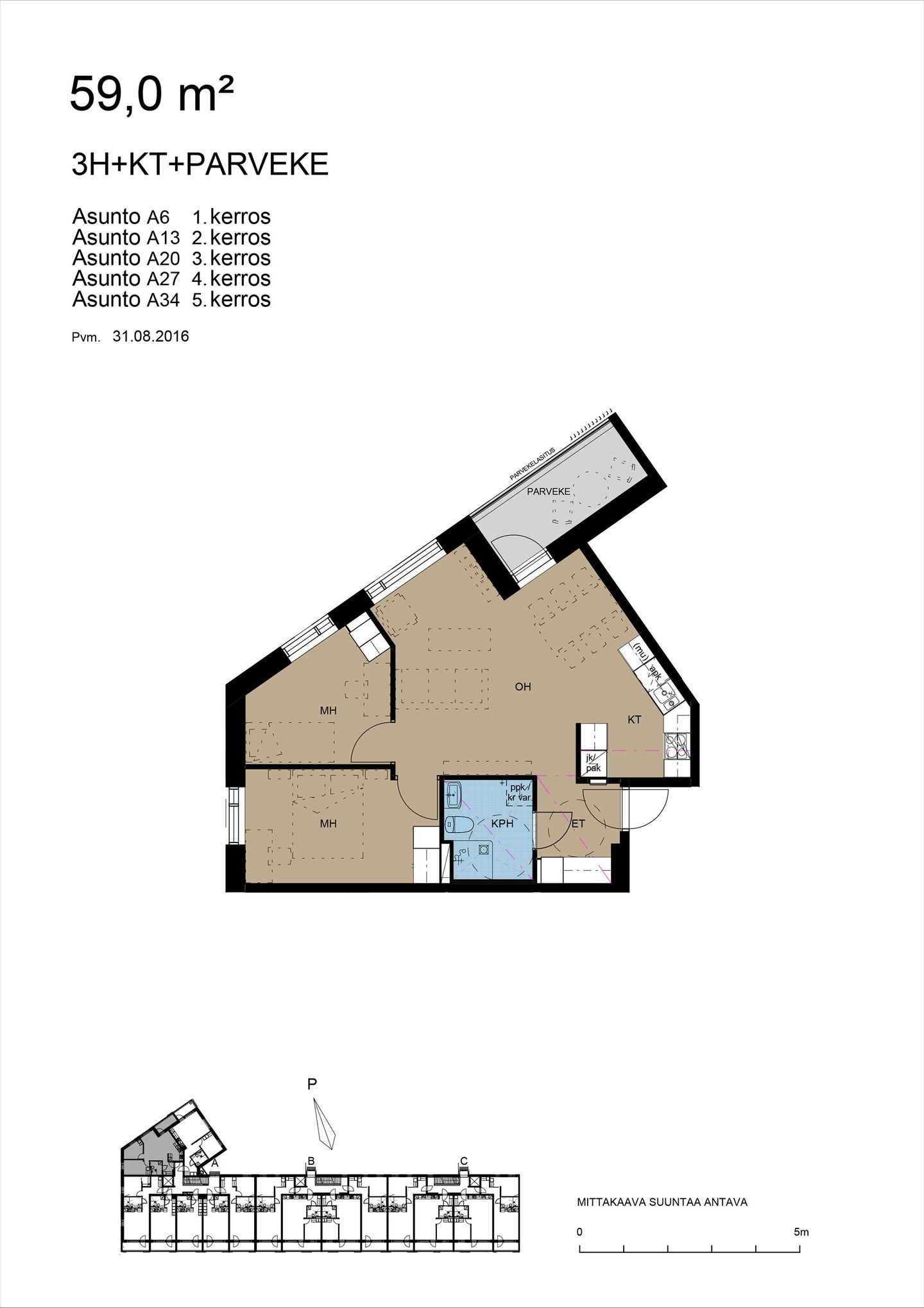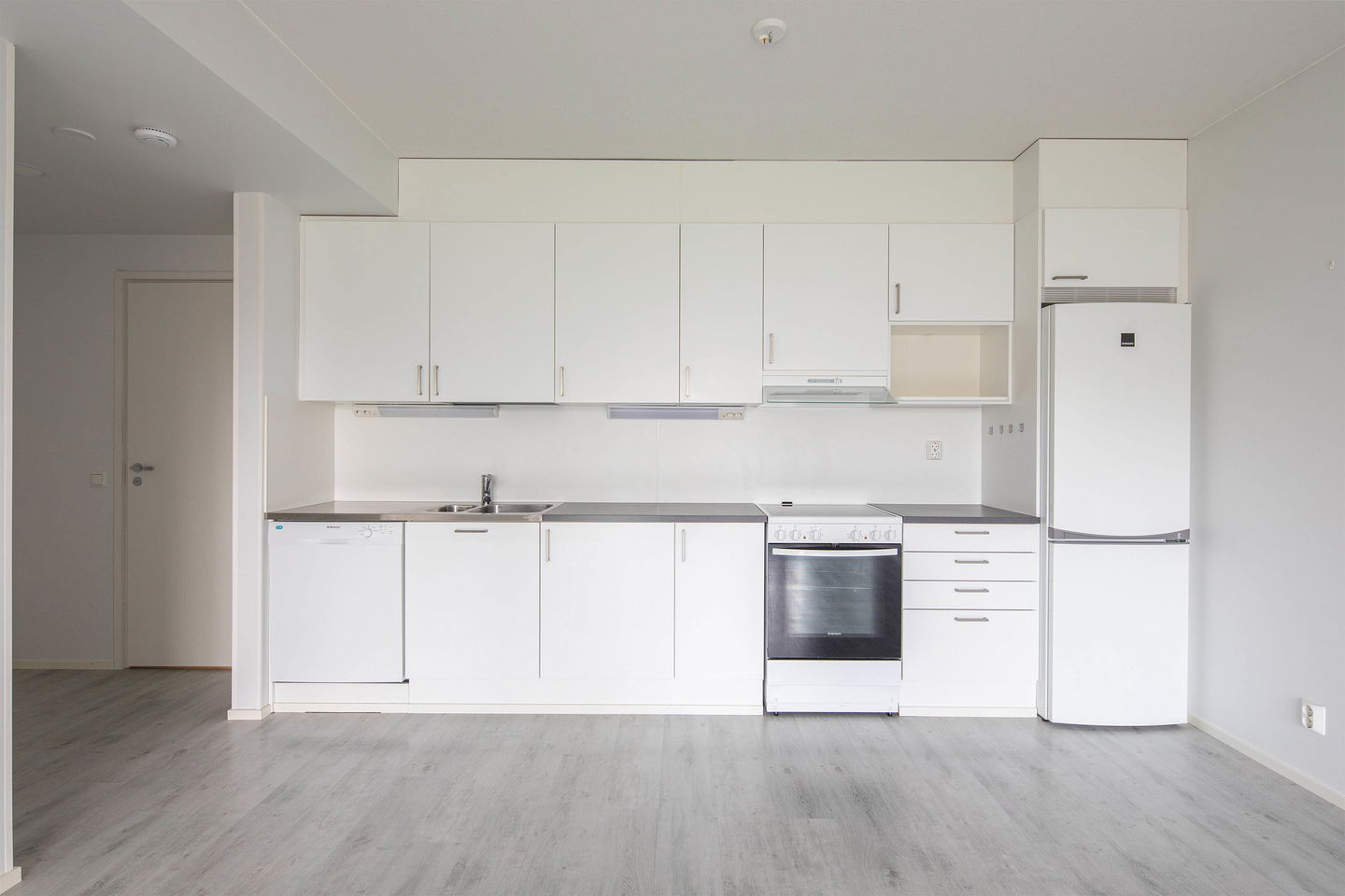 Asunto on 3.kerroksessa. Eteisessä ja makuuhuoneessa on hyvin kaappitilaa. Keittiössä modernit pinnat ja ajantasaiset kodinkoneet takaavat mukavaa ja helppoa ruoanlaittoa. Myös kaappitilaa on keittiössä runsaasti.