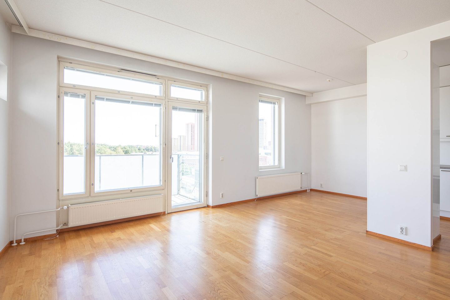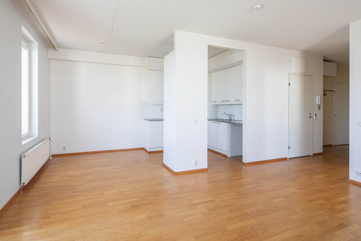 Keittiö ja olohuone yhdistyvät avaraksi kokonaisuudeksi, jossa on tilaa sekä arkeen että yhdessäoloon. Olohuoneesta on käynti parvekkeelle, joka tuo lisää viihtyvyyttä. Asunnossa on kaksi makuuhuonetta hyvine säilytysratkaisuineen sekä kylpyhuone, jonka yhteydessä on oma sauna tuomaan arkeen ripaus luksusta.