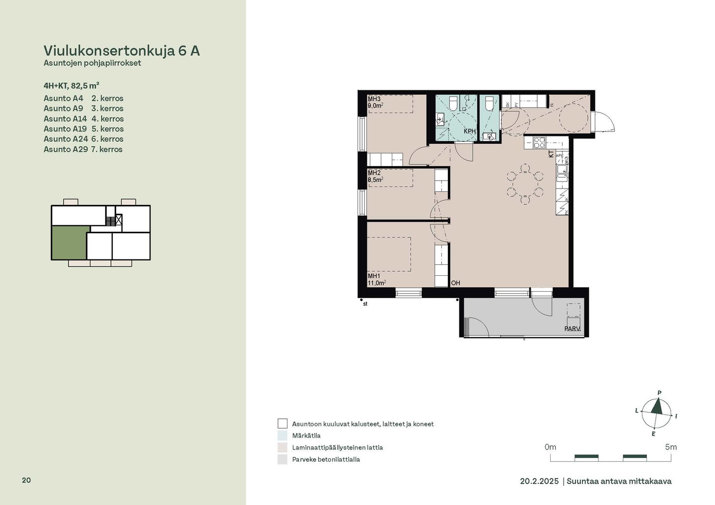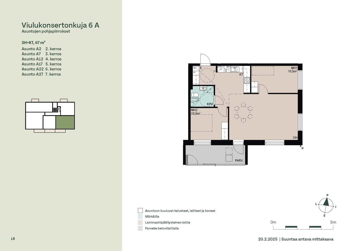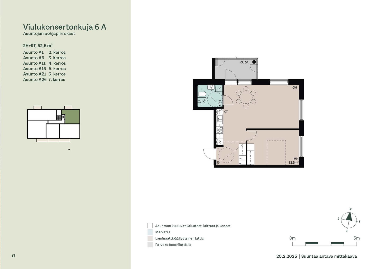 Huoneistot ja pohjakuvat: Viulukonsertonkuja 6a, Kerrostalo