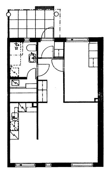 Rivitalokohde, jossa on asuntoja pienistä kaksioista neliöihin. Osa asunnoista on luhtitalossa. Asukkaiden käytössä on mm. pesutupa.