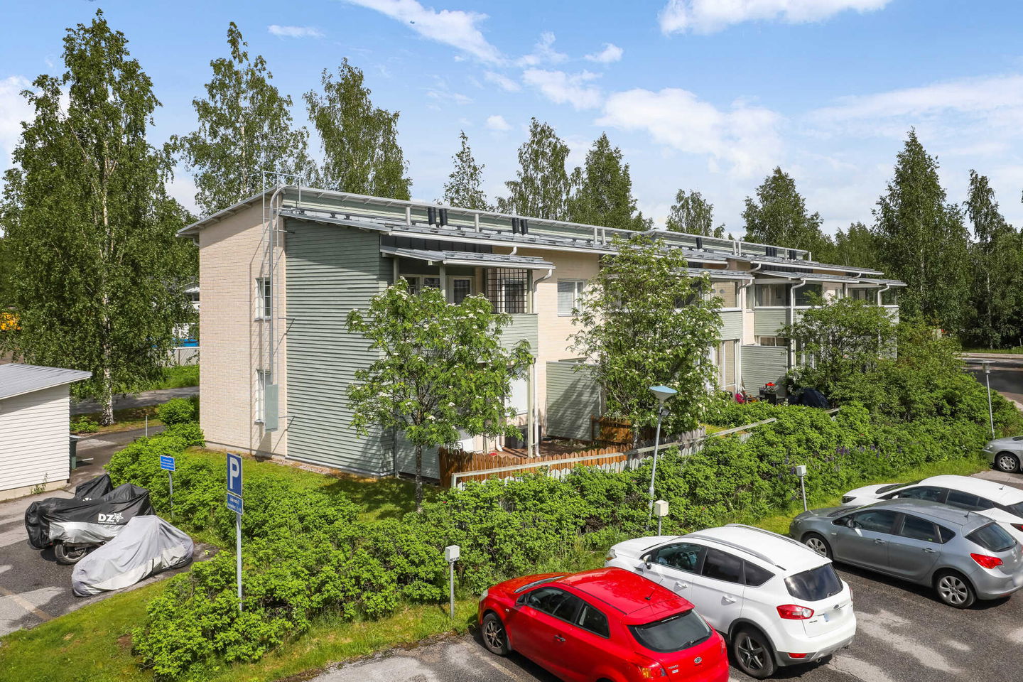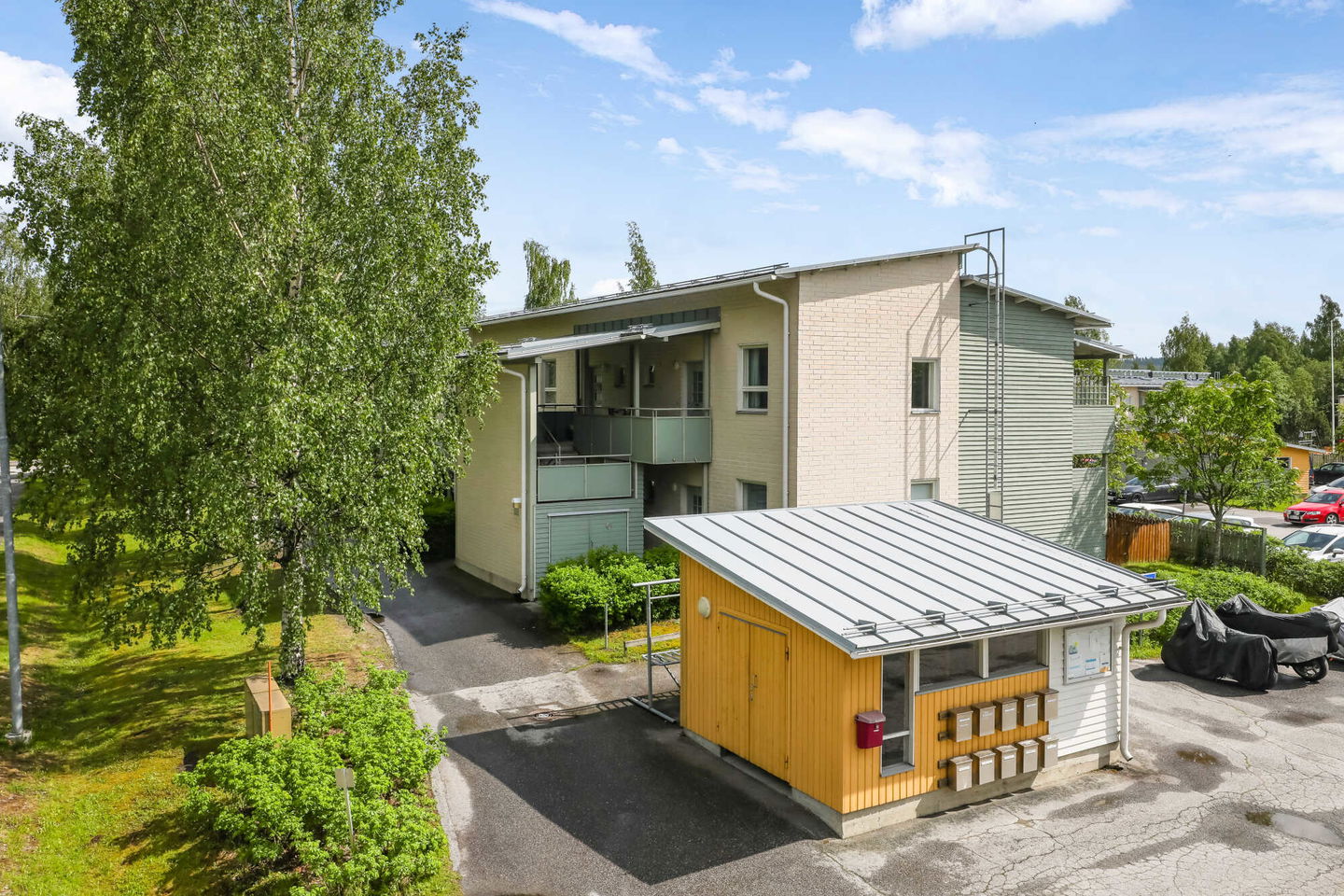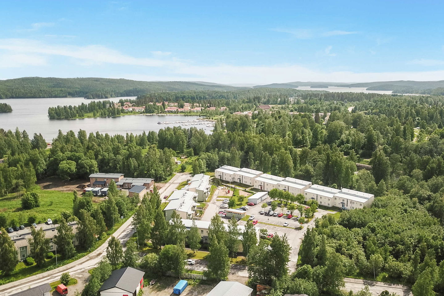Kodikas rivi-/pienkerrostalo vettä rakastavalle: Talo sijaitsee Jyväsjärven eri osat yhdistävän Äijälänsalmen rannan tuntumassa, Äijälänsalmen vanhan sillan lähellä. Salmen toisella puolella on Kuokkalankartano puulajistopuistoineen ja pienvenesatama.