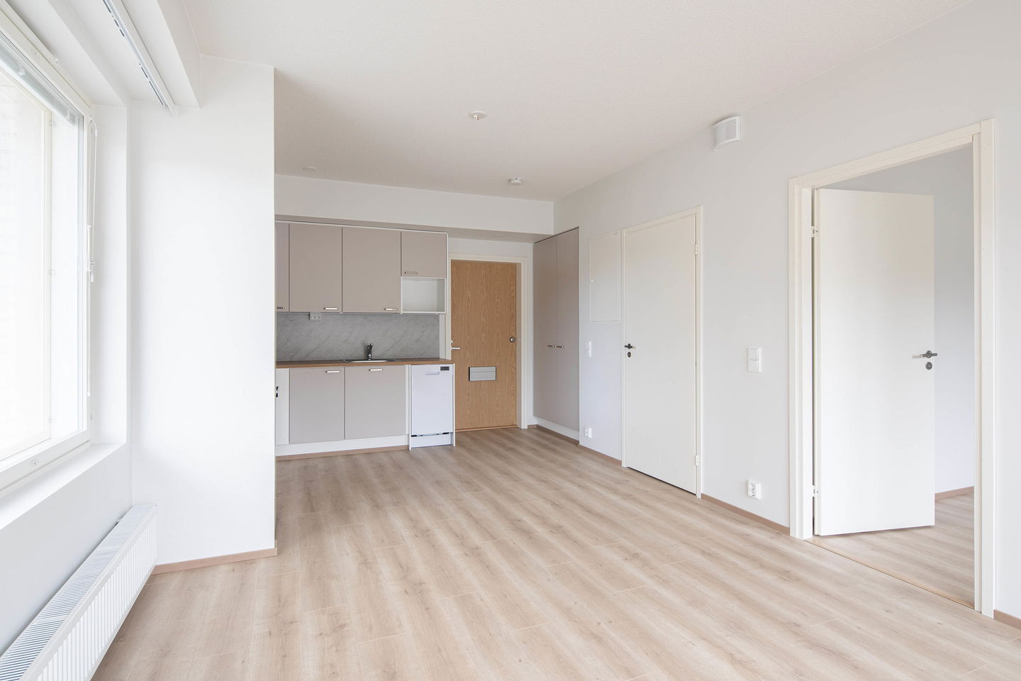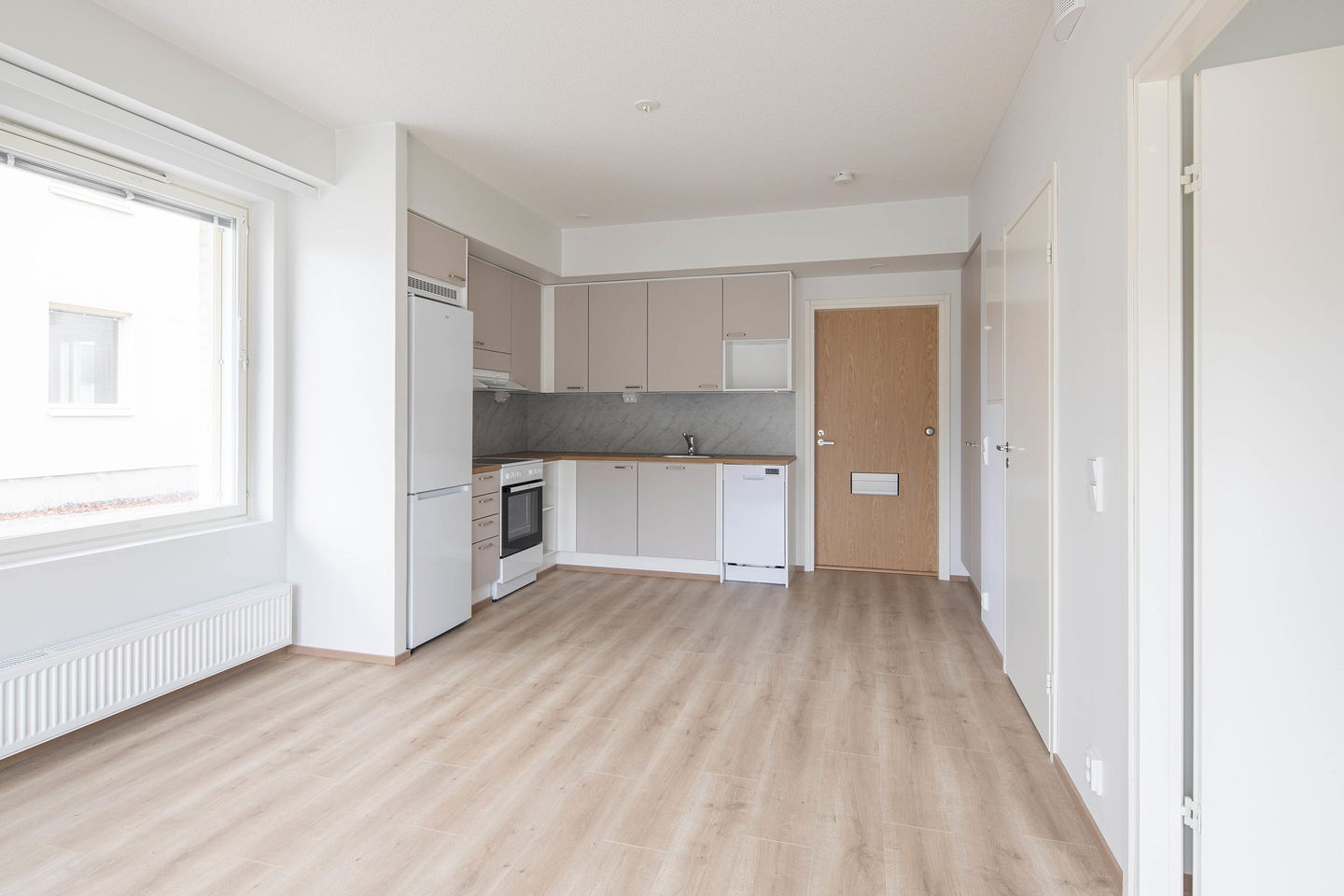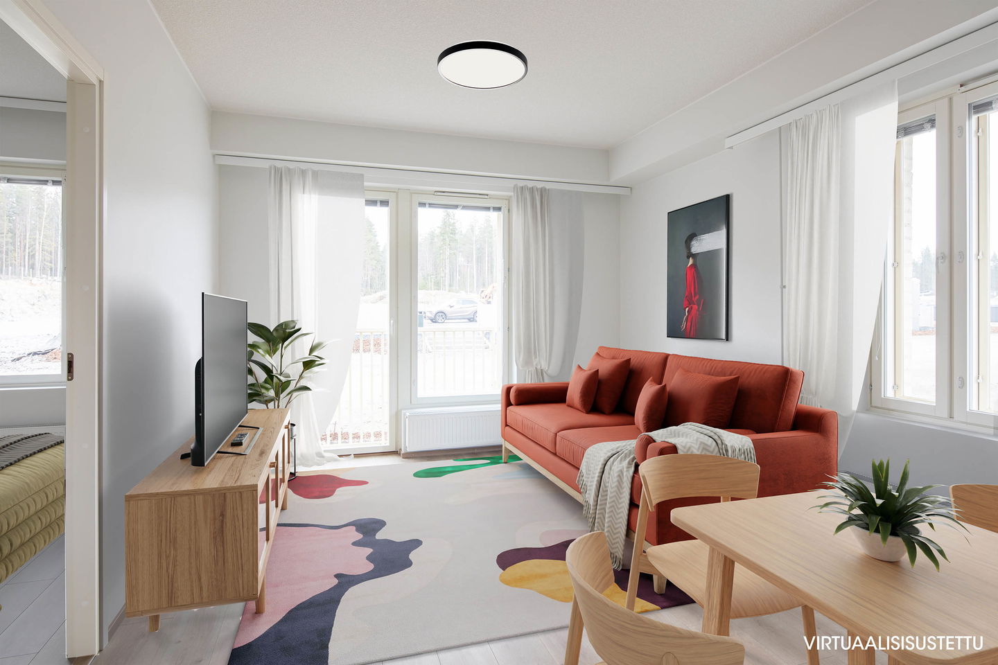 Kompakti kaksio omalla saunalla sekä vaatehuoneella. Ikkunat kahteen suuntaan ja olohuoneessa itään avautuva ranskalainen parveke. Asunto on muuttovalmis 27.2.2025. Vakuusmaksu on ainoastaan 250 euroa ja lemmikit ovat tervetulleita.