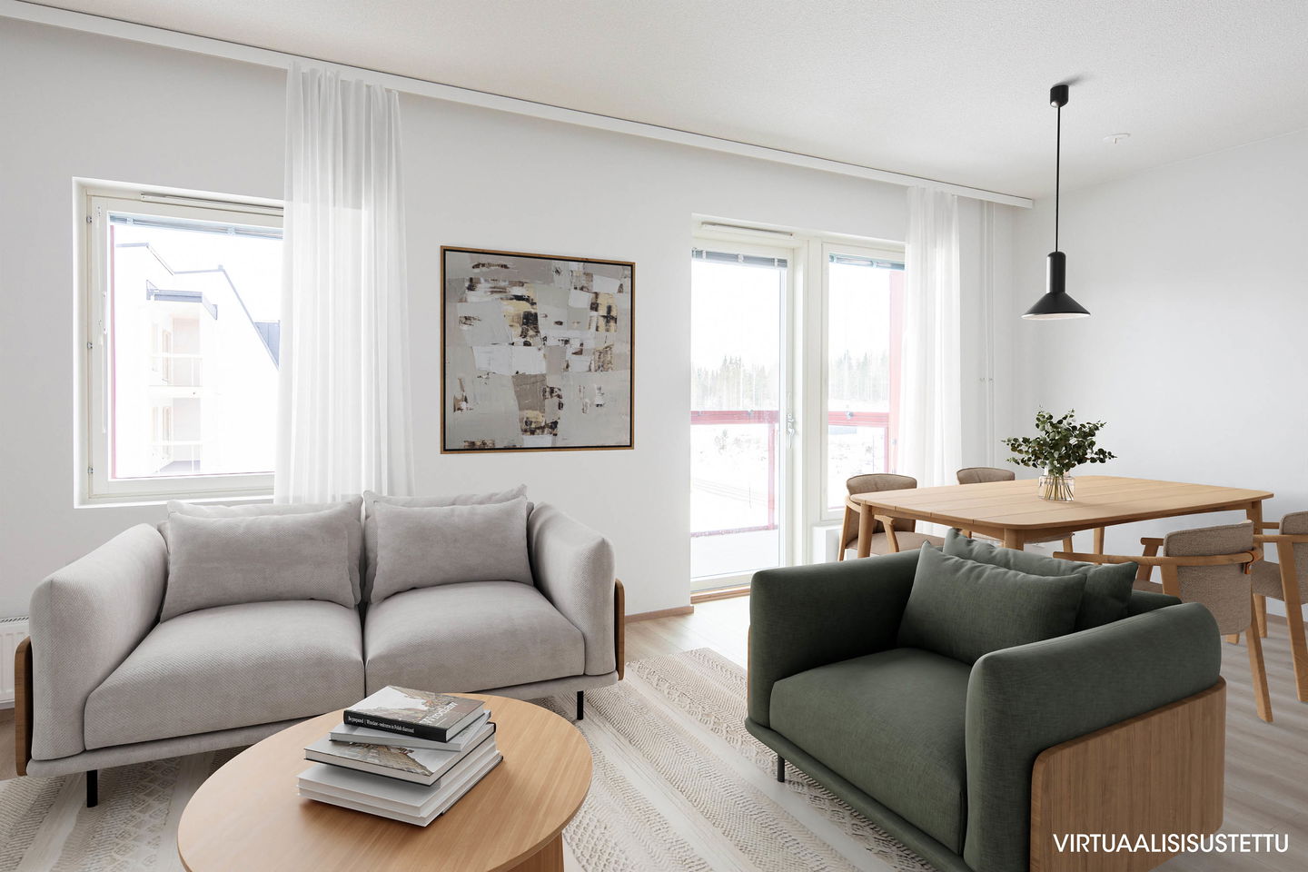 Kohteeseen kuuluu A-B-raput käsittävä 4-kerroksinen talo ja C-F-raput käsittävä 5-kerroksinen talo, jonka keskellä on 3-kerroksiset town house -asunnot etelään avautuvine kattoterasseineen ja omine sisäänkäynteineen. Molempien rakennusten ylimpien kerroksen asunnoissa on tunnelmalliset lapeikkunat ja viistettyä kattopintaa. Neliöihin on laskettu vain yli 160-senttinen tila, joten ylimmät asunnot ovat hieman todellisia neliöitään suuremmat.