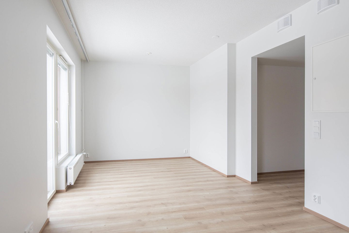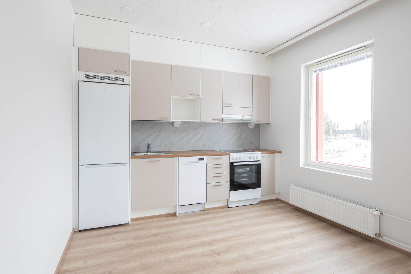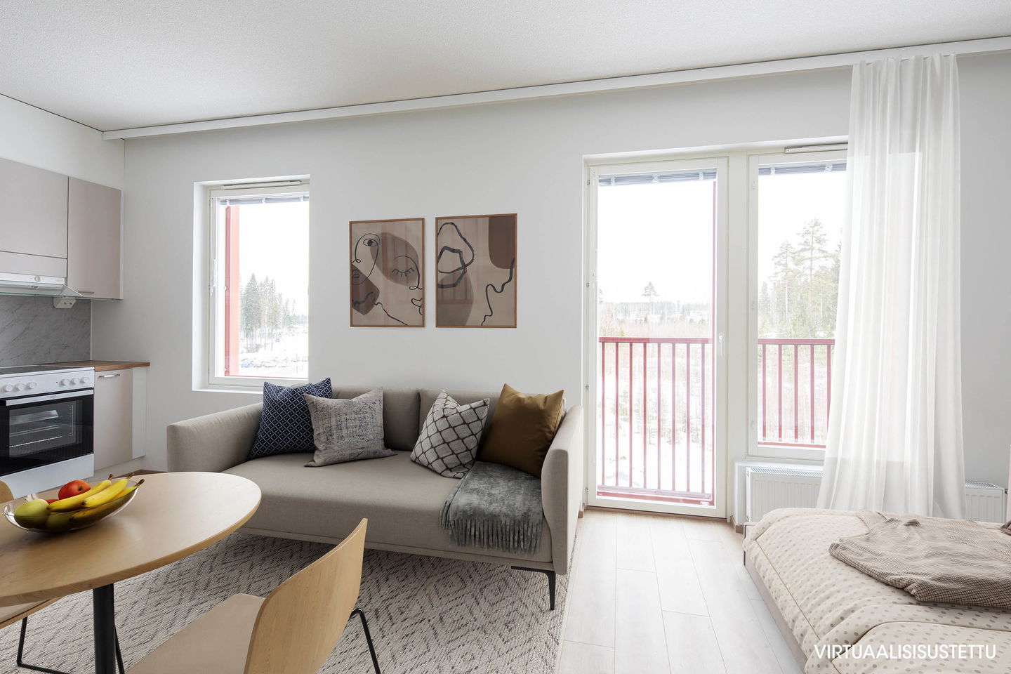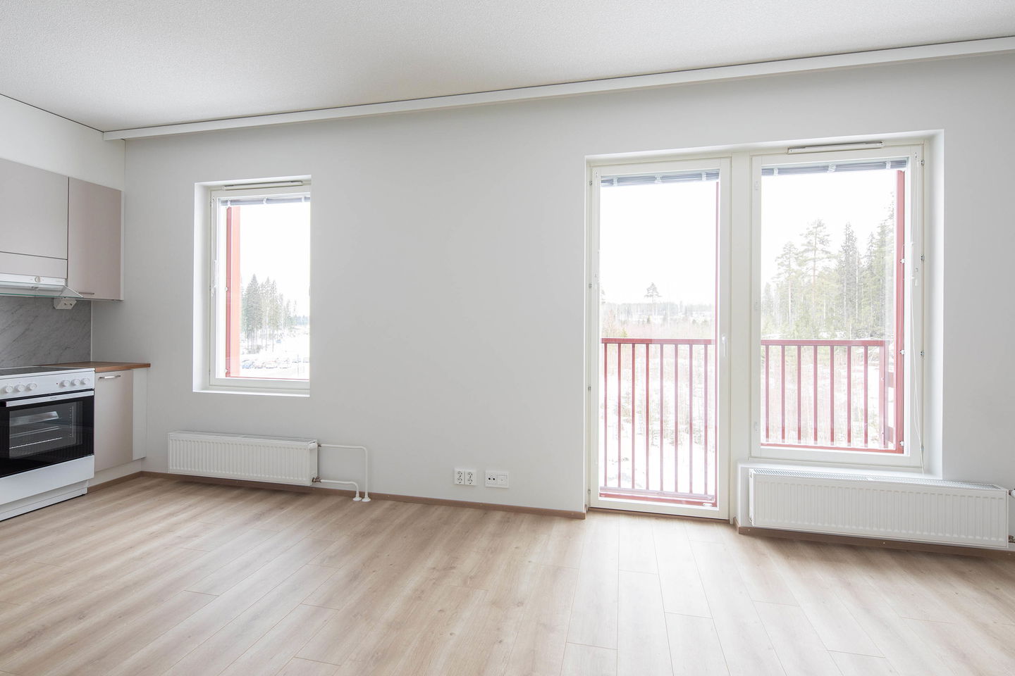 Kolmannen kerroksen toimiva yksiö ranskalaisella parvekkeella, joka tuo valoa asuntoon. Keittiössä keraaminen liesi sekä 45cm leveä astianpesukone.