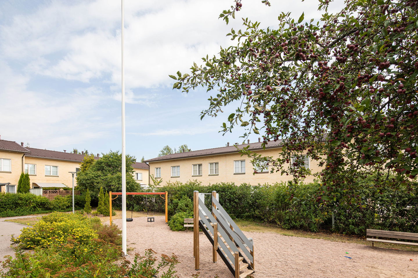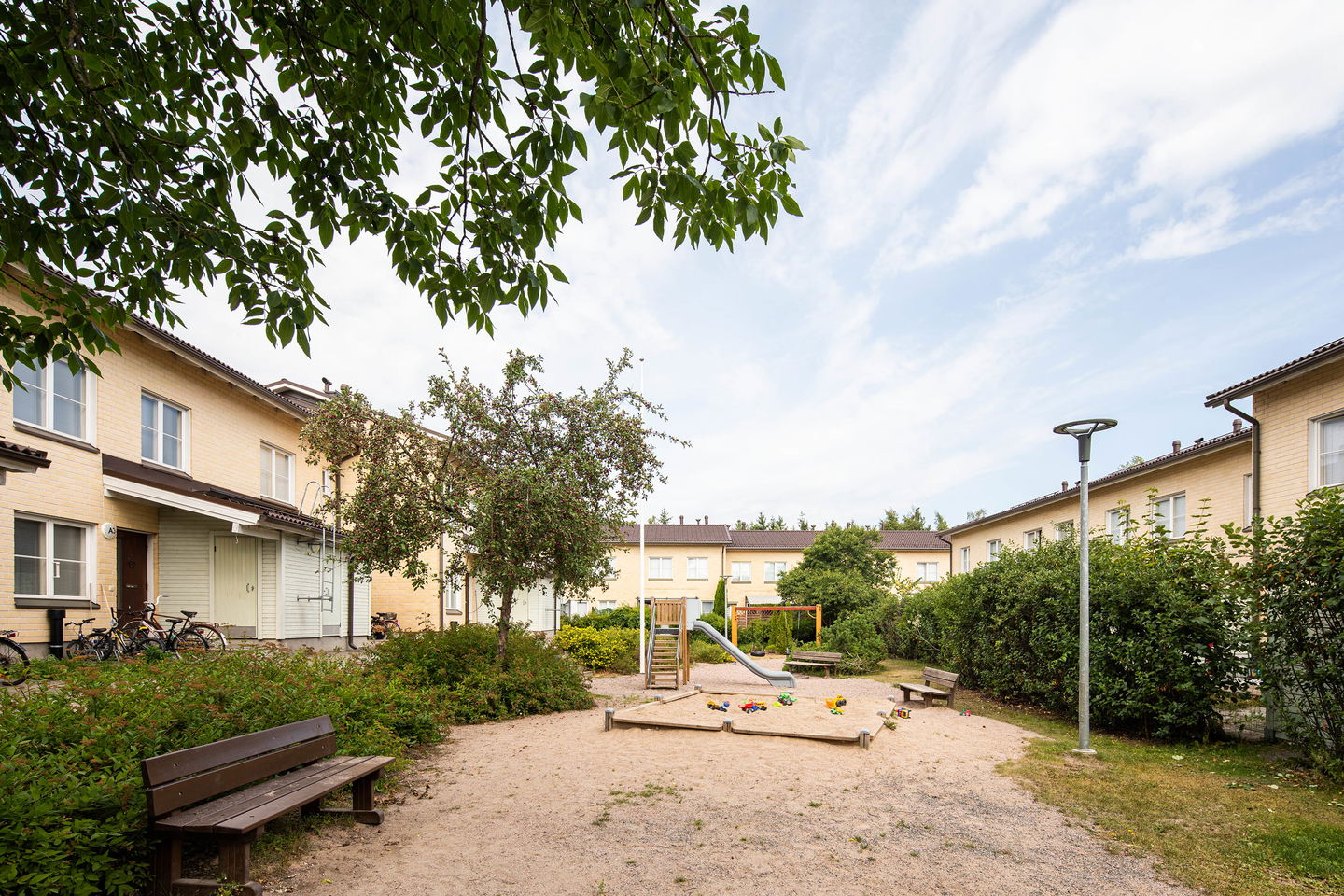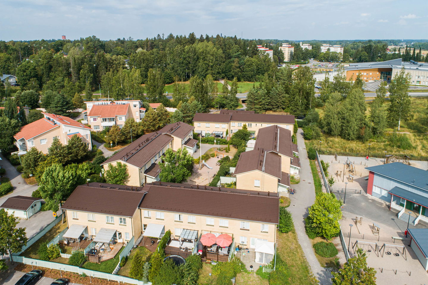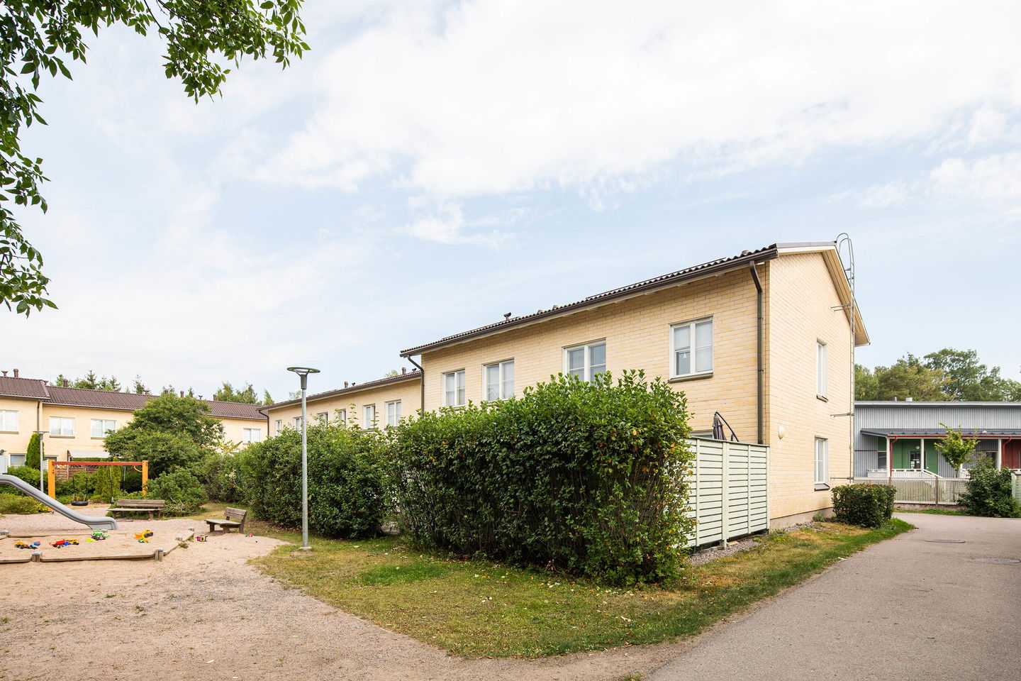Tässä rivitaloyhtiössä viihtyy varmasti lapsiperheet, asunnot ovat tilavia ja kaikissa asunnoissa on oma sauna sekä asuntopiha. Sisäpihalla on kiva leikkipaikka lapsille. Kohteessa on omatoimiviherhoito.