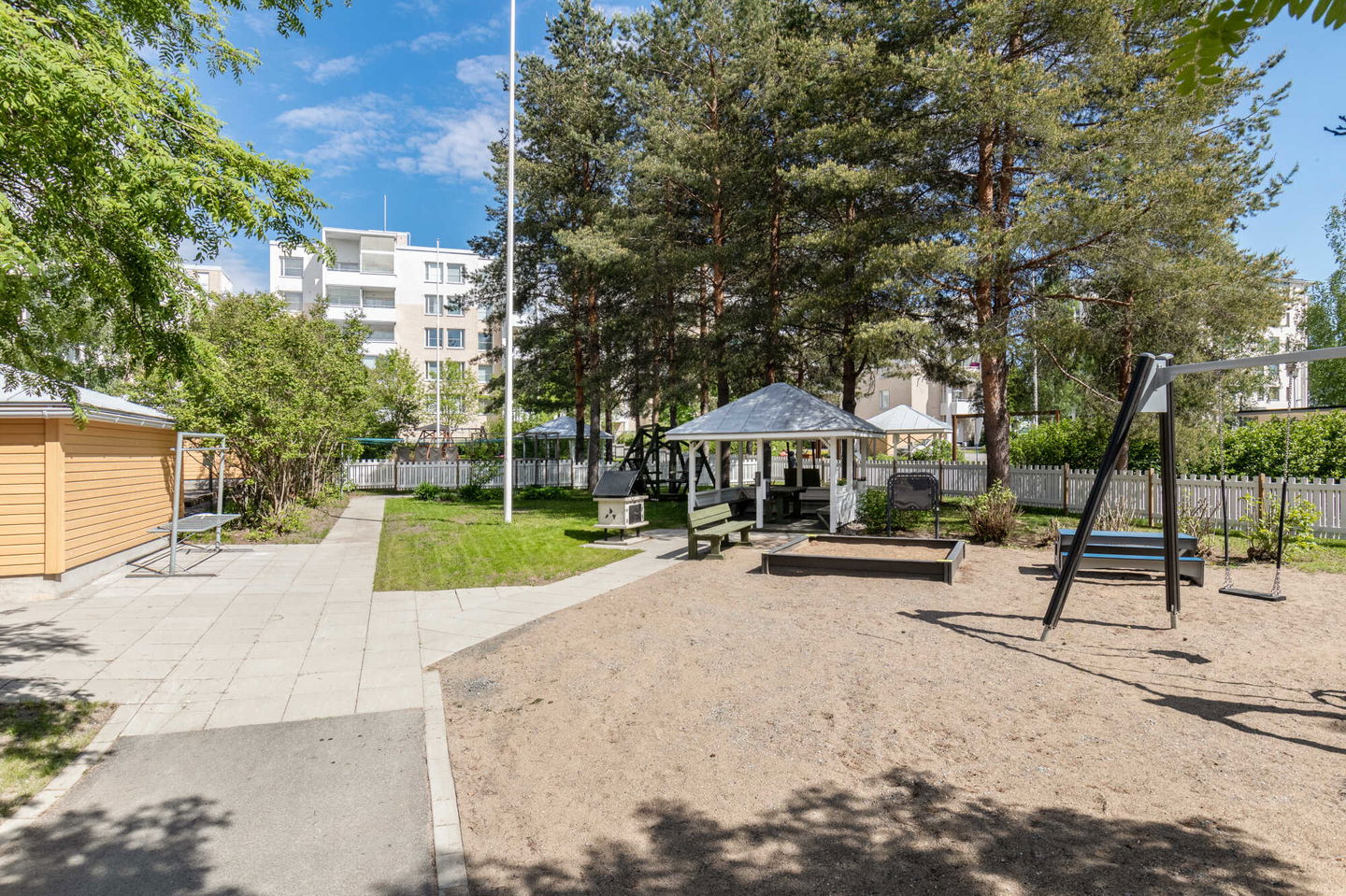 Koulut ja päiväkoti vieressä. Lähellä on myös ruokakauppa, uimahalli, koirapuisto ja Litmasen tekonurmikenttä. Rannalle pääsee helposti joko Litmasessa, Kirveslahden uimarannalla tai Petosenlammella.