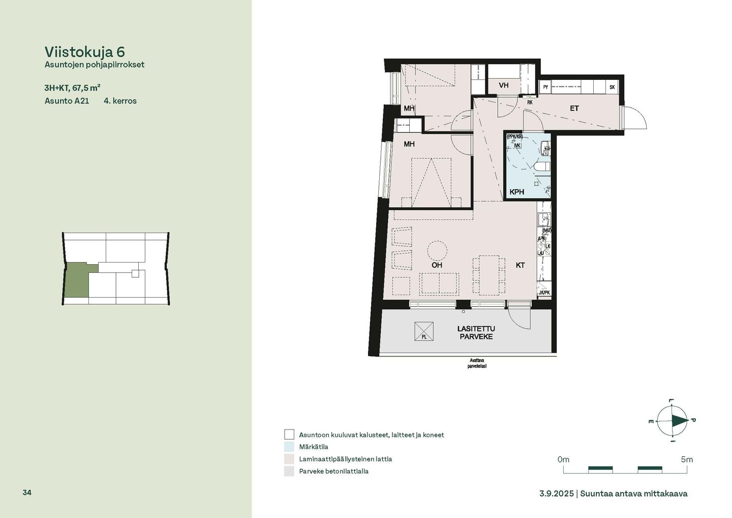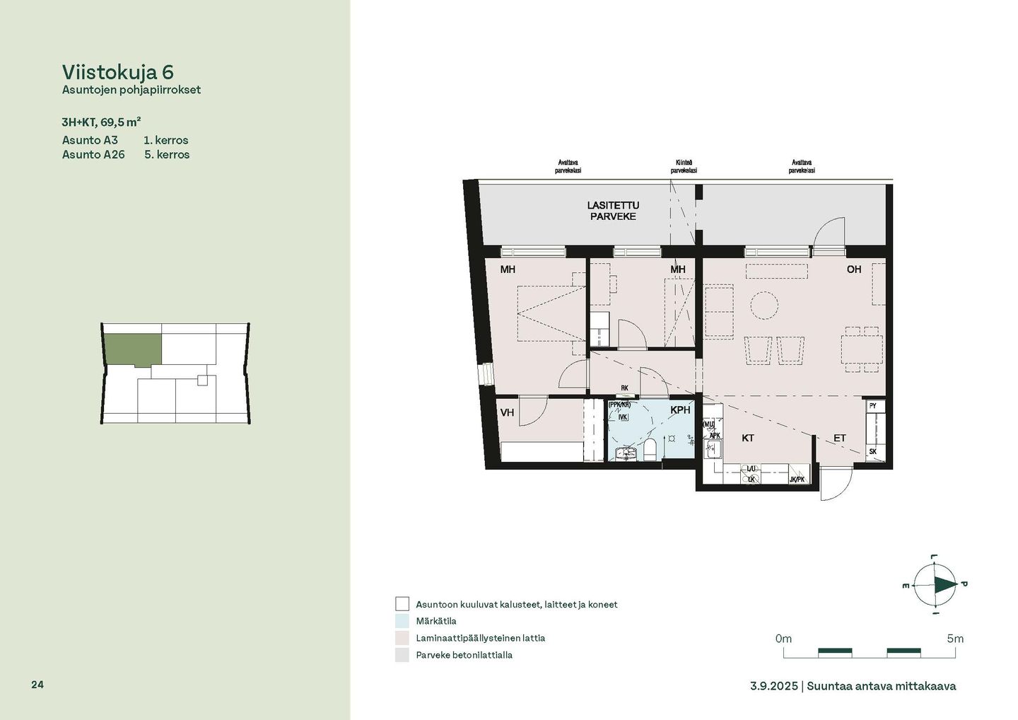 Upea ja väljä ylimmän (6.) kerroksen kulmahuoneisto kahdella valtavalla parvekkeella!