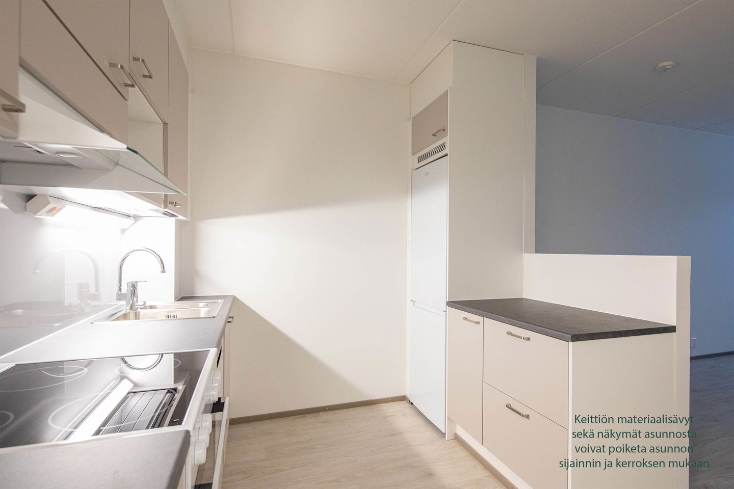 Kohteen monipuolisesta asuntovalikoimasta löytyy vaihtoehtoja reilun kokoisista kaksioista jopa viiden huoneen perheasuntoihin. Kaikissa kodeissa keittiön varustelu on suunniteltu arjen sujuvuutta varten: astianpesukone ja keraaminen liesi kuuluvat vakiovarustukseen. Isoimmissa kodeissa erillinen, reilun kokoinen jääkaappi sekä kaappipakastin helpottavat perhearkea ja ruoanlaittoa.