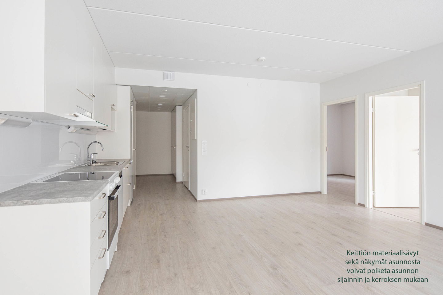 Kohteen monipuolisesta asuntovalikoimasta löytyy vaihtoehtoja reilun kokoisista kaksioista jopa viiden huoneen perheasuntoihin. Kaikissa kodeissa keittiön varustelu on suunniteltu arjen sujuvuutta varten: astianpesukone ja keraaminen liesi kuuluvat vakiovarustukseen. Isoimmissa kodeissa erillinen, reilun kokoinen jääkaappi sekä kaappipakastin helpottavat perhearkea ja ruoanlaittoa.