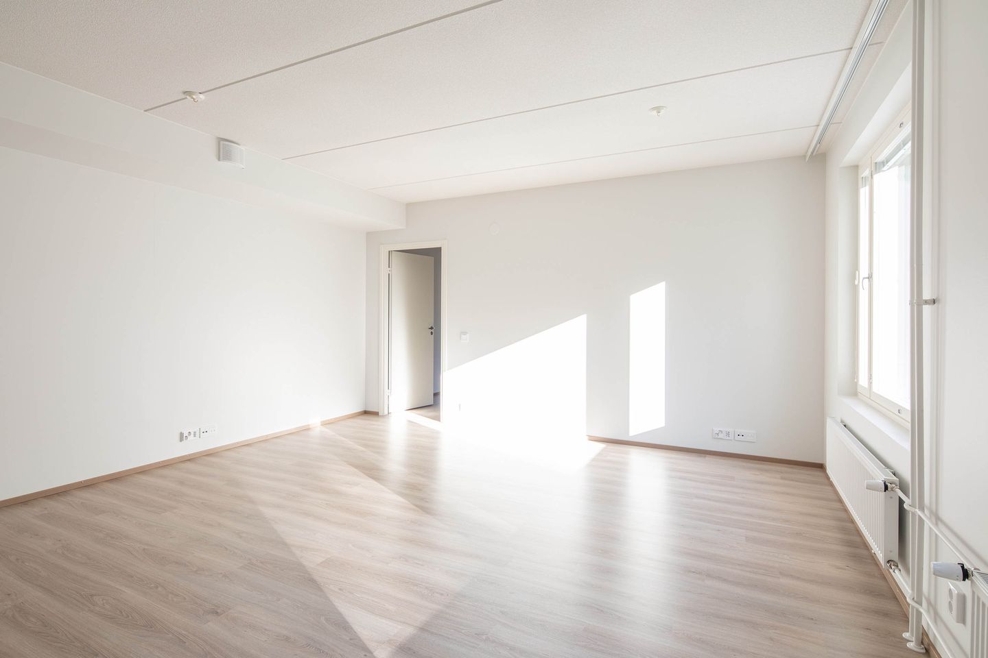 Tähän avaraan, vaaleasävyiseen ja toimivapohjaiseen kotiin tulvii valoa kahdesta ilmansuunnasta: idästä ja pohjoisesta.