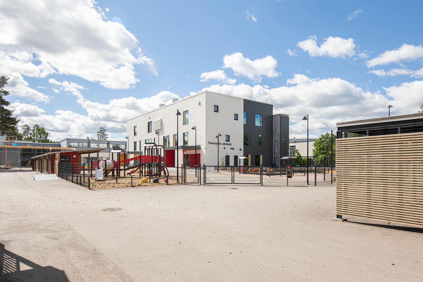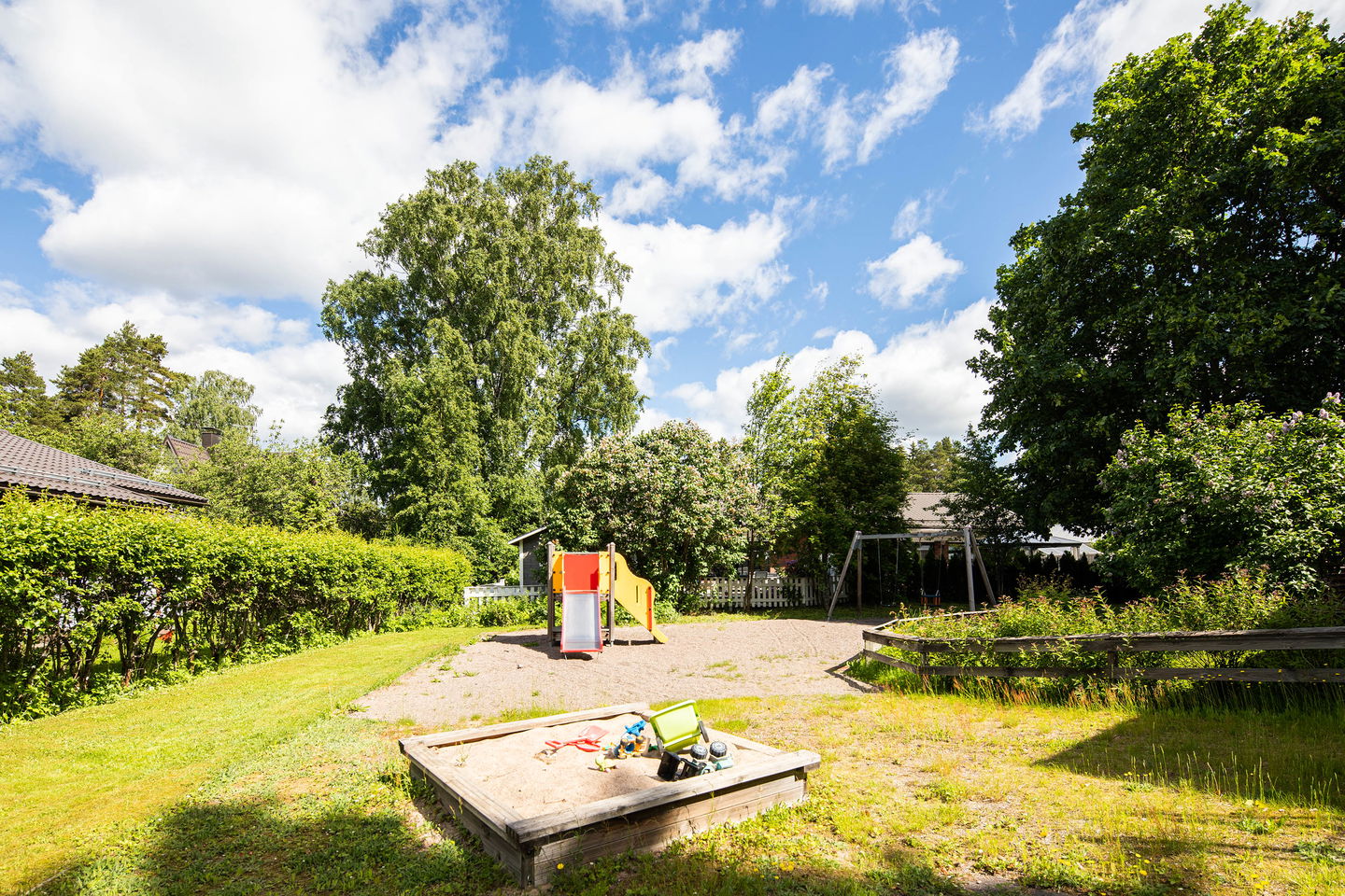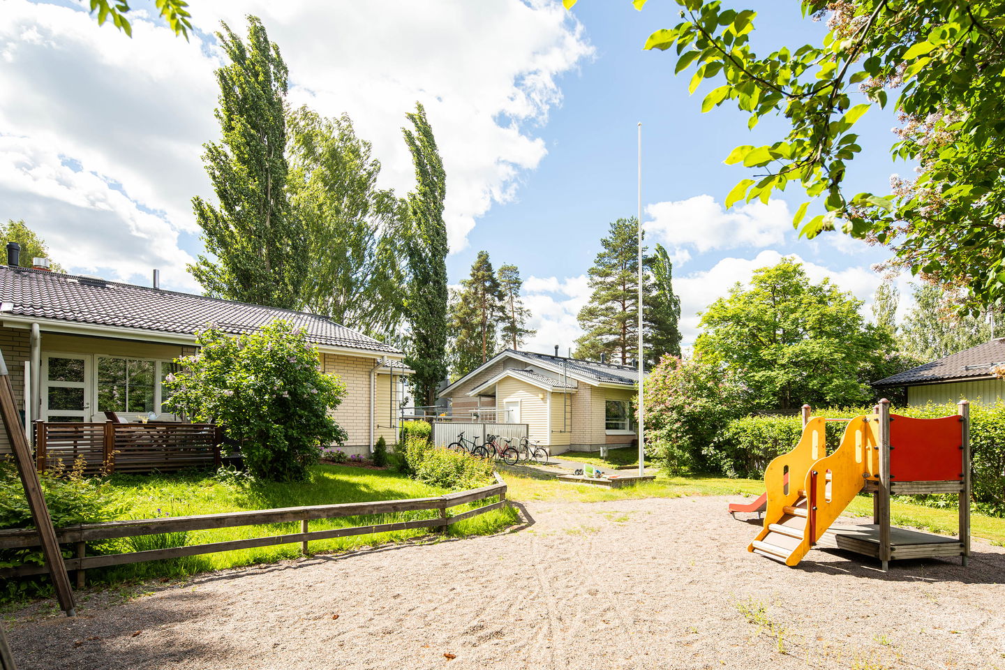 Koulut ja urheilupuisto aivan vieressä. Alueella on myös päiväkoti ja golf-kenttä. Juna-asemalle muutaman sadan metrin matka.