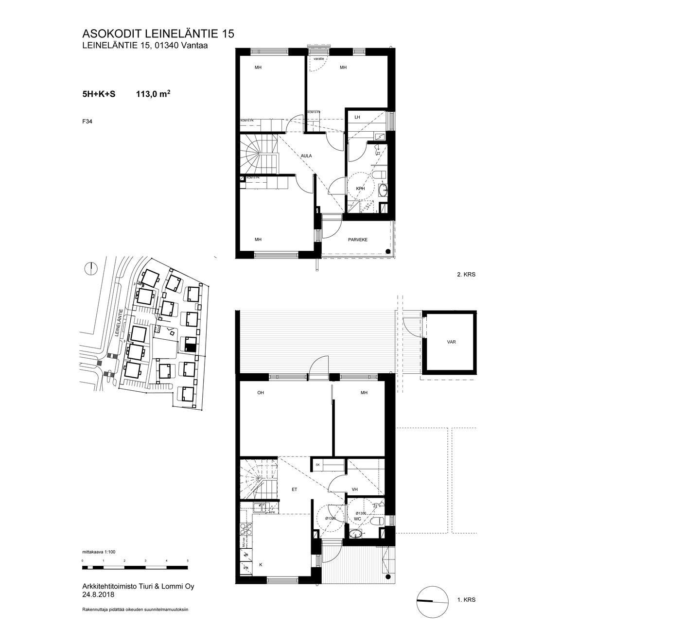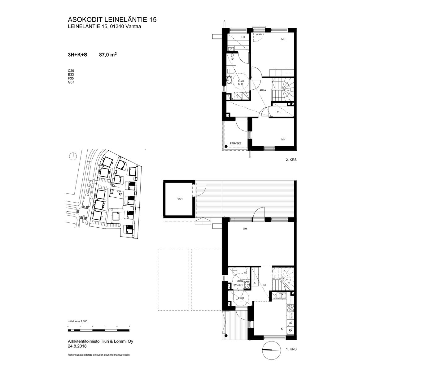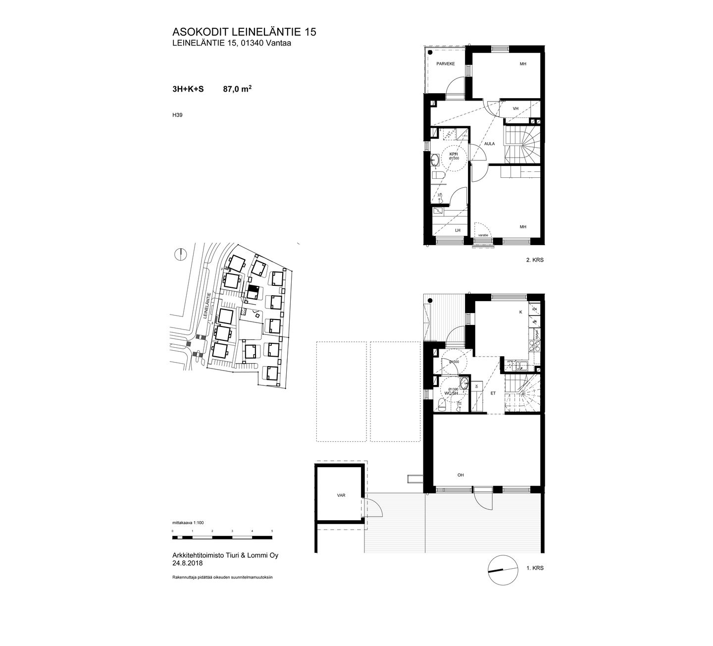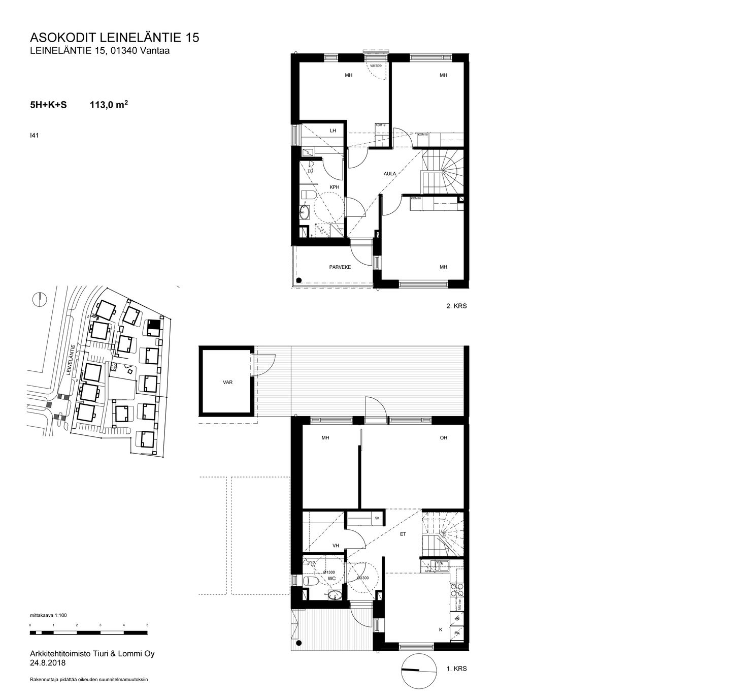 Huoneistot ja pohjakuvat: Leineläntie 15, Paritalo, Kerrostalo
