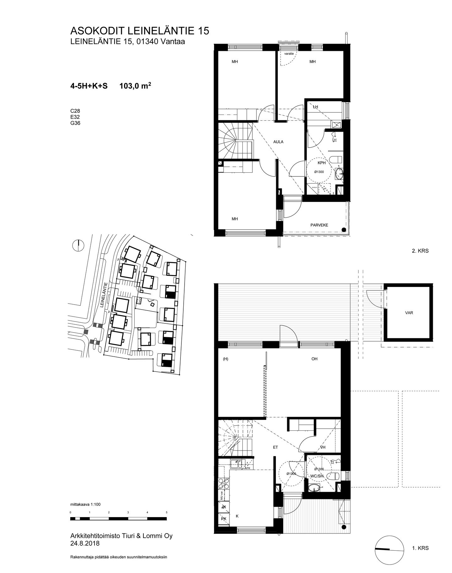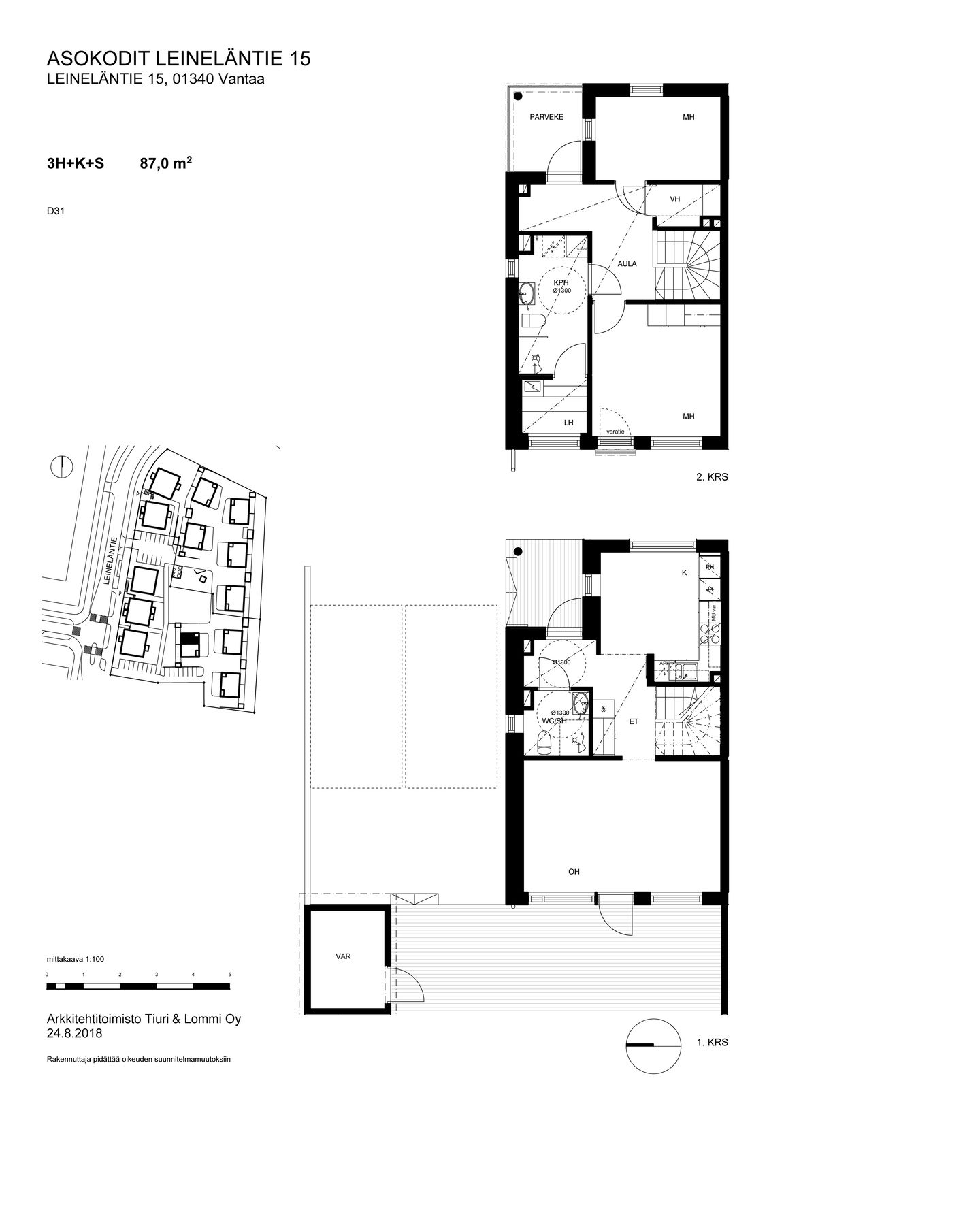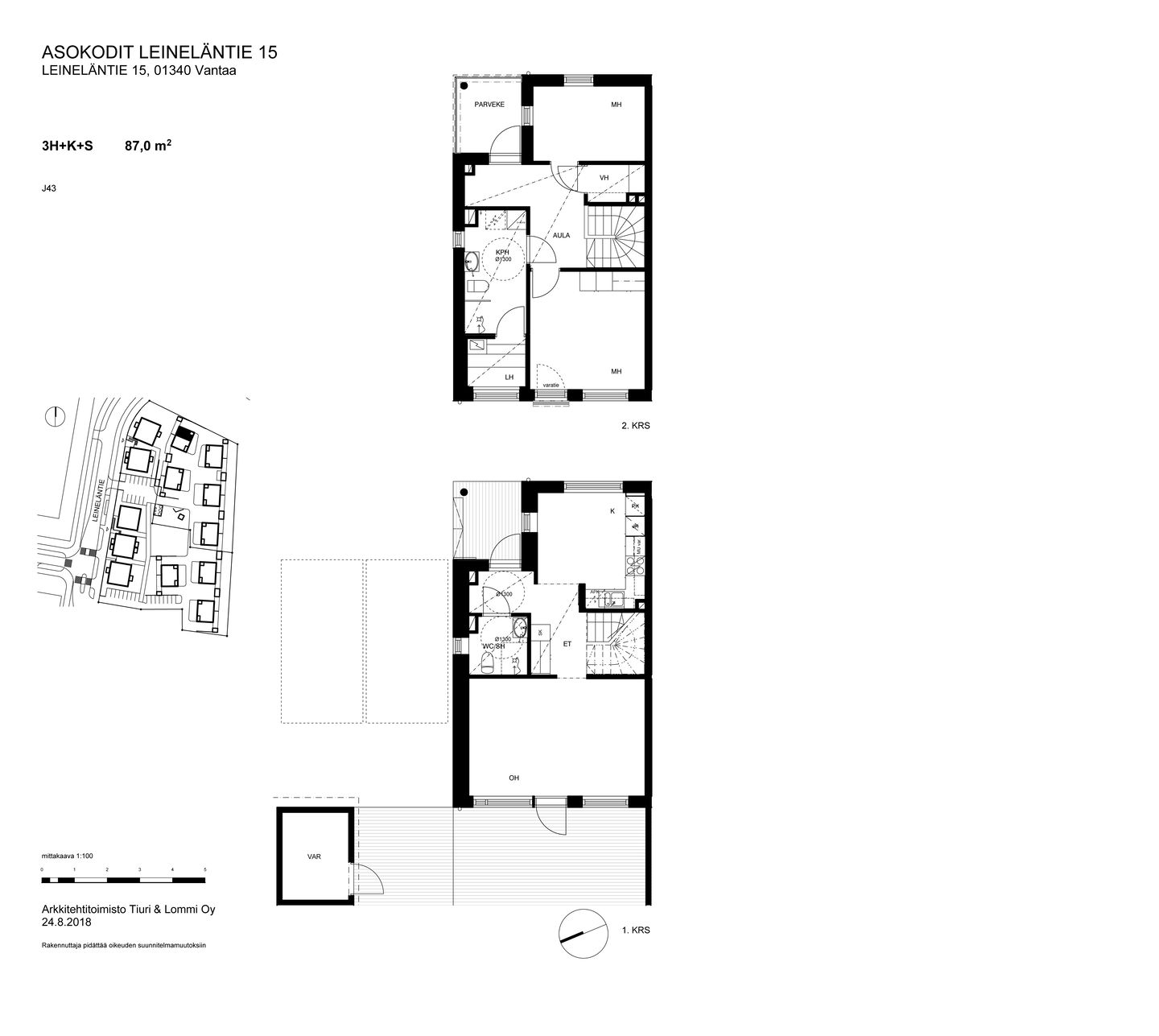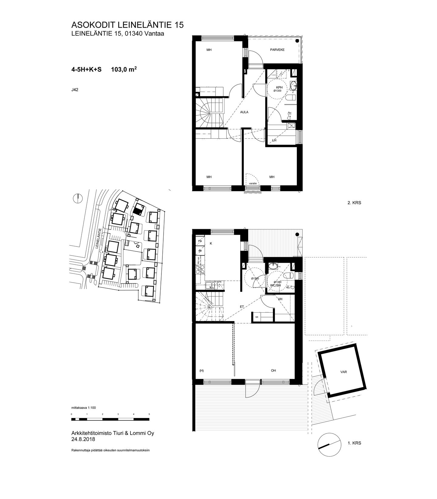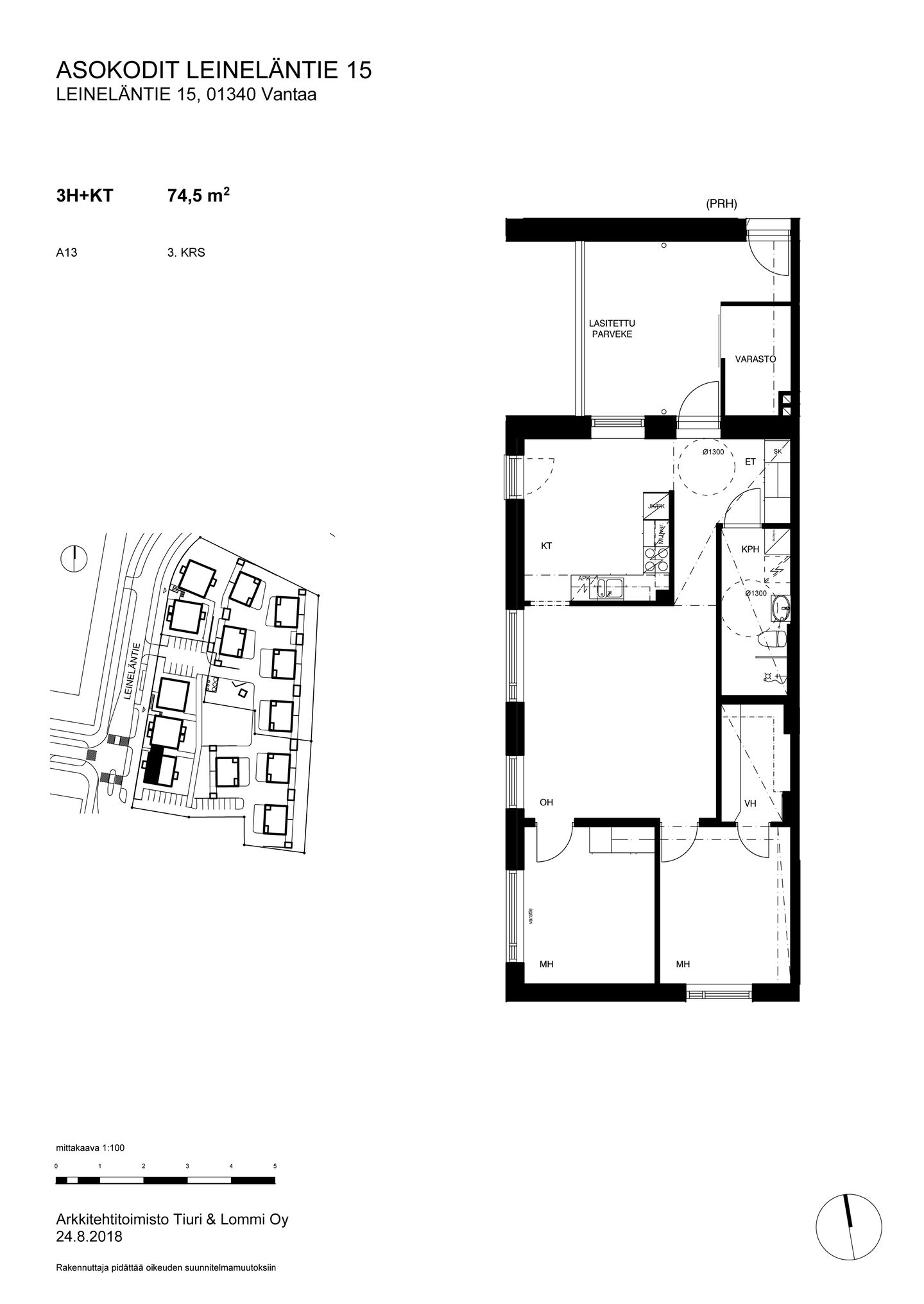 Huoneistot ja pohjakuvat: Leineläntie 15, Paritalo, Kerrostalo