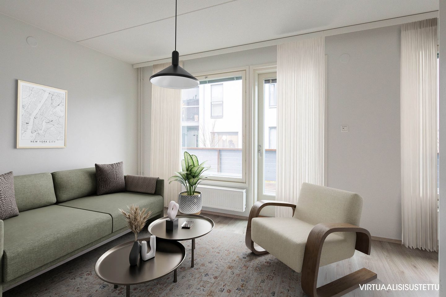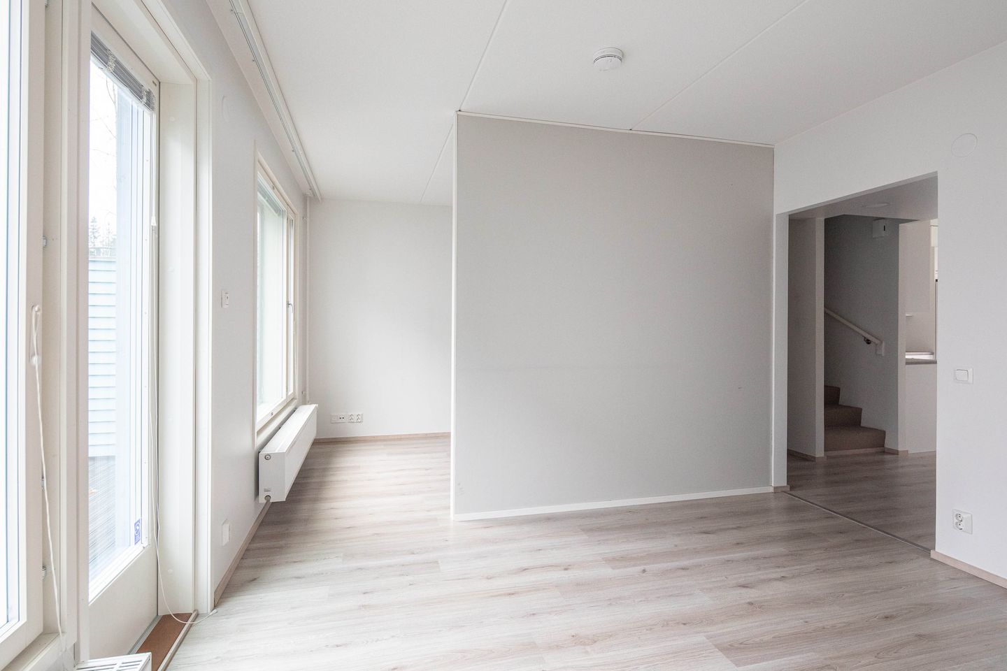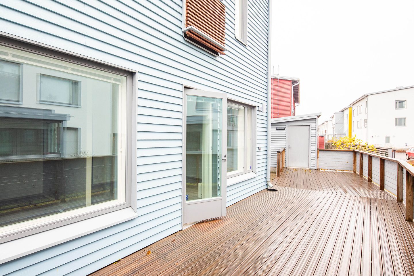 Asunnossa on tehty muutostyönä pohjapiirroksen mukainen väliseinäratkaisu olohuoneeseen (pohjapiirroksen mukaan asunto on 4-5h+k+s) sekä ulkoterassille turvallisuutta lisäävä kaide.