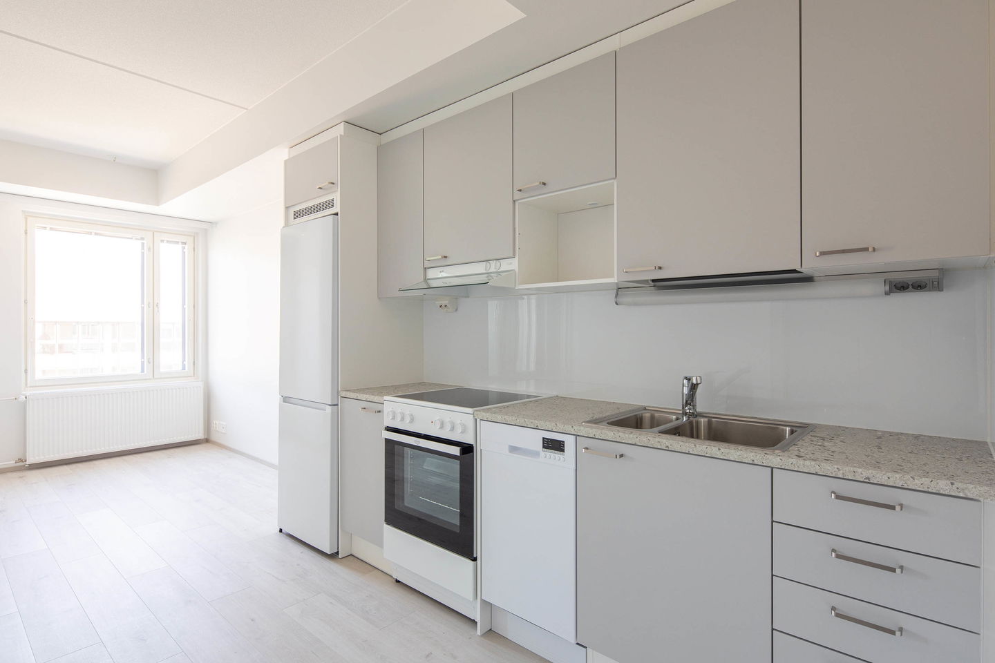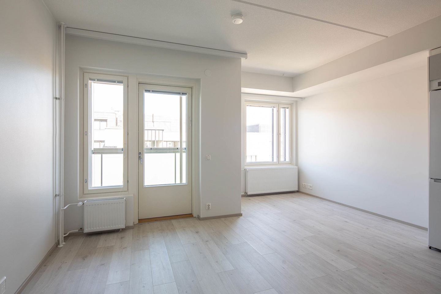 Tornitalon kuudennen kerroksen kompakti yksiö! Keittiö on yhtenäistä tilaa olohuoneen kanssa ja ruokapöydälle / työpöydälle löytyy oma paikka olohuoneen yhteydessä esimerkiksi ikkunan alta. Eteisessä on hyvin kaapistoja tavaroiden säilytykseen, jotka rajaavat myös hieman alkovin paikkaa. Lasitettu parveke pohjoiseen. Jätäthän asuntohakemuksen tähän näppärään kotiin ja sovitaan esittelyä!
