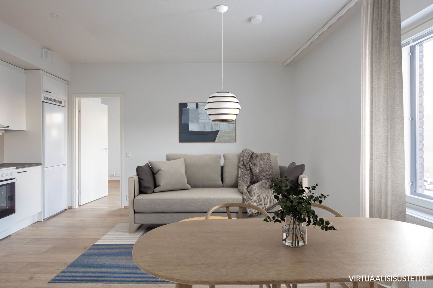 Tähän näppärään kotiin tulvii luonnonvaloa kahdesta ilmansuunnasta: pohjoisesta ja idästä.