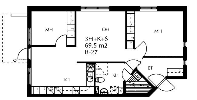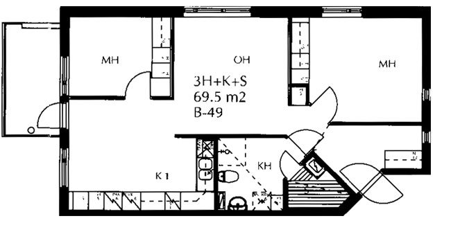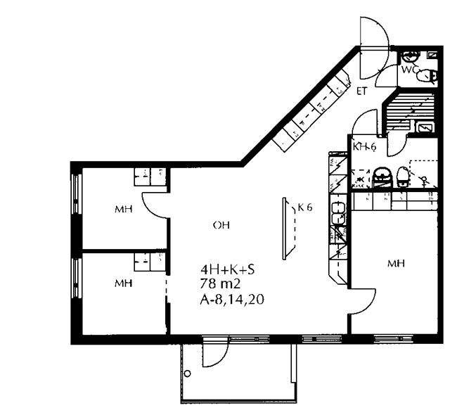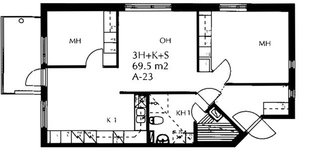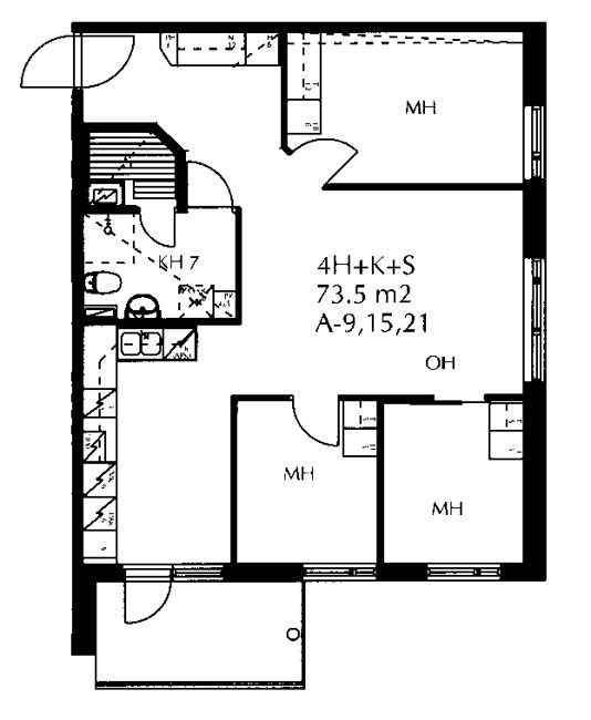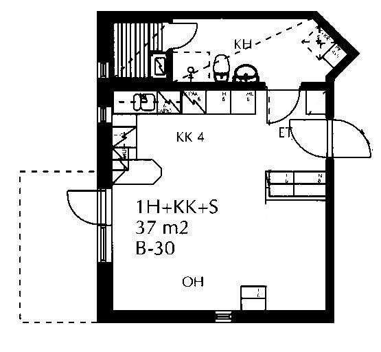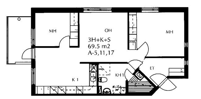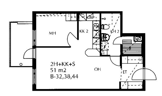 Huoneistot ja pohjakuvat: Krakantie 2 B, Kerrostalo, Piharakennus