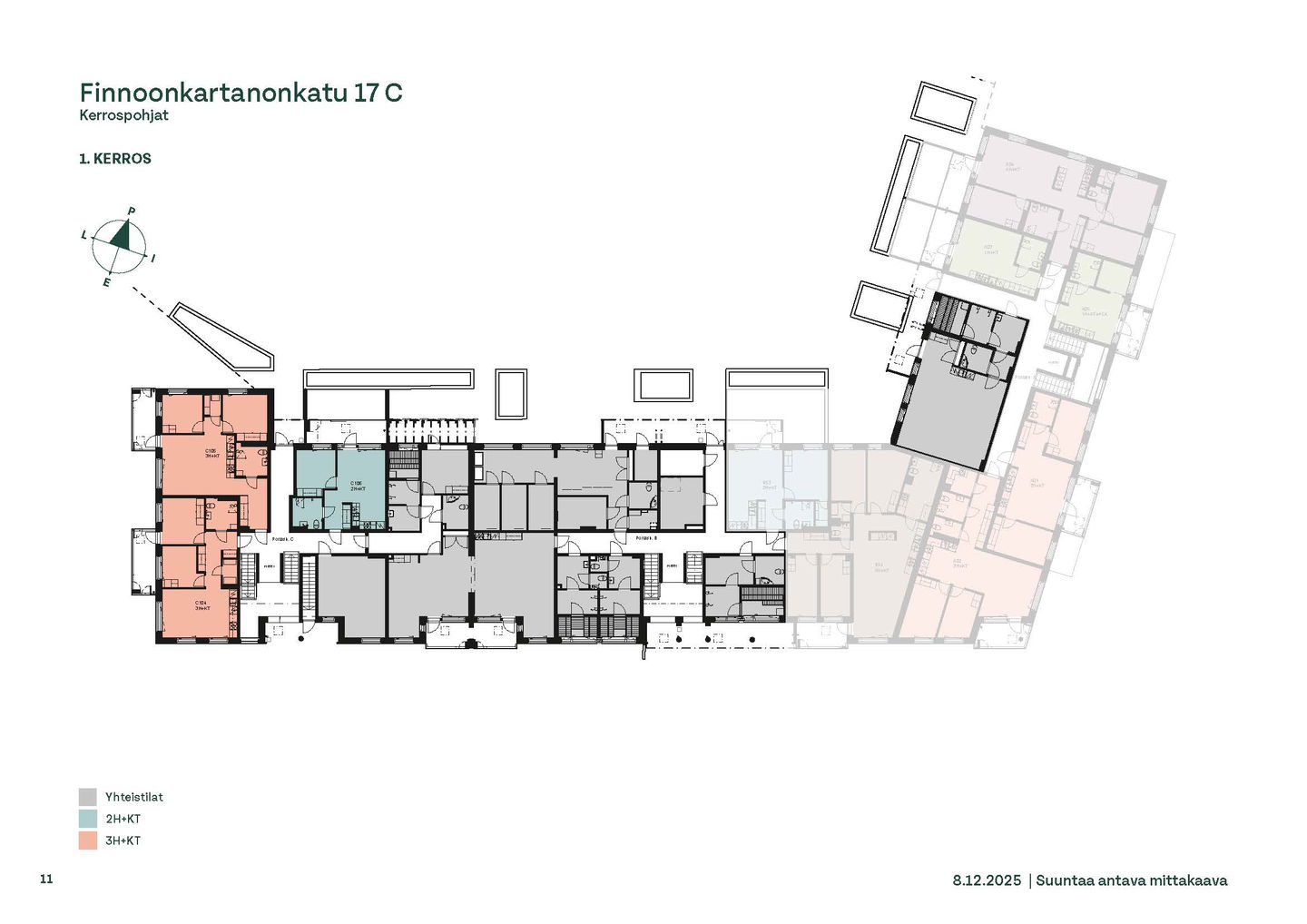 HYÖDYNNNÄ ETU: ILMAINEN MUUTTO! Kun muutat uuteen kotiin, haluamme tehdä siitä mahdollisimman helppoa. Siksi tarjoamme tähän asuntoon 16.3.2026 alkaen vuokrasopimuksen tehneille ilmaisen muuton. Etuun sisältyy kanto- ja kuljetustyö yhdestä osoitteesta Uudenmaan sisällä (muutettavat tavarat enintään 150 kg/kpl). Etu ei sisällä muuttolaatikoita. Saat tarkemmat pakkaus- ja toimintaohjeet sopimuksen yhteydessä. Etu on voimassa toistaiseksi. Tämän talon asukasvalinnat perustuvat hakijaruokakunnan asunnontarpeeseen, varallisuuteen sekä tuloihin. Vaaleaan, kahdeksankerroksiseen talon C-rappuun valmistuu 38 hyväpohjaista vuokrakotia huhtikuussa. Hyvin suunnitelluista asunnoista löytyy toimiva koti kaikenlaisiin elämänvaiheisiin, niin sinkkuasukkaalle kuin isommallekin perheelle. Sälekaihtimet ja astianpesukone on kaikissa huoneistoissa valmiiksi asennettuna. Tilavat kylpyhuoneet sekä useimpien huoneistojen vaatehuoneet lisäävät asumisen mukavuutta ja kaikkiin asuntoihin kuuluu 50 Mbit/s laajakaistayhteys. Lisää oleskelutilaa antavat lasitetut parvekkeet. Viuhkamaisen rakennuksen laaja, aurinkoinen piha-alue avautuu lännen suuntaan ja osasta ylimpien kerroksien asunnoista avautuu näkymät merelle asti yli Finnoon lintualtaiden. Ulkoiluväline- ja lastenvaunuvarastot löytyvät talon kellarikerroksesta. Ensimmäisessä kerroksessa on kerhotilat, talopesula kuivaushuoneineen sekä talosaunat, joista yhden yhteydessä on myös vilvoitteluterassi. Talon pysäköintipaikat ovat pysäköintihallissa talon alla. Kulkemista helpottaa talon moderni, sähköinen lukitusjärjestelmä. Talon kahdessa muussa rappukäytävässä on asumisoikeuskoteja. Rauhallisen kulmakorttelin viereen on suunnitteilla päiväkoti ja koulu ja läheltä löytyy myös Kiikaripuisto. Metro- ja bussiyhteys sekä arjen lähipalvelut ovat mukavan kävelymatkan päässä. Finnoonkartanonkadulla viihtyy koko perhe!