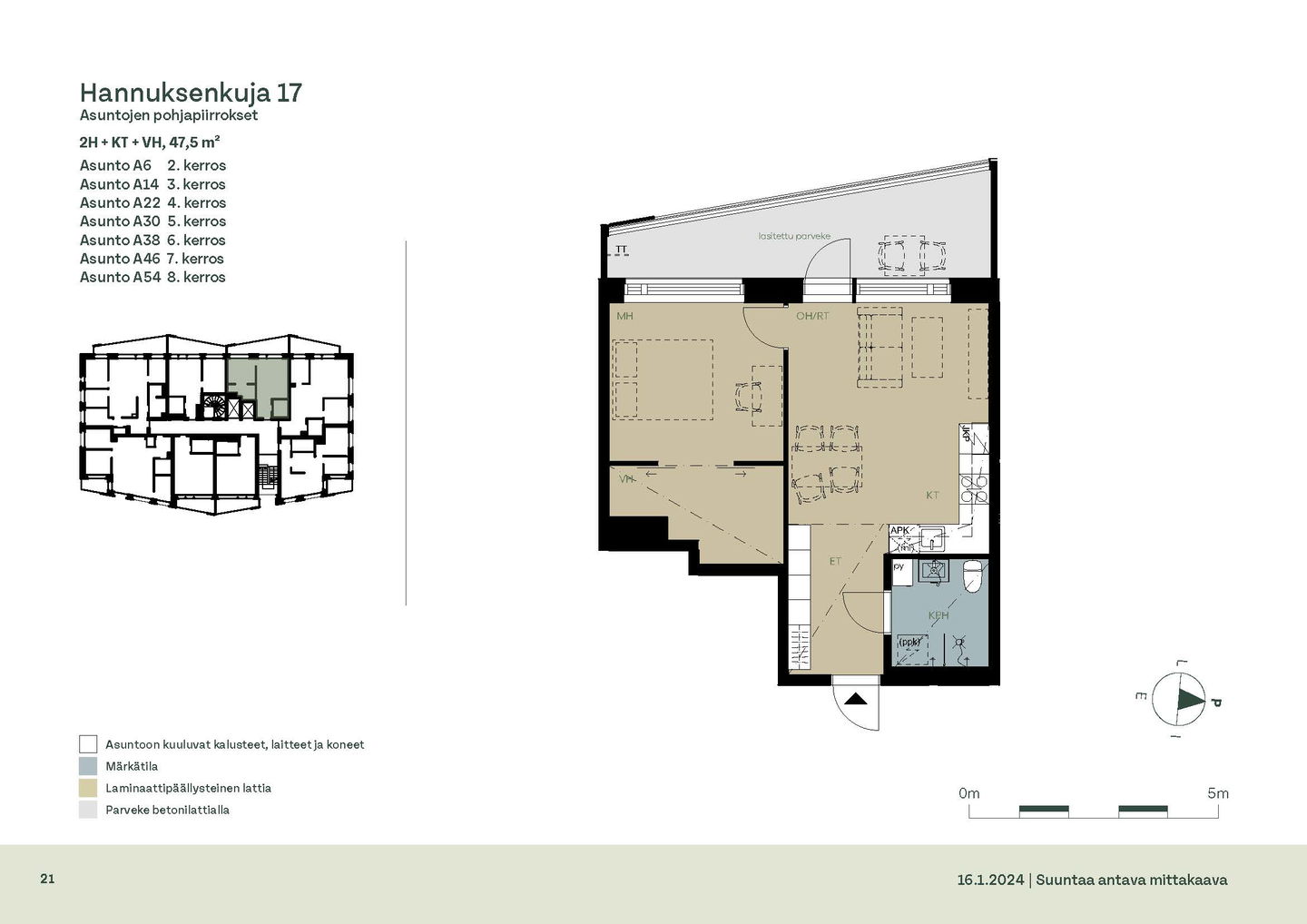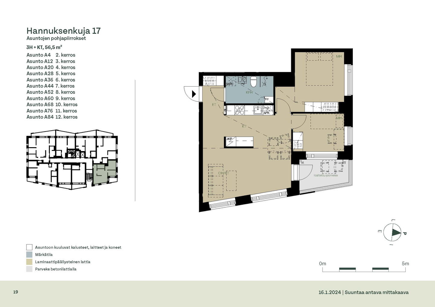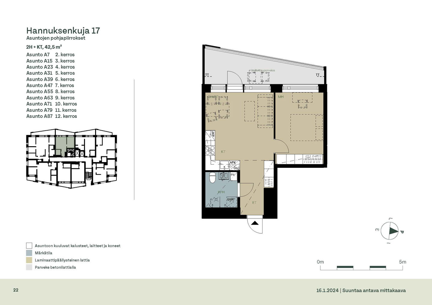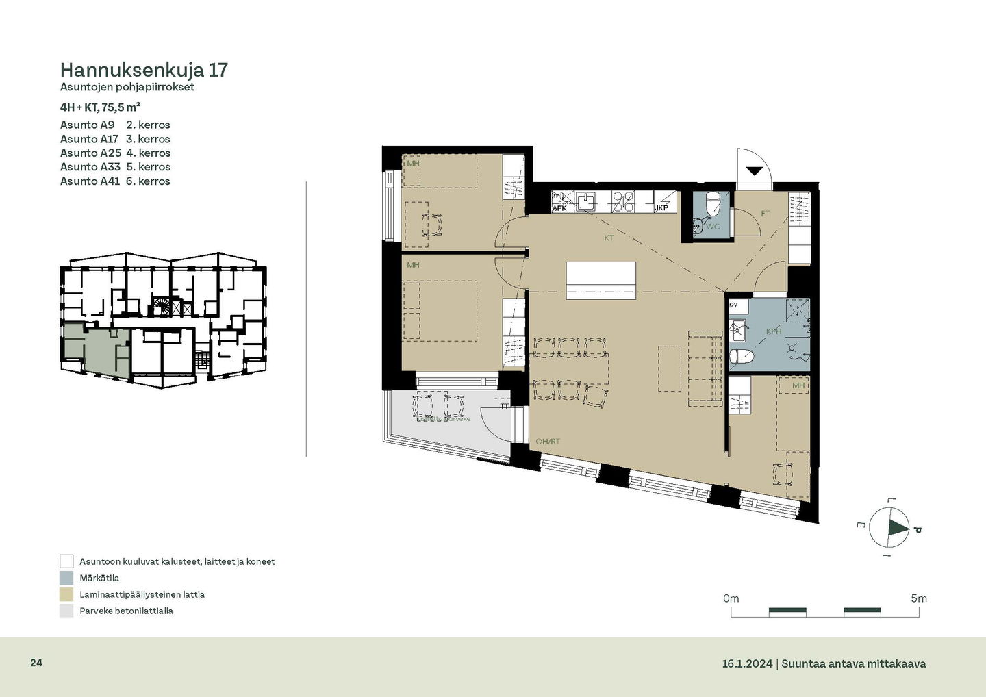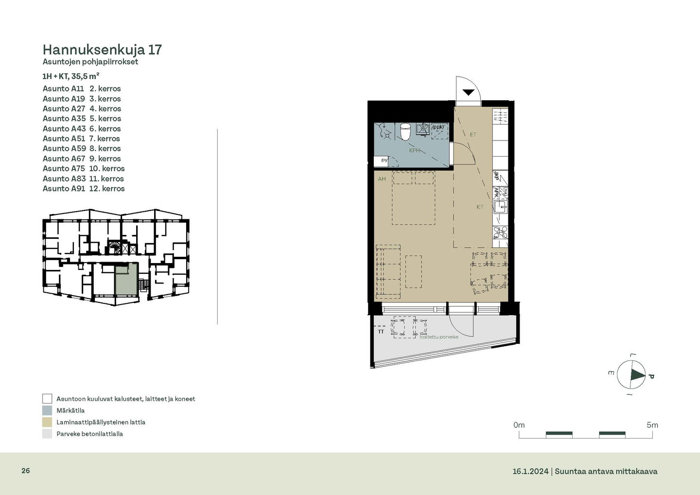 Apartments and floor plans: Finnoonsilta 17, Kerrostalo