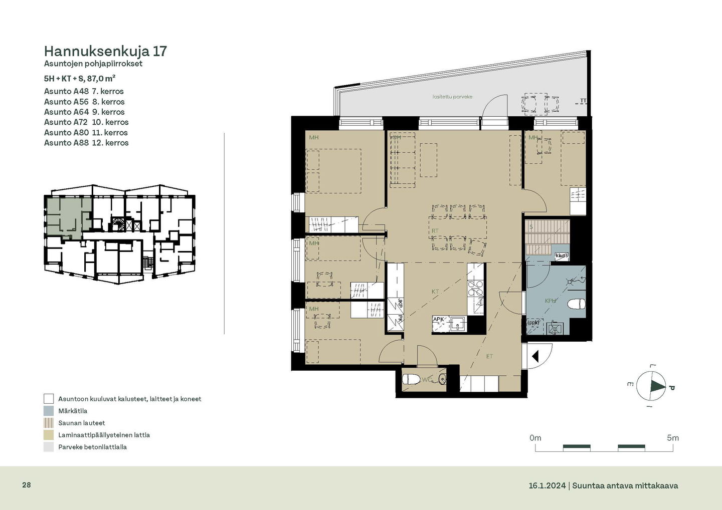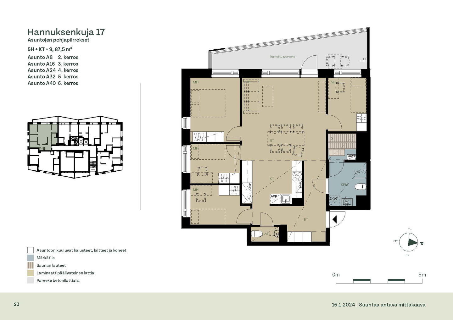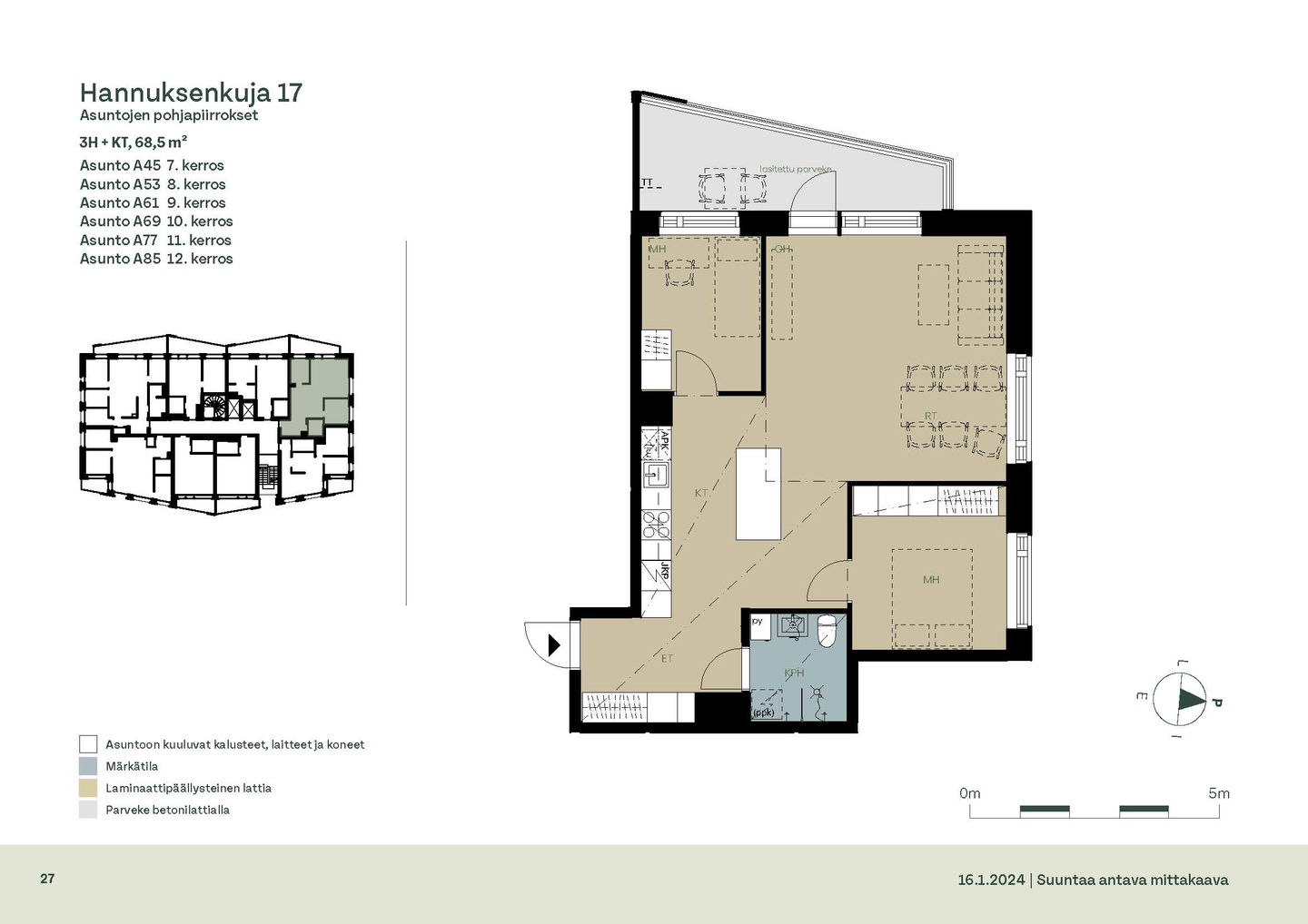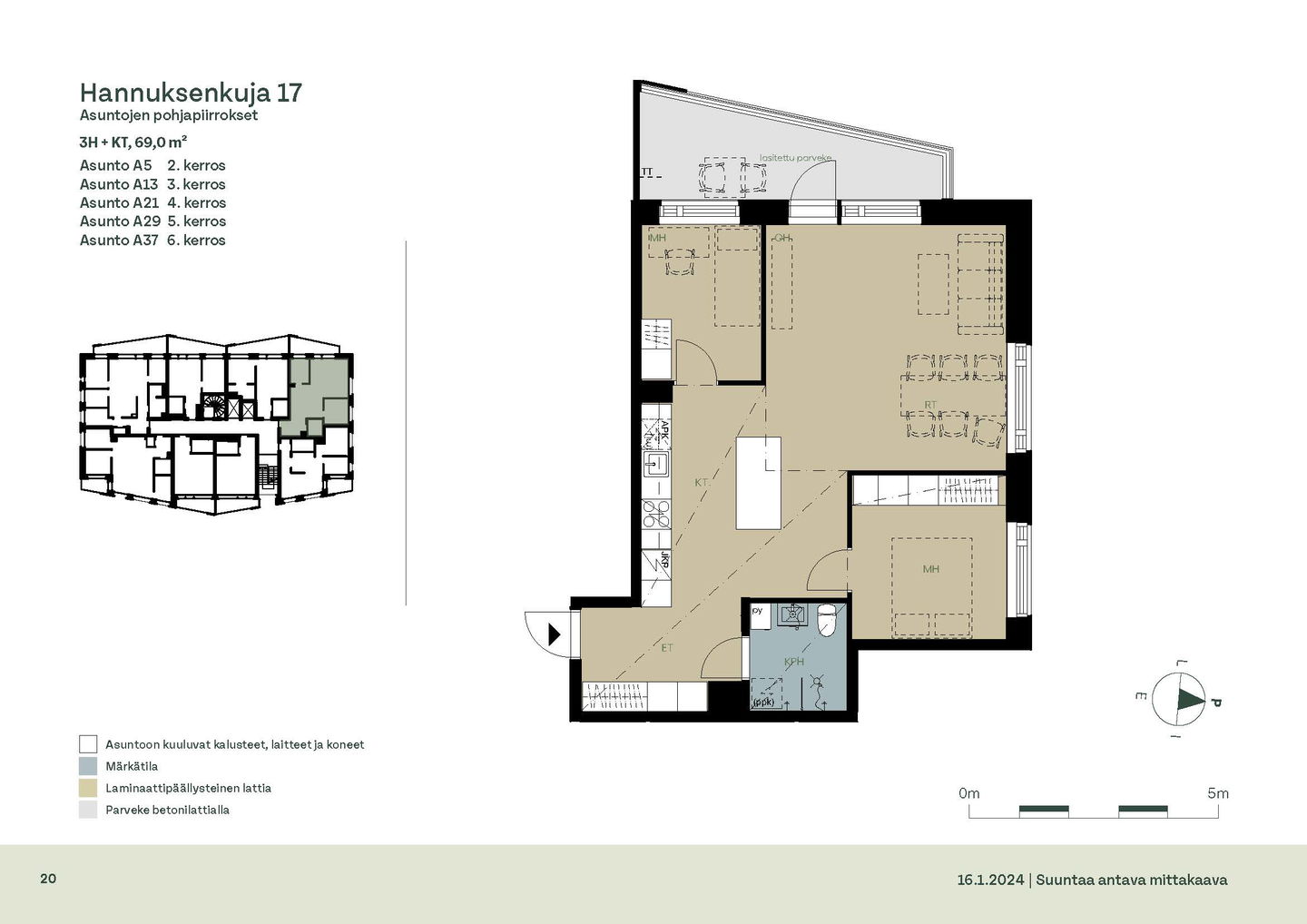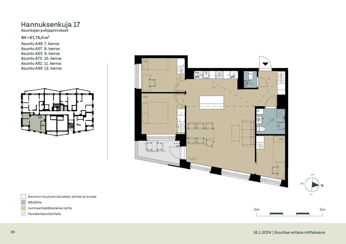 Apartments and floor plans: Finnoonsilta 17, Kerrostalo