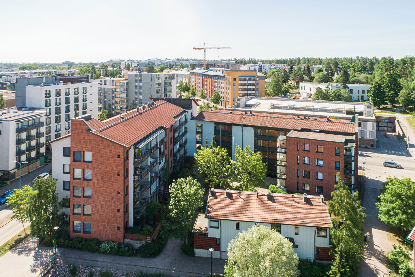 Puiston vieressä sijaitseva, kodikas kerrostalokohde Leppävaarassa. Osassa asuntoja on parveke, yksiöitä isommissa myös sauna.
