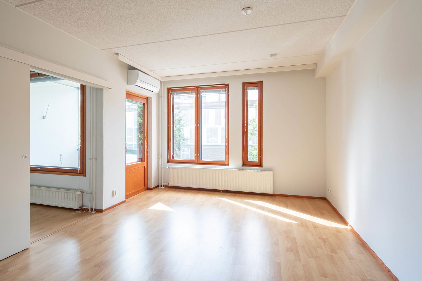 Valoisa ja tilava kaksio aivan Leppävaaran palveluiden vieressä. Asuntoon tuovat lämpöä luonnollisen puun sävyinen lattia sekä ruskeat lattia- ja ikkunalistat. Helposti kalustettavat neliöt ja liukuovi makuuhuoneeseen tekevät sisustamisesta vaivatonta. Päivitetyssä, avoimessa keittiössä on reilusti säilytys- ja laskutilaa sekä paikka astianpesukoneelle. Myös kylpyhuone on remontoitu modernin asumisen vaatimustason mukaiseksi. Iso vaatehuone, oma sauna ja ilmalämpöpumppu tuovat helpotusta ja nautintoa asumiseen. Etelänsuuntaisella, lasitetulla parvekkeella nautit auringon lämmöstä aina keväästä pitkälle syksyyn.