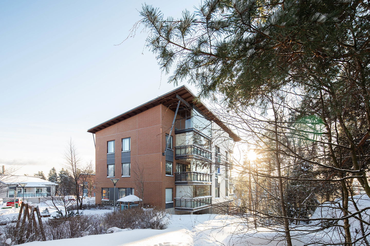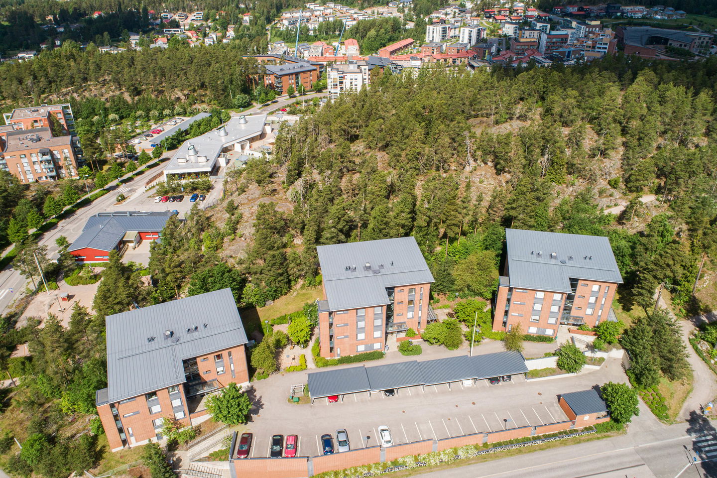 Valoisa kerrostalokohde rinnetontilla metsän vieressä. Kaikissa asunnoissa on oma sauna ja osassa myös parveke. Kaukolämmitys.