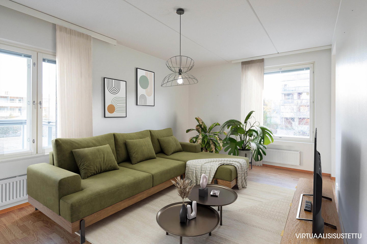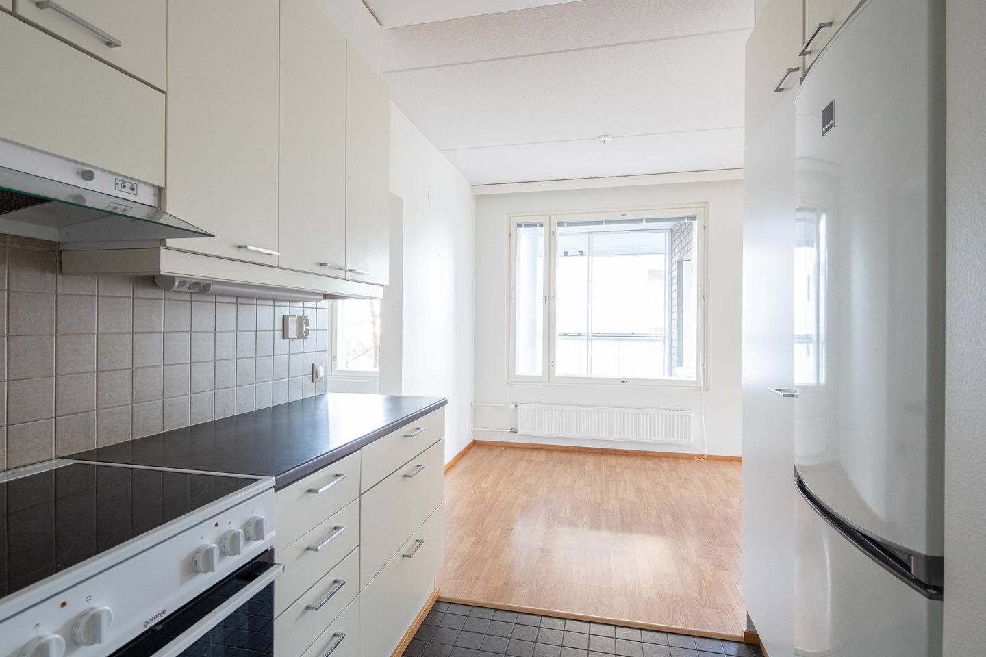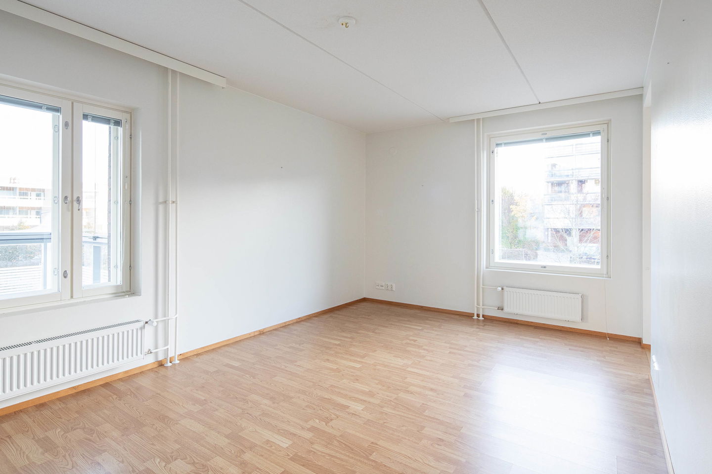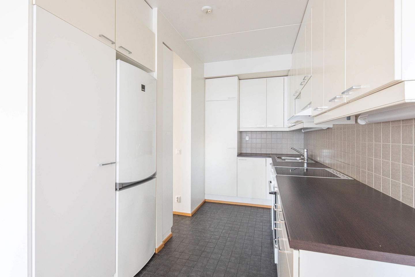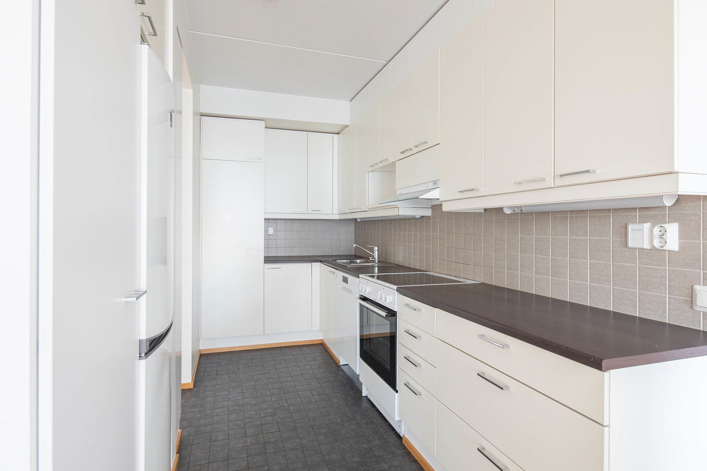 Tämä kahden makuuhuoneen valoisa koti Espoon Suurpellossa tarjoaa toimivan pohjaratkaisun ja viihtyisän asuinympäristön. Asunnossa on kaksi tilavaa makuuhuonetta, jossa toisessa runsaasti kaappitilaa ja toisessa oma vaatehuone. Keittiö on käytännöllinen ja avara, runsaalla kaappitilalla ja työskentelytasoilla varusteltu keittiö tarjoaa arjen kokkailuihin loistavat puitteet.