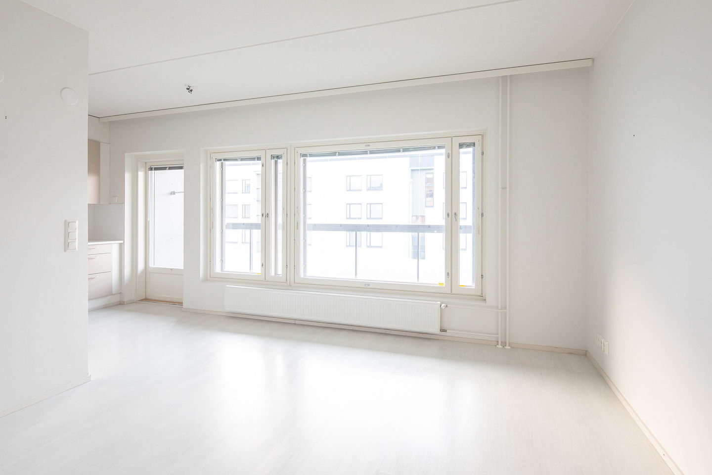 Olohuone ja keittiö muodostavat yhtenäisen ja helposti sisustettavan kokonaisuuden, jossa on selkeä tila niin oleskeluun kuin ruokailuun. Alkovi tuo mukavasti erillisen nukkumatilan. Lasitettu parveke lisää asumisviihtyisyyttä ja tarjoaa mukavan paikan nauttia ulkoilmasta säällä kuin säällä.