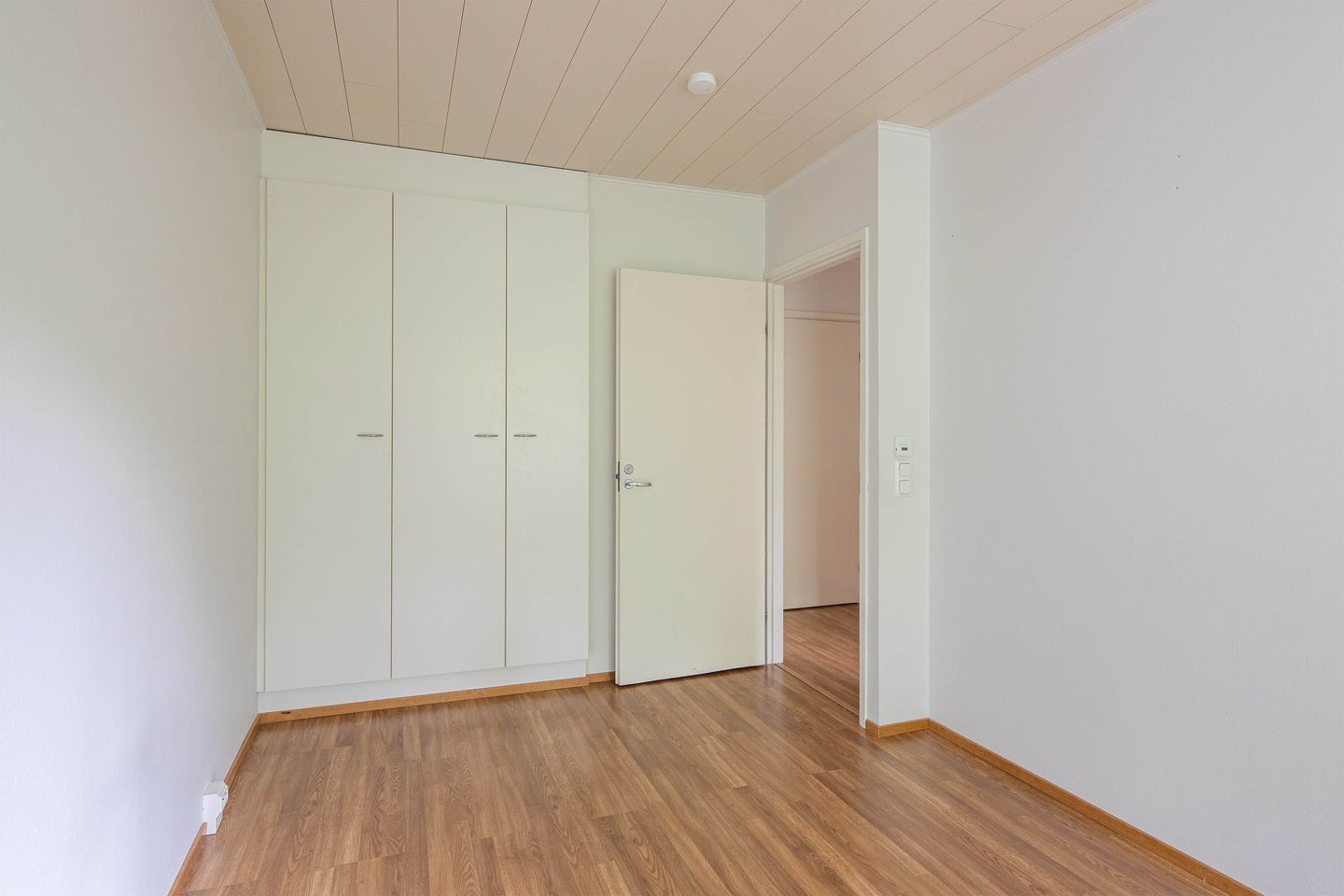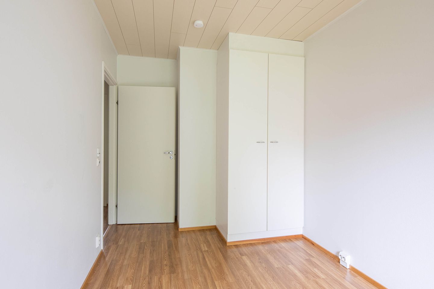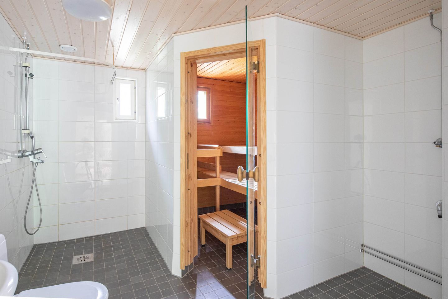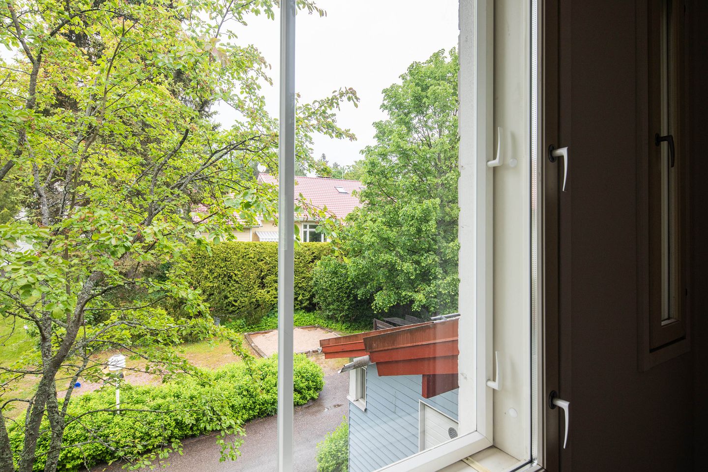 Yläkerrasta löytyvät makuuhuoneet, joissa on runsaasti säilytystilaa. Oma sauna ja kylpyhuone tuovat arkeen mukavuutta. Asunto sopii hyvin perheelle, joka arvostaa käytännöllisiä tiloja ja rivitaloasumisen rauhaa.