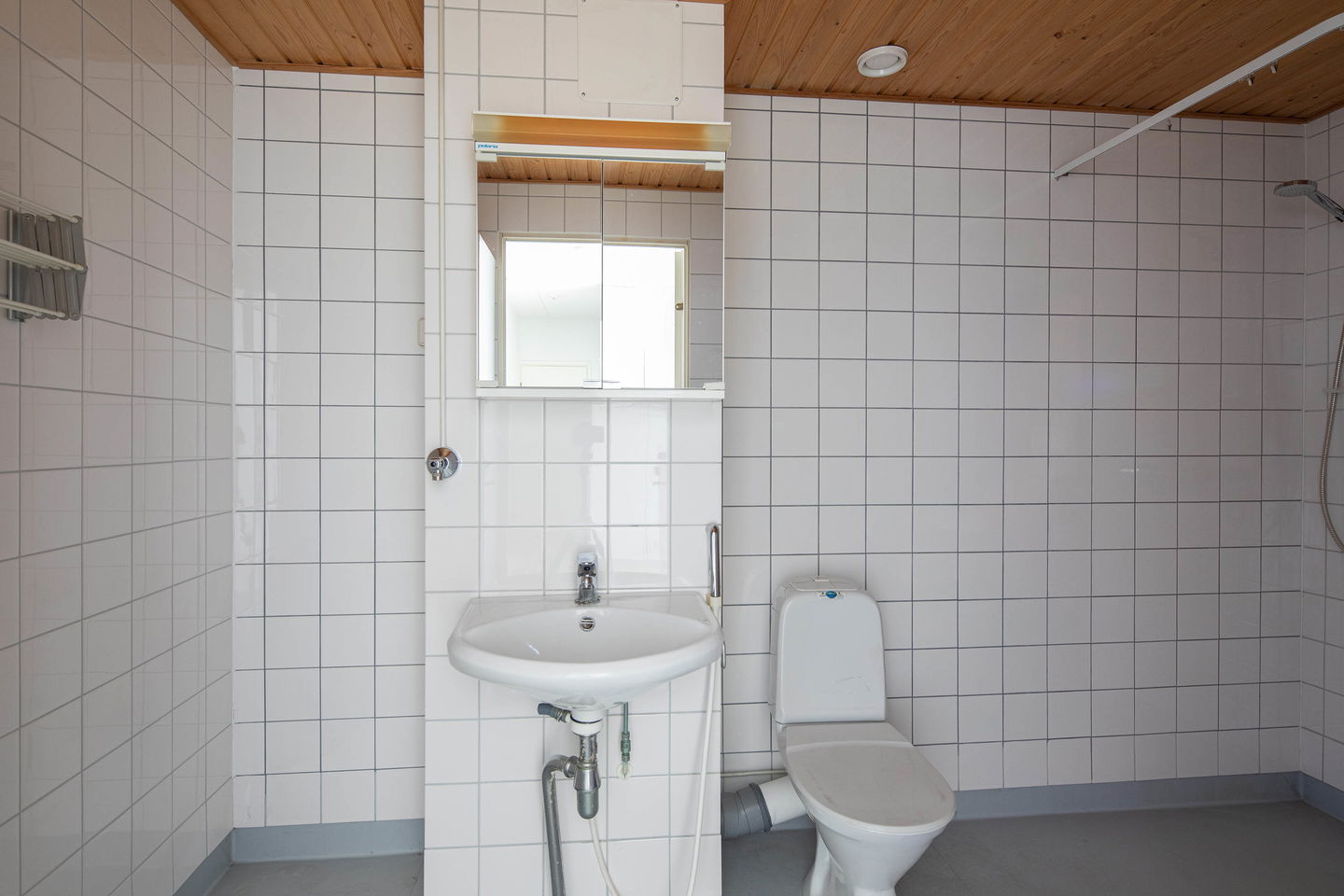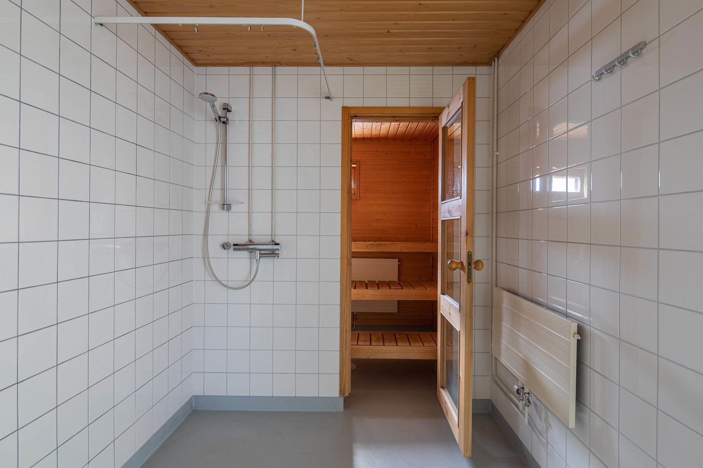 Makuuhuone on rauhallisella paikalla ja varustettu runsailla säilytysratkaisuilla. Kylpyhuoneessa on tilaa pesukoneelle, ja oma sauna tuo arkeen ripauksen luksusta. Eteinen on avara ja tarjoaa hyvät säilytysmahdollisuudet.
