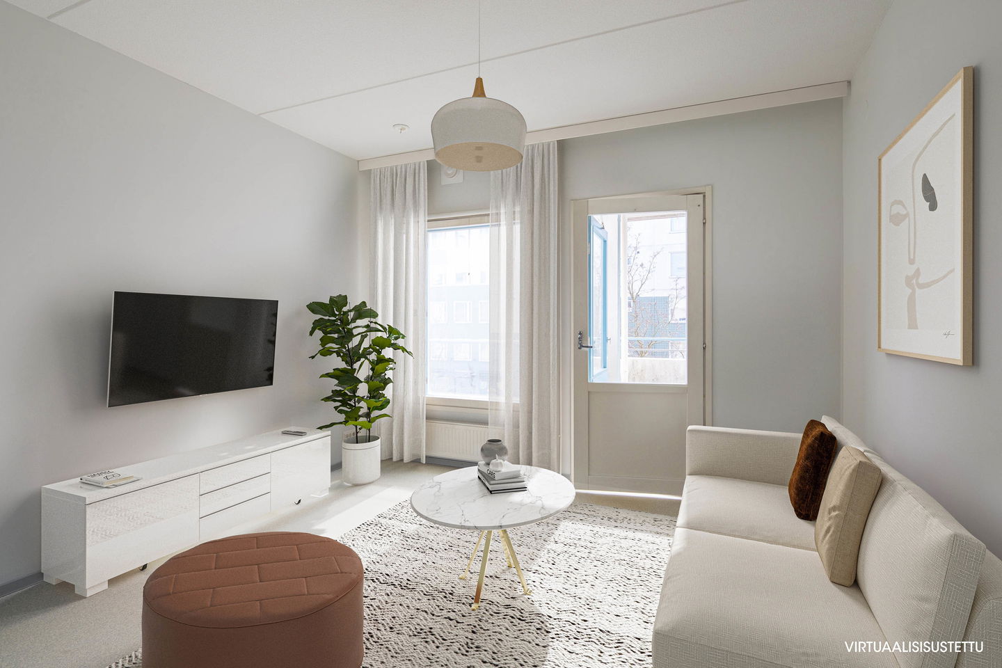 Tämä 59 m²:n koti tarjoaa erinomaisen pohjaratkaisun ja viihtyisän asumisen. Asunnossa on tilava olohuone , josta on käynti omalle parvekkeelle. Keittiö on käytännöllisesti sijoitettu ja tarjoaa hyvin kaappitilaa sekä tilaa ruokailulle.